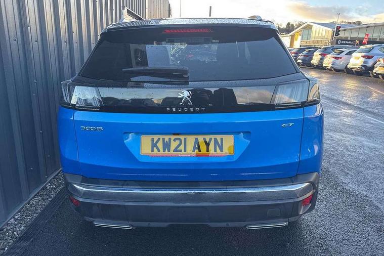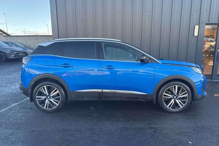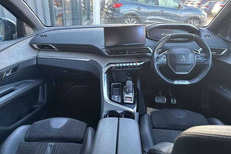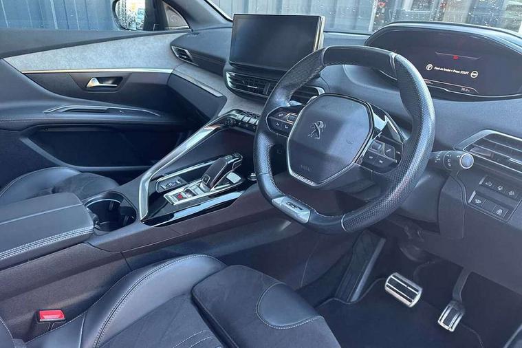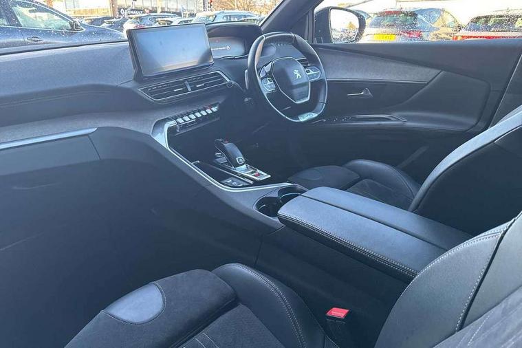 3D connected navigation with 10" HD touchscreen + voice recognition system, Bluetooth telephone facility, Driver attention alert system, Extended Traffic sign recognition, Exterior temperature indicator with ice warning, Front parking sensors, Hands free electric tailgate, Lane departure warning system, Mirror screen with mirror link, apple carplay and android auto, Multi function trip computer, Peugeot connect SOS and assistance, PEUGEOT i-Cockpit with 8.0" capacitive touchscreen in centre console, Peugeot i-cockpit with compact multi-function sports steering wheel, PEUGEOT i-Cockpit with configurable 12.3" Head-up digital instrument panel, Rear parking aid, Rear passenger USB charging sockets (x2) (type A), Speed limit recognition and recommendation, Visio park assist 360 with colour camera system + automatic parking assist, Dynamic stability control and electronic anti-skid system, Stop/start function, DAB Digital radio, Focal premium HiFi sound system, USB socket, Automatic triggered rear windscreen wiper in reverse gear, Body colour door handles, Body colour rear roof spoiler with stainless steel edging trim, Body protectors (bottom of front and rear bumpers + wheel arches + protection at bottom of doors) in black, Chrome front wing trim, Chrome rear bumper facia, Dark tinted rear side windows + tailgate window, Electric operated/heated door mirrors, Fog Mode, Frameless electrochrome rear view mirror, Front door sills with stainless steel insert featuring 'PEUGEOT' lettering, Front windscreen wiper with magic wash cleaning system, Full LED headlights with LED fog lights with static cornering function, Gloss black B and C pillar and aerodynamic deflector trim, Gloss black front bumper air scoops, Gloss black rear cluster connecting strip, GT emblem in satin copper (front wings and tailgate), Headlights left on audible warning, Heated rear windscreen with integrated antenna, LED daytime running lights, LED rear number plate lighting, LED side indicator lights integrated into door mirrors, LED third brake light, Nera black door mirrors, One touch electric front/rear windows with pinch protection, Power folding door mirrors with blind spot detection indicator and auto dipping function in reverse gear, Radiator grille in chrome edge trim and facets, Rear LED Peugeot signature 'Claw Effect' lights, Rear side wing doors, Stainless steel roof arches, Twin exhaust tailpipe, 1/3 to 2/3 split folding rear seats, 12V Sockets in dashboard, rear cabin and load area, 2 cupholders in front centre console, 2x Rear coat hooks, 3x Isofix child seat fittings in the front passenger and outer rear seats, 4 Grab handles retractable and damped, Aikinite stitching in armrest, gear lever and dashboard facia, Aluminium pedals, Blue ambient lighting for connecting zone, Blue ambient lighting to front door panels, central storage and cupholders, Centre front armrest with butterfly wing opening and illuminated storage compartment, Dual zone automatic climate control, Electric power steering with reach and rake adjustable steering column, Flocked front door pocket interior with blue ambient lighting, Flocked glovebox interior, Focal tweeter speaker grilles in Belem bronze metal effect finish, Foldable front passenger seat, Footwell illumination, Front interior light with 2 reading spotlights and rear interior light with timer, Front seat back map pockets, Gear shift indicator, Illuminated glovebox, Individual left and right controls in boot for seat folding, LED interior lighting in storage spaces and load area, Mistral floor mats with Aikinite contrast stitching, Mistral full grain perforated leather steering wheel with aikinite stitch detail and satin chrome 'GT' emblem, Rear bench seat with central armrest and ski hatch, Rear centre console ventilation system, Roof lining - Mistral black, Satin chrome dashboard trim, Satin chrome digital instrument panel and touchscreen trim, Satin chrome front door panel recess trim, Satin chrome interior door handles, Satin chrome scorpion's tail and toggle switch trim, Seatbelt not fastened audible and visual alert for front seats, Seatbelt unfastened on the move audible and visual alert for front and rear seats, Sunvisors with illuminated vanity mirrors, Two position boot floor, Drive assist plus pack - 3008, Driver and passenger seat pack - 3008, Driver sport pack - 3008 Auto, Visibility pack - 3008, 3x Rear three-point retractable seatbelts with force limiters in the outer rear seats, ABS (Anti-lock Braking System) with EBD (Electronic Braking Distribution) and EBA (Emergency Braking Assistance), Adaptive driver and front passenger airbags with passenger airbag deactivation function, Driver and front passenger side airbags, Electric child locking functionality on rear windows and doors, Electric parking brake, Front and rear curtain airbags, Front optimised safety headrests and 3 x rear retractable headrests with height adjustable, Front three point retractable seatbelts with pre tensioners and force limiters, Front ventilated disc brakes and rear disc brakes, Hill start assist, Two tone horn, Automatic door locking when moving off, Automatic hazard light activation upon heavy brake application, Electronic immobiliser, Perimetric and volumetric alarm with lift and tilt sensor, Peugeot Open and Go System, Remote control central locking with two plip keys, Grey greval alcantara dashboard and door panel inserts, Puncture repair kit including compressor, sealant cartridge and towing eye,