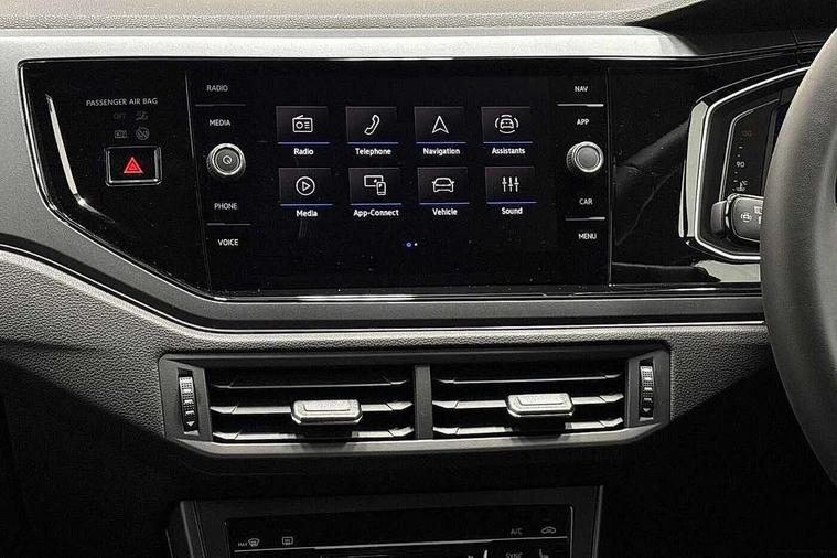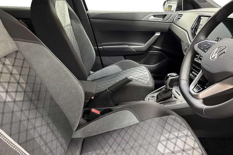 Adaptive cruise control with follow-to-stop and speed limiter, Advanced driver attention and drowsiness monitor, Bluetooth mobile phone interface, Digital Cockpit Pro with 10.25" Display, Dynamic road sign display, Emergency call service, Multifunction camera, Power assisted speed sensitive steering, Preparation for We connect and We connect plus, Speedo and rev counter, electronic odometer, trip, service interval display and fuel gauge, Standard rear axle, Travel Assist - Lane keeping system and traffic jam assist, Travel assist including emergency assist, Trip computer, Warning signal and warning light for front and rear seatbelts not fastened, Washer fluid level indicator, Wireless app connect, Front wheel drive, Rear shock absorpion, Start-stop system with battery regeneration (recuperation - energy recovery during braking), DAB Digital radio, Diversity antenna for FM reception, Front and rear 6 speakers, Body colour bumpers, Body colour door handles, Electric front windows, Front scuff plates with R-Line logo, Heat insulating glass windscreen, Power folding adjustable/heated exterior mirrors and front passenger exterior mirror lowering function, Rear electric windows, Rear fog light, Rear side wing doors, Rear windscreen washer and wiper with interval delay, Third brake light, 12V power socket in centre console, 2 USB-C ports in the front, 2 USB-C charging sockets on the center console in the rear, 3 rear head restraints, 60/40 split folding rear seat and rear seat bench not split, Air care climatronic air conditoning system with active combination filter and 2-zone temperature control, Black roof lining, Carpet mats, front and rear, Chrome plated radiator grille inserts, air vent surrounds and light switch surrounds, Door and side trim panel, Driver and front passenger seat height adjustment, Driver/passenger sunvisors with illuminated vanity mirrors, Front centre armrest, Front footwell illumination, Front seat backrest storage pockets, Front sports comfort seats, Handbrake lever handle in leather, Headliner in recycled material, Isofix child seat preparation easy-fit (for two outer rear seats, and front passenger seat) compatible with I-size, Karoso artvelours cloth upholstery, Leather trimmed gear knob, LED interior light with switch off delay and dimmer, 2 reading lights front and rear, Luggage compartment cover, Luggage compartment floor, Luggage compartment lighting, Lumbar adjustment for front seats, Single front passenger seat, Stainless steel pedals, Standard pedal cluster, Three spoke leather wrapped multifunction steering wheel with shifting paddles, Light and sight pack - Polo R-Line/Black Edition, 3 point height adj front seatbelts + pretensioners, 3x3 point rear seatbelts, ABS, Driver and front passenger airbag with front passenger airbag deactivation, Drivers and front passengers safety optimised head restraints, ESC (Electronic stability control) + EDL (Electronic Differntial lock) and ASR (Traction control), Extended and predictive pedestrian/ cyclist protection, Front curtain and side airbags with center airbag, Front/rear disc brakes, Hill hold control, Manual child lock in rear doors, Single tone horn, Tyre pressure loss indicator, Alarm with interior protection, Anti-theft alarm system with interior monitoring, backup horn, and towing protection, Anti-theft wheel bolts, Electronic engine immobiliser, Chrome applications on rotary light, mirror adjustment, window regulator switches, outlet with frame in black, Dark grey anodised matt decorative inserts in dash and front door panels, 16" Coventry alloy wheels, Low rolling resistance tyres,