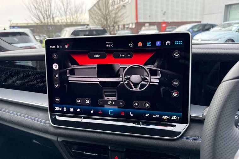 Adaptive cruise control (ACC), Digital Cockpit Pro - 10.25" high resolution dash display screen with customisable menus and information, Driver alert system, Driver attention monitoring system, Dynamic road sign display, E-Sim card for online connectivity, eCall emergency call system, Lane change system, Side assist, Rear traffic alert and Exit warning system, Multifunction front facing camera, Oncoming vehicle braking when turning including swerve support, Start/stop system with regenerative braking, Voice activation spoken voice commands for telephone and navigation system, Warning signal and warning light for front and rear seatbelts not fastened, Wireless App-Connect, All wheel drive - 4Motion, Digital radio reception (DAB), Diversity antenna for FM reception, Air intake with Chrome trim, Auto dimming interior rear view mirror, Automatic headlight control system, Body colour door handles, Chrome moldings on the side windows, Coming/leaving home lighting function, Dynamic headlight range control with dynamic cornering light, Exterior mirrors convex on the left and aspherical on the right, Heat insulating glass in side and rear windows, Illuminated Volkswagen logo rear with animation, Laminated safety glass windshield, heat insulating, LED 3rd brake light, LED separate signature day time running light, Puddle lights, Rain sensor windscreen wipers, Rear fog light on one side, reversing light on both sides, Rear side wing doors, Rear wiper, Reverse activated passenger's door mirror, Surround lighting with welcome light, Volkswagen logo in front, illuminated lighting animation with wake up/goodbye scenario and illuminated door handles, 10 colour interior ambient lighting, 12V outlet in center console rear and in luggage compartment, 3 rear headrests, 3 rear seat bench in 2nd row, backrest split folding with centre armrest and 2 seats in 3rd row of seats, Black roof lining, Brushed stainless steel pedals, Carpet mats, front and rear, Centre console with illuminated storage compartment with sliding cover and two drinks holders, Chrome elements on the mirror switch and power window switches and door pulls, Door and side trim panel insert in Art velour, Flat luggage compartment floor, Front centre armrest, Front scuff plates in aluminium, ISOFIX anchors for child seats on outer rear seats and front passenger seat compatible with i-Size, Mechanical rear seat release, Power adjustable lumbar support in front, Single front passenger seat, Sports comfort seats in front, Sun visors with illuminated vanity mirrors, 3 Point seat belts in front with pretensioners, 3 point seatbelts in outer rear with ECE label, Autonomous emergency braking front assist with pedestrian and cyclist monitoring, Driver and front passenger airbag with front passenger airbag deactivation, Electronic parking brake with auto hold, First aid kit with warning triangle and safety vest, Front and rear curtain airbags, Front and rear side airbags, Front centre airbag, Front disc brakes, Hill decent control, Hill start assist, Rear disc brakes, Two tone horn, Decorative material set R-Line, Interior door handle in matte chrome,