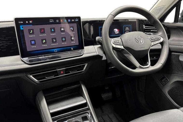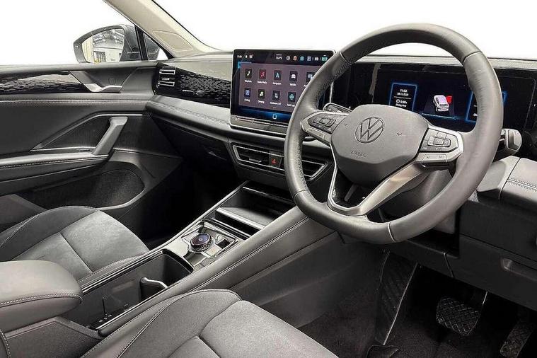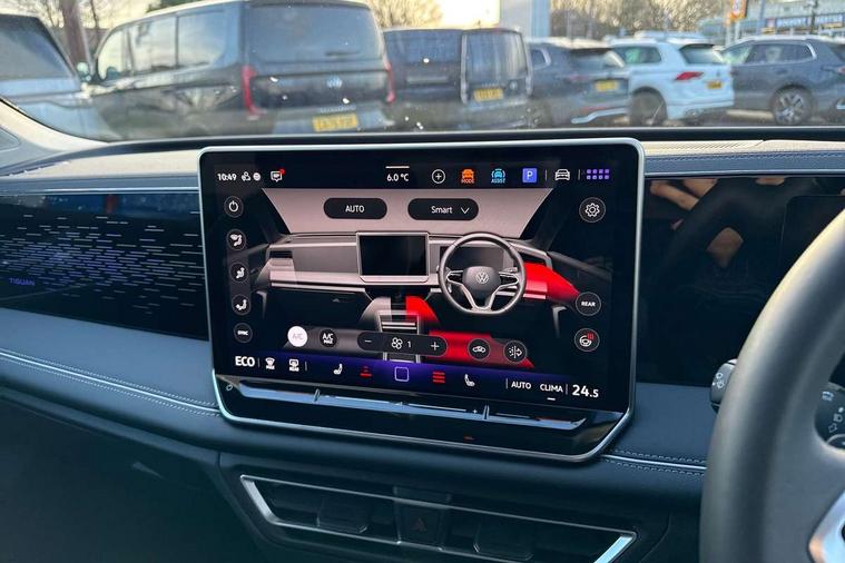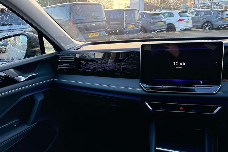 Adaptive cruise control (ACC), Advanced driver attention and drowsiness monitor, Bluetooth mobile phone interface, Car2X technology, Comfort drive travel assist, lane keeping system, lane assist and emergency assist, Digital Cockpit Pro - 10.25" high resolution dash display screen with customisable menus and information, Dynamic road sign display, E-Sim card for online connectivity, eCall emergency call service, Front Assist - Autonomous emergency braking with pedestrian and cyclist monitoring, Lane change system, Side assist, Rear traffic alert and Exit warning system, Multifunction front facing camera, Oncoming vehicle braking when turning including swerve support, Park assist pro with park distance control (Remote park assist), Power assisted steering with speed sensitive, Start/stop system with regenerative braking, Warning signal and warning light for front and rear seatbelts not fastened, Wireless App-Connect, Adaptive chassis control DCC pro includes driving mode selection, Charging cable Mode 3 Type 2 / 3 (16A), Front shock absorption, Front wheel drive, Rear shock absorption, Digital radio reception (DAB), Diversity antenna for FM reception, Air intake with Chrome trim, Ambient lighting with logo projection, Auto dimming interior rear view mirror, Automatic headlight control system, Body colored bumpers in R-Line style, Body coloured door handles, Body-coloured exterior mirror housings, Chrome moldings on the side windows, Coming/leaving home lighting function, Heat insulating glass in side and rear windows, Heated rear window, Heated windscreen washer jets, High level 3rd brake light, Illuminated door handle recesses, Illuminated lightline between headlamps, Laminated safety glass from B-pillar backwards 90% tinted, Laminated safety glass windshield, LED Day time running light, Rain sensor windscreen wipers, Rear fog light on one side, reversing light on both sides, Rear side wing doors, Rear wiper, Silver roof rails, 12V outlet in center console rear and in luggage compartment, 12V socket in centre console, 3 bench rear seats in 2nd row, Air care climatronic 3 zone air conditioning system with rear air conditioning control panel, Carpet mats, front and rear, Centre console with illuminated storage compartment with sliding cover and two drinks holders, Ceramique headlining, Chrome elements on the mirror switch and power window switches and door pulls, Door and side trim panel with leatherette insert, Door sill protectors, Front centre armrest, Interior ambient lighting with 30 colour options, ISOFIX anchors for child seats on outer rear seats and front passenger seat compatible with i-Size, Mechanical rear seat release, Power adjustable lumbar support in front, Rear bench seat, split folding, longitudinally movable and folding with load-through hatch and centre armrest, Safety optimised front head restraints, Single front passenger seat, Sports comfort seats in front, Sun visors with illuminated vanity mirrors, Three rear head restraints, Variable luggage compartment floor, Comfort package with park assist plus and Safelock - Tiguan, Driver assistance package - Tiguan, 3 point seat belt for centre rear seats, 3 Point seat belts in front with pretensioners, 3 point seatbelts in outer rear with ECE label, Driver and front passenger airbag with front passenger airbag deactivation, Electronic parking brake with auto hold, Front and rear curtain airbags, Front and rear side airbags, Front centre airbag, Front disc brakes, Hill start assist, Manual child proof rear door locks, Rear disc brakes, Two tone horn, Warning triangle, Decorative inserts Cross in dash and front door panels, Interior door handle in matte chrome, Soul instrument panel, Tyre mobility kit including compressor and sealing foam,