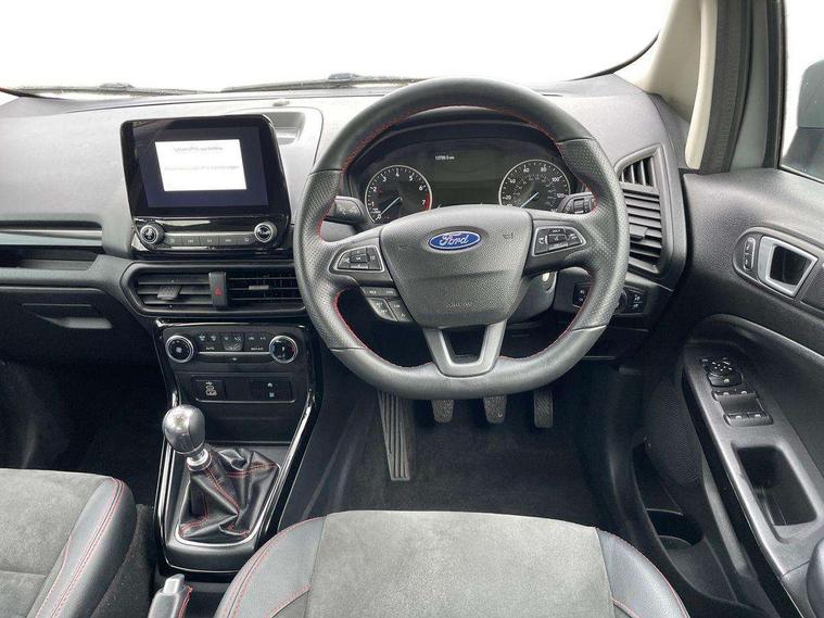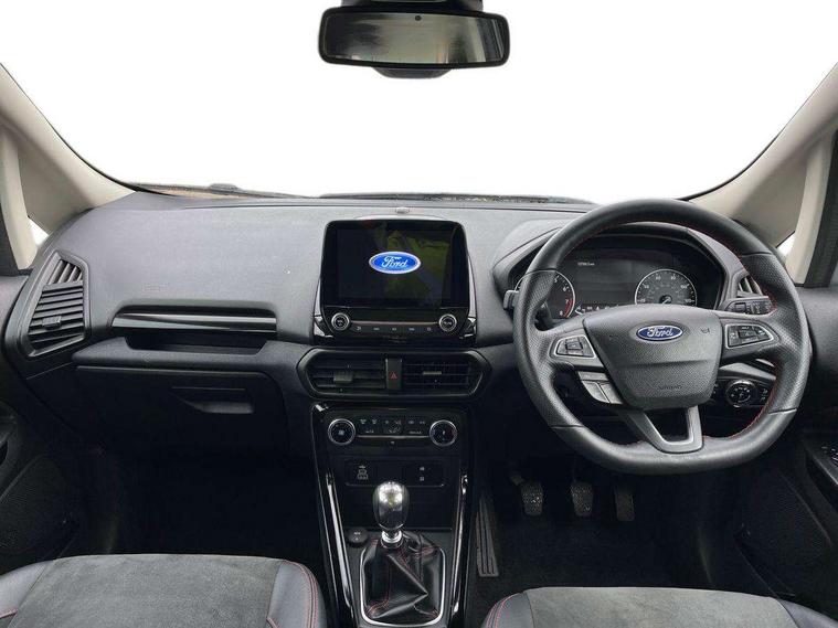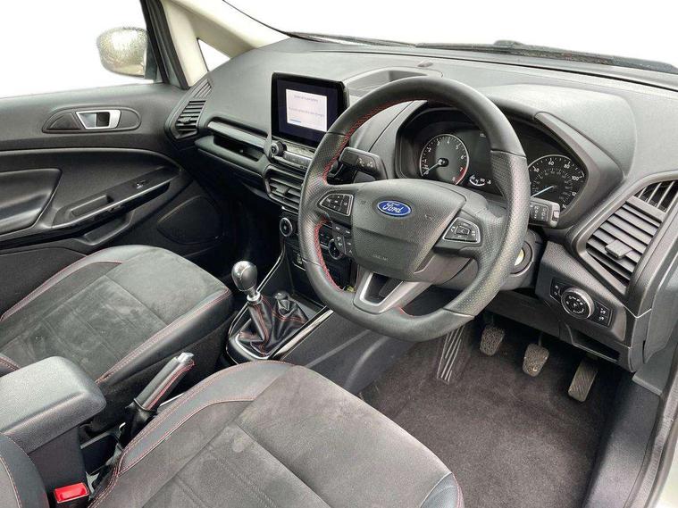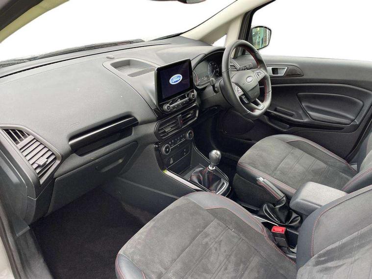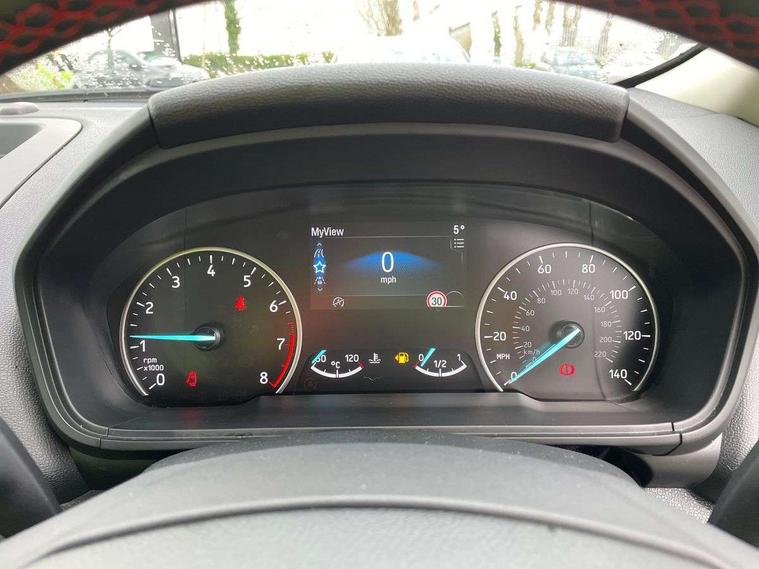 Cruise control, e-Call (emergency call), Easy fuel capless refuelling system, Ford SYNC 3 nav system with DAB radio, 8" screen, emergency assistance, Apple car play/Android auto, 2x USB, 6 speakers, Ford pass connect, Intelligent speed limiter, PAS, Rear parking sensors, Rear view camera, Traffic sign recognition, Trip computer, Sports suspension, Steering wheel mounted audio controls, Auto dimming rear view mirror, Automatic front wipers, Automatic headlights, Black roof rails, Body colour door handles, Body coloured bumpers, Chrome lower window surround, Electrically adjustable and heated door mirrors, Front fog lights, Front grille bars and surround in black, Headlight levelling control, Large rear roof spoiler, LED day running lights, LED third brake light, Power front and rear windows, Puddle lights, Quick-clear heated windscreen, Rear side wing doors, Rear wiper, ST Line body styling kit - Black headlamp bezel, front and rear sport bumpers, body colour lower door claddings, 12V socket in front and rear, 3 seat bench in 2nd row, 60/40 split rear seats, Ambient lighting, Centre console with sliding front armrest, Cooled glovebox, Courtesy lights with map reading light, Driver seat height/lumbar adjust, Driver's side glovebox, Driver/passenger sunvisors and lidded vanity mirrors, EATC - Electronic Auto Temperature control, Folding grab handles, Front head restraints, Front seat back map pockets, Illuminated glovebox, Illuminated luggage compartment, Isofix system on outer rear seats, Luggage compartment carpet, Neosuede/Partial sensico leather upholstery, Overhead console with sunglasses holder, Rake adjustable rear seats, Reach + rake adjustable steering column, Rear headrests, Sensico trimmed steering wheel, handbrake and gearshift gaiter with red stitching, Single front passenger seat, ST-Line Front floor mats with red stitching, Stainless steel sports pedals, Storage drawers under front seats, Tie down hooks, Variable boot floor, 3x3 point rear seatbelts, ABS, Autonomous emergency braking, Child locks on rear doors, Curtain airbags, Driver airbag, Drivers knee airbag, Electronic Stability Programme with hill launch assist, Front passenger airbag deactivation, Front side airbags, Passenger airbag, Pre collision assist system with AEB, Seatbelt reminder for driver and front passenger, Traction control, Tyre pressure monitoring system, Immobiliser, MyKey system, Remote central locking, Thatcham 1 volume sensing alarm, Low rolling resistance tyres, Tyre inflation kit,
