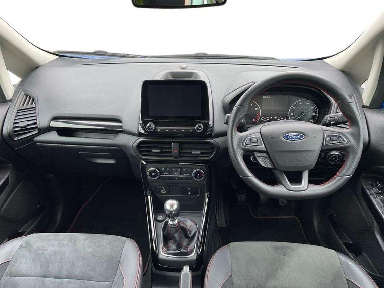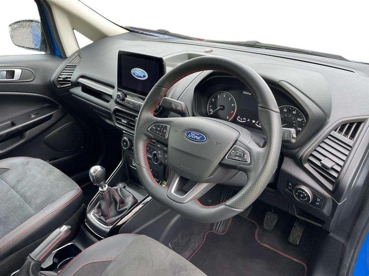 Cruise control, e-Call (emergency call), Easy fuel capless refuelling system, Ford SYNC 3 nav system with DAB radio, 8" screen, emergency assistance, Apple car play/Android auto, 2x USB, 6 speakers, Ford pass connect, Intelligent speed limiter, PAS, Rear parking sensors, Rear view camera, Traffic sign recognition, Trip computer, Sports suspension, Steering wheel mounted audio controls, Auto dimming rear view mirror, Automatic front wipers, Automatic headlights, Black roof rails, Body colour door handles, Body coloured bumpers, Chrome lower window surround, Electrically adjustable and heated door mirrors, Front fog lights, Front grille bars and surround in black, Headlight levelling control, Large rear roof spoiler, LED day running lights, LED third brake light, Power front and rear windows, Puddle lights, Quick-clear heated windscreen, Rear side wing doors, Rear wiper, ST Line body styling kit - Black headlamp bezel, front and rear sport bumpers, body colour lower door claddings, 12V socket in front and rear, 3 seat bench in 2nd row, 60/40 split rear seats, Ambient lighting, Centre console with sliding front armrest, Cooled glovebox, Courtesy lights with map reading light, Driver seat height/lumbar adjust, Driver's side glovebox, Driver/passenger sunvisors and lidded vanity mirrors, EATC - Electronic Auto Temperature control, Folding grab handles, Front head restraints, Front seat back map pockets, Illuminated glovebox, Illuminated luggage compartment, Isofix system on outer rear seats, Luggage compartment carpet, Neosuede/Partial sensico leather upholstery, Overhead console with sunglasses holder, Rake adjustable rear seats, Reach + rake adjustable steering column, Rear headrests, Sensico trimmed steering wheel, handbrake and gearshift gaiter with red stitching, Single front passenger seat, ST-Line Front floor mats with red stitching, Stainless steel sports pedals, Storage drawers under front seats, Tie down hooks, Variable boot floor, 3x3 point rear seatbelts, ABS, Autonomous emergency braking, Child locks on rear doors, Curtain airbags, Driver airbag, Drivers knee airbag, Electronic Stability Programme with hill launch assist, Front passenger airbag deactivation, Front side airbags, Passenger airbag, Pre collision assist system with AEB, Seatbelt reminder for driver and front passenger, Traction control, Tyre pressure monitoring system, Immobiliser, MyKey system, Remote central locking, Thatcham 1 volume sensing alarm, Low rolling resistance tyres, Tyre inflation kit,