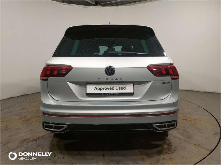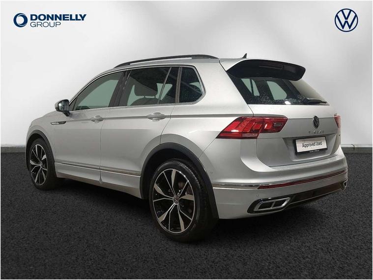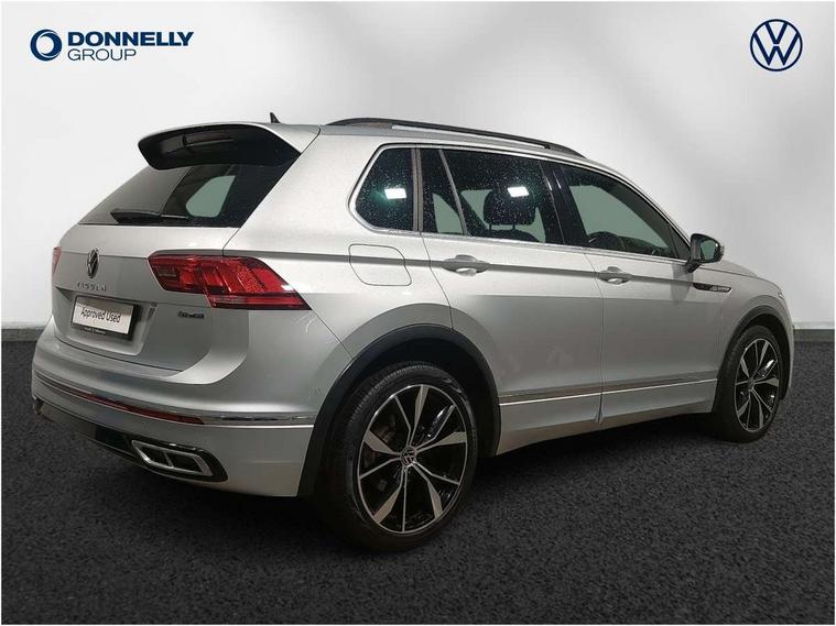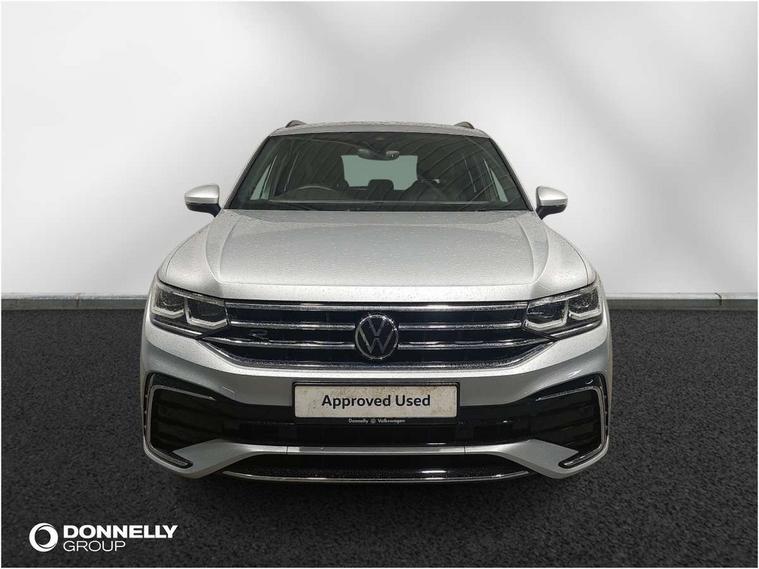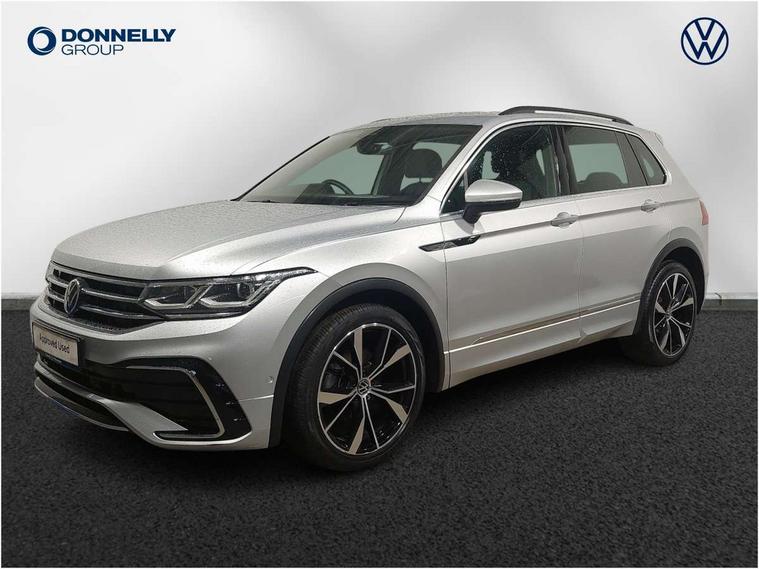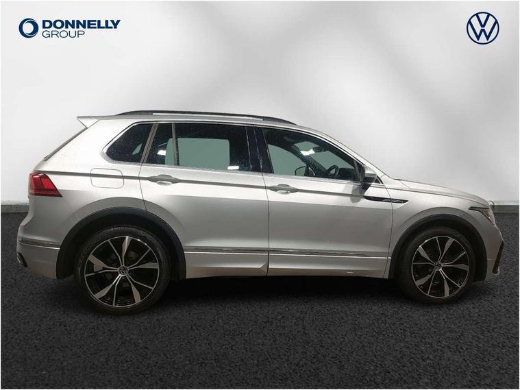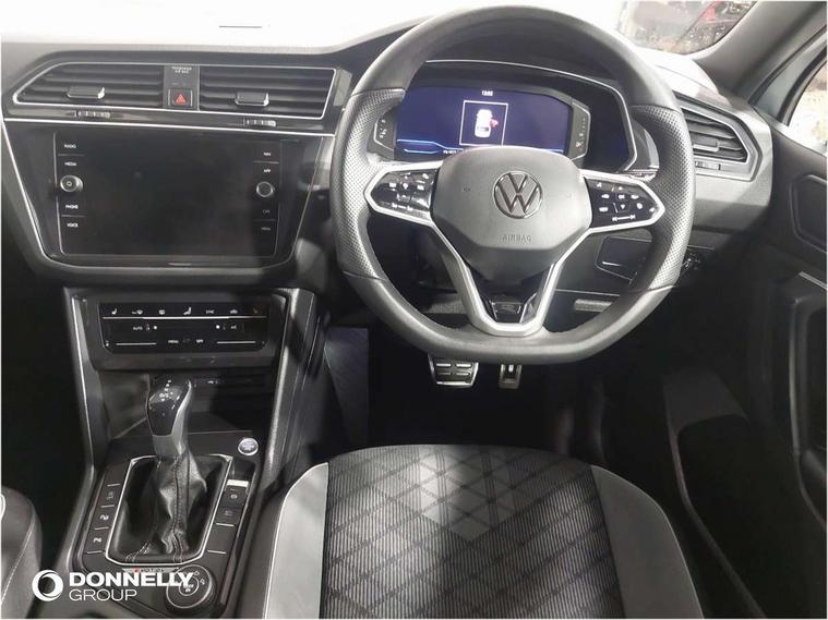 Adaptive cruise control ACC stop and go including speed limiter, App-Connect incl. App-Connect Wireless for Apple CarPlay and Android Auto, Bluetooth phone integration system, Digital Cockpit Pro - Active info display, Distance control assist, Driver alert system, Driver profile selection, Dynamic road sign display, eCall emergency call system, Electromechanical speed sensitive power steering, Engine start/stop button, Lane keeping system Lane Assist, Lights on warning, Multifunction front facing camera, Outside temperature display, Premium multifunction display with multi colour display, Remote control boot opening, Rev counter, Revision / skills operating concept travel assistant, Service interval indicator, Speed limit display, Start/stop system with regenerative braking, Trip computer, Warning sound and light for doors and tailgate open, All wheel drive - 4Motion, Battery regeneration during braking, Diesel particulate filter, Misfuel prevention device for diesel engine, Selective Catalytic Reduction, XDS electronic differential lock for improved traction and handling, 2 USB-C ports in the front, 1 USB-C charging socket on the center console in the rear, Diversity antenna for FM reception, Radio, SD card slot, Simultaneous pairing of 2 compatible mobile devices, SMS functionality - read, compose and send SMS messages using touch-screen display, Title and cover art display, Auto dimming interior rear view mirror, Automatic headlight control system, Black roof rails, Body colour door handles, Body coloured bumpers in R Line style, Body coloured door mirrors with integrated indicators, Chrome moldings on the side windows, Coming/leaving home lighting function, Dynamic headlight range control, Front and rear electric windows, Heated rear window, High level 3rd brake light, Laminated safety glass windshield, heat and sound insulating, LED rear number plate lights, License plate carrier in front and rear, Poor weather light and cornering light, Privacy glass for rear side windows and rear window, R Line body kit, R Line side sills, Rain sensor windscreen wipers, Rear exhaust tailpipe, Rear fog lamp, Rear side wing doors, Rear spoiler in R style, Rear windscreen washer and wiper with interval delay, Side and rear windows in heat insulating glass, Trailer Stability Programme, Unique R Line badging, Windscreen wipers/ intermittent wipe + 4 position delay, 12V outlet in center console rear and in luggage compartment, 12V outlet in front and tray, 2 cup holders in front, 2 LED front reading lights, 2 LED rear reading lights, 3 bench rear seats in 2nd row, 3 rear headrests, 4 load lashing points, 40:20:40 split folding rear seats, Air Care Climatronic 3 zone automatic climate control with enhanced air filter and controls in the rear, Backrest release for left front seat, Black headlining, Brushed stainless steel pedals and footrest, Carpet mats in front and rear with decorative stitching in Gray, Climate control unit rear with touch function, Door and side trim panel in foam film, insert in leatherette, Front centre armrest, Front footwell illumination, Front seats head restraints (x-adjustment), Height adjustable front seats, Height/reach adjust steering wheel, Instrument lighting white adjustable panel illumination, Interior light with delay, Isofix Preparation 2 Rear child seats, Leather gear knob, Lockable cooled glovebox, Luggage compartment lighting, Luggage net, Rear bench seat asymetrically split folding, longitudinally movable and folding with load-through hatch and center armrest, Remote unlocking for rear seat backrest, Removable luggage cover, Removable rear headrests, Safety optimised front head restraints, Single front passenger seat, Sliding/reclining rear seats, Standard rear seat release, Storage compartment in driver's door, Storage compartment in passenger's door, Storage compartment in rear doors, Storage compartments in luggage area left and right, Storage tray on dashboard, Sun visors with illuminated vanity mirrors, Top front comfort seats, Variable boot floor, height adjustable and removable, Ambience pack - Tiguan R Line, Driver assistance pack plus - Tiguan DSG, Park assist pack - Tiguan, 3 point seat belt for centre rear seats, 3 point seat belts with seat belt pretensioners for the outer rear seats, Active bonnet, Curtain airbags for front and rear passengers, Driver/Front Passenger airbags, Drivers knee airbag, Electronic parking brake with auto hold, Electronic Stability Control with driver steering recommendation, ABS, ASR, EDL, EDTC and trailer stabilization, Front assist with autonomous emergency braking (for Adaptive Cruise Control ACC up to 130 mph), Front disc brakes, Front passenger airbag deactivation, Front side airbags, Height adjustable front 3 point seatbelts + pretensioners, Hill hold control, Manual child proof rear door locks, Pedestrian monitoring system, Power assisted brakes, Proactive passenger protection system in combination with front assist, Rear disc brakes, Rigid safety cell with front and rear crumple zones, Two tone horn, Warning sound and light for front seat belts if unfastened, Anti theft alarm system with interior monitoring, backup horn and towing protection, Anti theft wheel bolts, Electronic engine immobiliser, 20" Misano black with diamond turned surface alloy wheels with Airstop tyres, Tool kit,