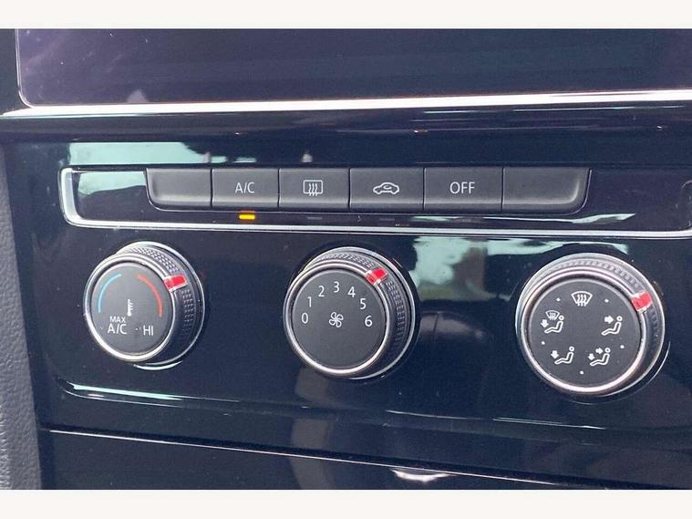 App-Connect, 'Lights On' Reminder warning buzzer, 8" colour touch screen, ACC - Adaptive cruise control with front assist, forward collision warning, distance monitoring, city emergency brake and speed limiter, Bluetooth telephone and audio connection for compatible devices, Brake pad wear indicator warning light, Driver alert system, Driver profile selection, Driving Mode Selection with four preset modes - Eco, normal, sport or individual modes, Front assist, radar sensor controlled distance monitor, city emergency braking + predictive pedestrian protection, Front assistant collision mitigation, Instrument cluster in white, Misfuelling protection device, Multifunction computer with visual gear change recommendation for fuel consumption, Power assisted speed sensitive electro-mechanical steering, Speedo, rev counter, electronic odometer, trip, service interval display, exterior temperature and fuel gauge, Stop/start system, Ultrasonic front and rear optical and audible parking sensors, Warning buzzer and light for front seatbelts unfastened, Battery regeneration during braking, Diesel particulate filter, Lowered sports suspension, XDS electronic differential lock, 8 speakers, CD/MP3/WMA, USB and SD card reader, aux-in, Composition media system, DAB Digital radio receiver, Multi device interface (MDI) with USB connection, SMS Functionality, Automatic coming/leaving home lighting function, Automatic dimming rear view mirror/rain sensor, Black front air intake and radiator grille with chrome insert, Black rear diffuser, Body colour bumpers, Body colour door handles, Body colour door mirrors with integrated indicators, Chrome grille surround, Chrome trimmed front air intake surrounds, Electric front windows, Electric rear windows, Electrically adjustable and heated door mirrors, Glavanised body, Heated rear windscreen, High level 3rd brake light incorporating LED Technology, LED front fog lights with static cornering light function, Range adjustable headlights via infotainment system with LED daytime running lights, Rear number plate lights incorporating LED technology, Rear tinted glass 65% light absorbing from B pillar backwards, Rear window aerial, Rear window wash/wipe with intermittent wipe, Reflectors in all doors, Remote electrically foldable door mirrors, door mirror puddle lights and reverse activated kerb-view adjustment on passengers door mirror, Tailgate with integrated rear roof spoiler, Windscreen wipers/ intermittent wipe + 4 position delay, 12V socket in luggage compartment, 3 rear headrests, 4 load lashing points in luggage compartment, 60/40 split folding rear seat backrest, Bag hook in luggage compartment x 2, Cooled glovebox, Dust/pollen filter, Front + rear carpet mats, Front centre armrest with storage compartment and two rear air vents, Front seat back storage pockets, Grab handles front x 2, rear x 2 with integrated coat hooks, Height and reach adjustable steering wheel, Illuminated vanity mirrors, Instrument lighting white adjustable panel illumination, Interior light delay, Isofix preparation for 2 rear child seats, LED front and rear reading lights, Load through provision with rear centre armrest and cupholders x2, Luggage compartment light, Multifunction leather steering wheel with leather trimmed gear knob, Overhead storage box, Pearl grey headlining, Storage box in luggage compartment, Storage compartment in roof console with cover, Storage compartments in front doors, Storage compartments in rear doors, Stowable luggage compartment cover, Sun visors, Three spoke multi-function leather trimmed steering wheel and gearknob, Variable boot floor, height adjustable and removable, Ambient lighting pack - Golf, Mirror pack - Golf, 3 rear three point seatbelts, Airbags - Driver's and front passenger's, curtain airbag, Driver's knee, front side impact and passenger's airbag deactivation switch, Anti-lock Braking System (ABS) with Hydraulic Brake Assist (HBA), Automatic post collision braking system, Child locks on rear doors, Driver/Passenger optimised head restraints, Electronic parking brake with auto hold, Electronic stability control (ESC) including Electronic differential lock (EDL) and ASR (Traction control) with deactivation via infotainment system, Pre crash preventive occupant protection, Three point height adjustable front seatbelts with tensioners, Tyre pressure loss indicator, Alarm with interior protection, Electronic engine immobiliser, Remote central locking with 2 remote folding keys, Chrome plated air vent surround, Chrome plated electric mirror adjustment light switch surround, Piano black decorative inserts in centre console, Tumbler decorative inserts, Steel space saver spare wheel,