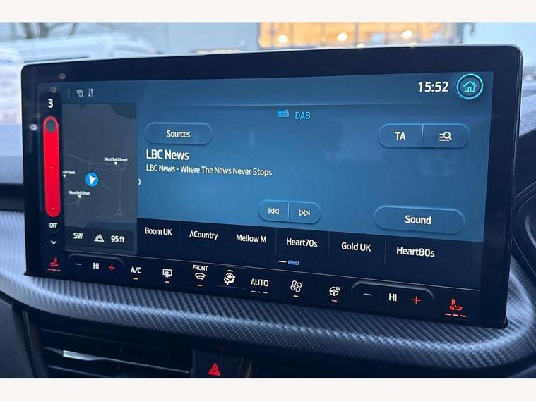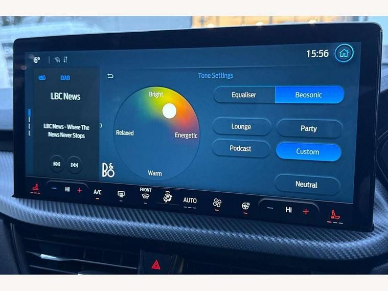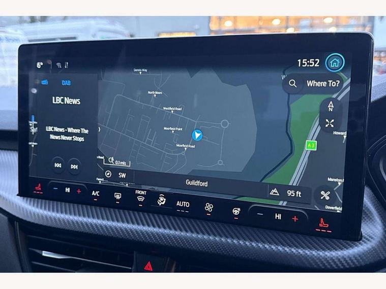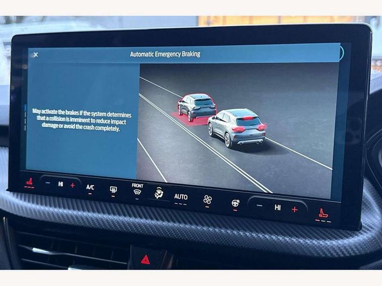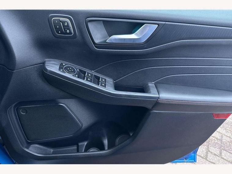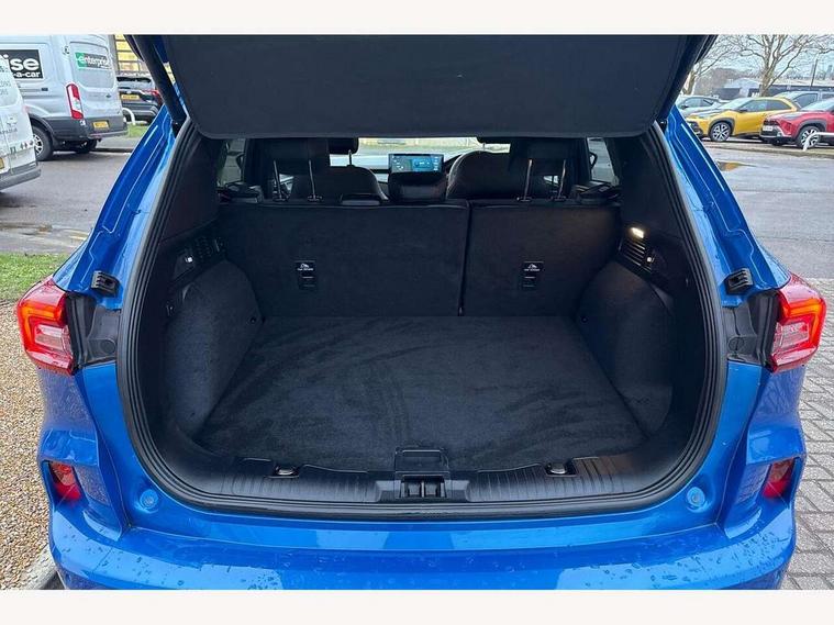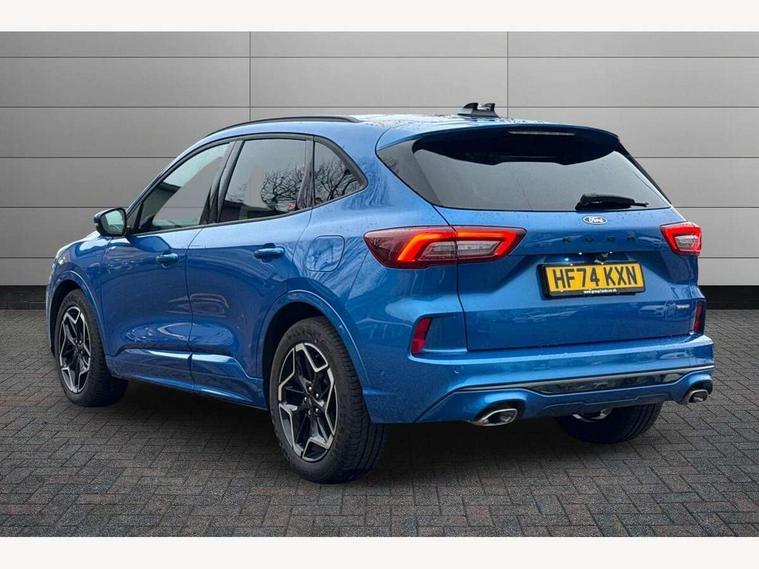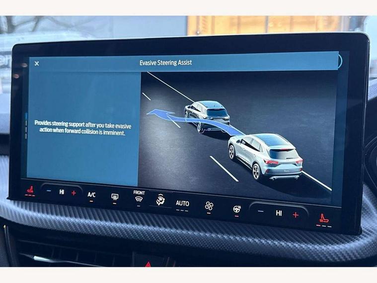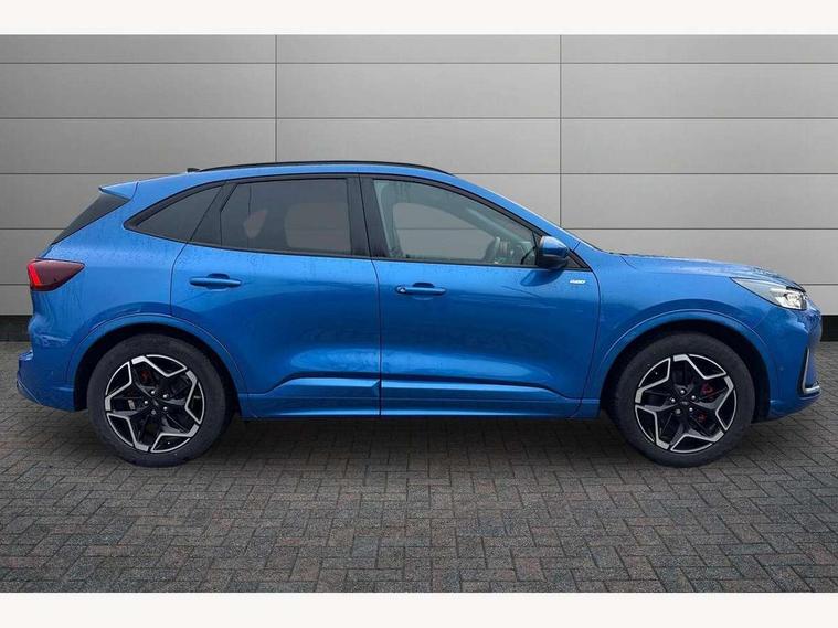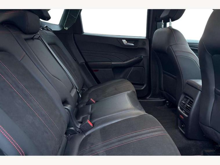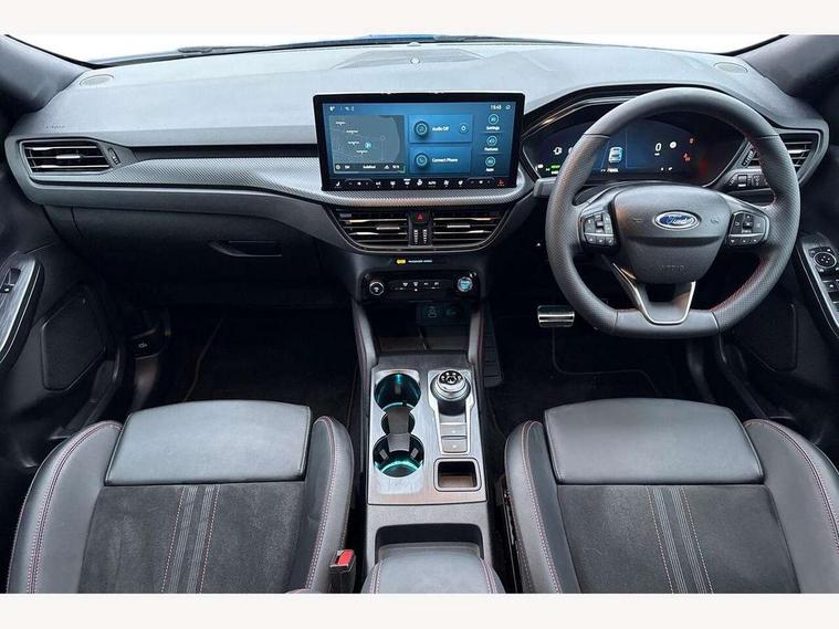 12.3" digital colour instrument cluster, 360 degree view camera, e-Call (emergency call), Ford easy fuel, Ford SYNC 4 Navigation with 13" touchscreen, DAB radio, emergency assistance, Andriod Auto/Apple CarPlay, 5G modem & Ford Pass connect, Front and rear parking sensors, Hands free power tailgate, Lane centering assist, Lane keeping aid with lane departure warning, Power assist steering, Selectable drive modes, Service interval indicator, Sports suspension, Twist beam rear suspension, B&O premium audio system with 10 speakers, subwoofer and 2 USB ports, Auto headlamps with high and low beam, Black roof rails, Body colour bumpers, Front LED fog lamps, Large rear spoiler, LED daytime running lights, LED rear lights, Pop out door edge protectors, Power front/rear windows with global close, Power heated folding door mirrors with puddle lights, memory function and camera, Power opening panoramic roof, Quickclear heated windscreen, Rain sensing wipers, Rear privacy glass, Rear side wing doors, Rear wiper, ST-Line body styling kit, Third brake light, 12 way ergonomic power adjust driver's seat with memory (AGR certified), 12 way ergonomic power adjust passenger seat (AGR certified), 2nd row sliding seats, Electronic automatic temperature control (EATC), Front and rear head restraints, Partial premium touch sensico upholstery, Rear centre head restraint, Single front passenger seat, Sports seats, Driver assistance pack with intelligent adaptive cruise control - Kuga FHEV/PHEV, Winter pack - Kuga, 3x3 point rear seatbelts, Airbags - front driver/passenger, front and rear curtain, Drivers knee airbag, Dynamic brake support, Electronic stability control (ESC) and ABS, Evasive steering assist, Ford MyKey Gen 2 safety system, Manual child proof rear door locks, Pre collision assist with autonomous emergency braking, Rear seat Occupancy alert, Red brake calipers, Tyre pressure monitoring system, Engine immobiliser, Keyless entry and Ford power start button (Keyless start), Locking wheel nuts, Remote powered central double locking doors, Thatcham category 1 alarm,