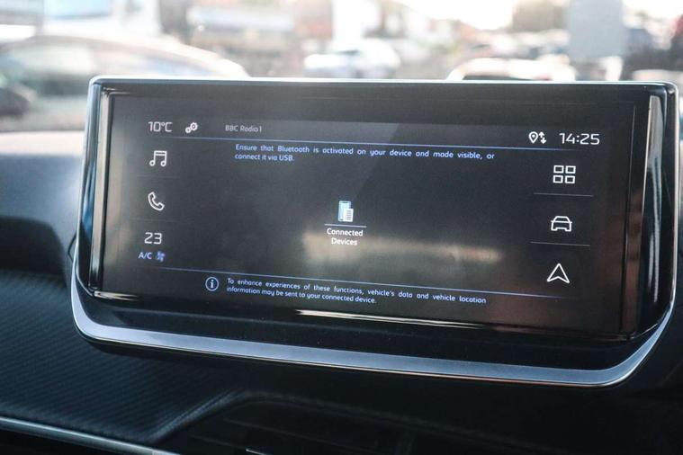 Bluetooth telephone facility, Drive mode selection(Eco/Normal), Driver attention warning, Emergency call service, Exterior temperature indicator with ice warning, Lane keep assist, Multi function trip computer, PEUGEOT i-Cockpit with 10" SD capacitive colour touchscreen, PEUGEOT i-Cockpit with 3.5" instrument panel and analogue dials, PEUGEOT i-Cockpit with compact steering wheel, PEUGEOT SOS and assistance, Programmable cruise control and speed limiter, Push button start, Rear parking sensors, Smart phone docking station, Speed limit recognition and recommendation, Start/stop system, Wireless mirror screen with apple carplay and android auto, 6 Speakers - 2 tweeters and 4 door speakers, DAB Digital radio, USB-C data and charge socket in front, Voice recognition for radio, navigation and telephony features, 2 X Rear number plate lights, Antenna - Base and removable wand, Automatic hazard light activation upon heavy brake application, Body coloured exterior door handles, Diamond black rear spoiler (roof), Eco LED headlights with electric height adjustment, Electric heated door mirrors, Gloss black door mirror shells, Gloss black rear cluster connecting strip, Grained black B pillar, Grained black front bumper grille and chrome accents, Headlights left on audible warning, LED 3 claw horizontal rear lighting signature with daylight function and LED brake lights, LED daytime running lights with distinctive 3 claw signature, LED Rear lighting with distinctive 3 claw horizontal signature with daylight function, LED third brake light, Manually adjustable rear view mirror, Model designation badges front and rear in basalt grey, One touch electric front/rear windows with pinch protection, Rear reversing lights, Rear side wing doors, Rear windscreen wiper triggered automatically in reverse gear, Roof spoiler, Tailgate with heated rear windscreen and wiper blade, Tinted windows, Variable front intermittent wipers, 1/3 to 2/3 split folding rear seats, 12V socket, 3 seat bench in 2nd row, Automatic mono zone climate control air condition, Boot lighting, Driver and front passenger comfort seats, Driver and front passenger seat manual adjustment in longitudinal and back rest angle, Driver seat mechanical height adjustment, Electric power steering with reach and rake adjustable steering column, Front interior light with 2 reading spotlights, Gear shift indicator, Low centre console, Map pockets on the backs of the front seats, Multifunction leather steering wheel, Piano keys gloss black plated toggle switches to access main functions of the vehicle, Rear centre headrest, Roof lining - light grey, Seatbelt unfastened on the move audible and visual alert for front and rear seats, Single front passenger seat, Tri material cloth upholstery, Visibility pack - 208, 2x Isofix child seat fitting on outer rear seats, 3 rear 3 point seatbelts, ABS (Anti-lock Braking System) with EBD (Electronic Brakeforce Distribution) and EBA (Emergency Braking Assistance), Child locking functionality on rear doors, Driver and front passenger airbag with passenger airbag deactivation, Driver/front passenger side airbags, ESP with Hill Assist, Front and rear curtain airbags, Front and rear disc brakes, Front optimised safety headrests and 3 x rear retractable headrests with height adjustable, Front three point retractable seatbelts with force limiters, Manual parking brake, Pedestrians active safety brake, Remote plip(x2) for locking, unlocking, includes emergency key blade, Tyre pressure monitoring system, Acoustic vehicle alert system (AVAS), Alarm - Connected, volumetric , perimetric, anti lift sensor, Automatic door locking when moving off, Deadlock, Electronic code immobiliser, Remote central locking, Carbon effect Dashboard, front and rear door panel finish, 16" Monti steel wheels, Tyre puncture repair kit,