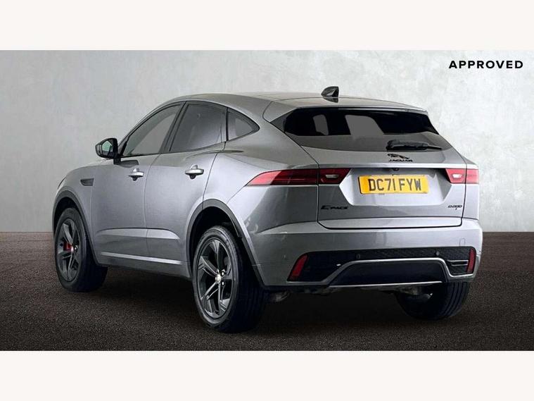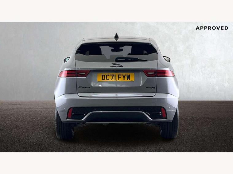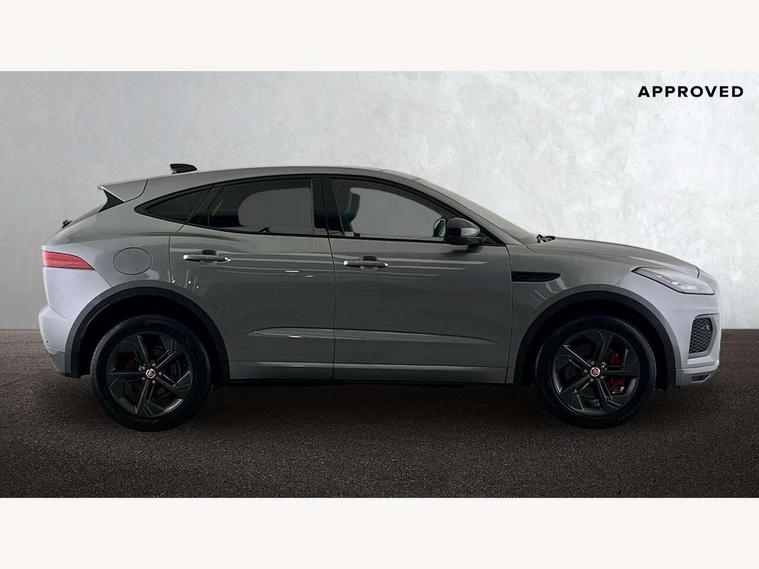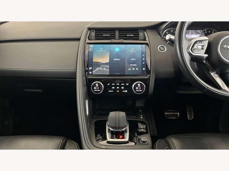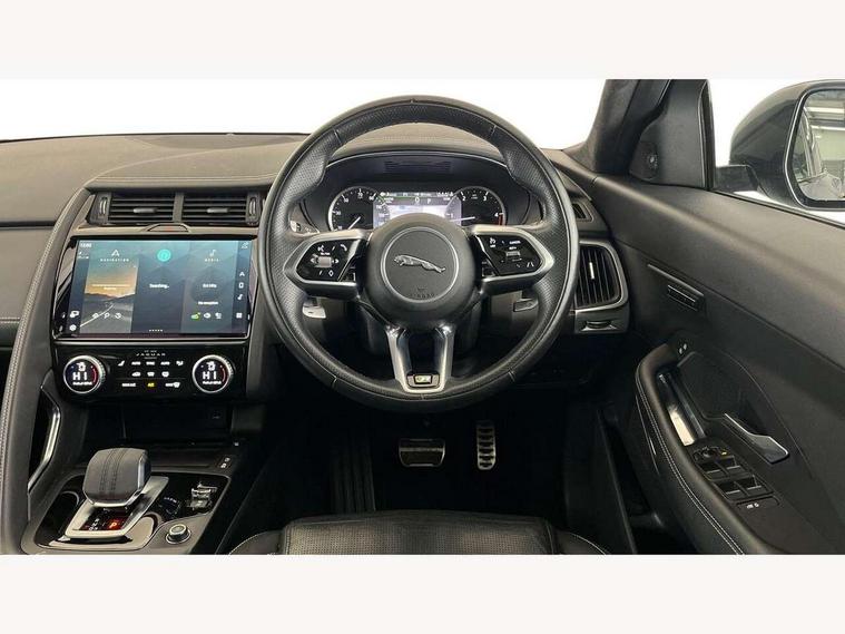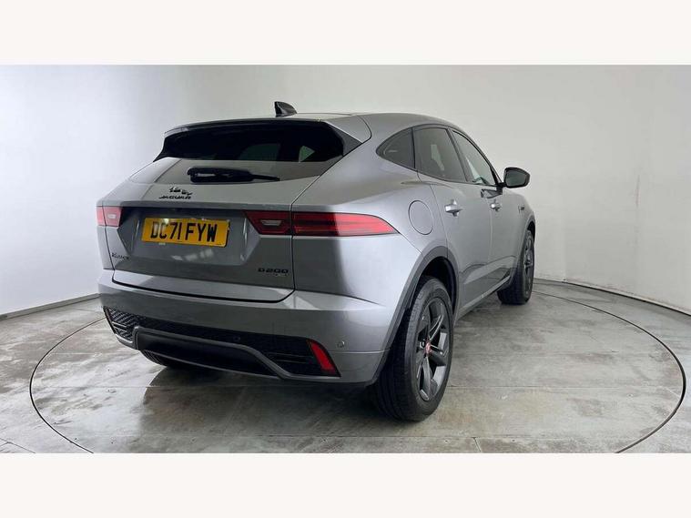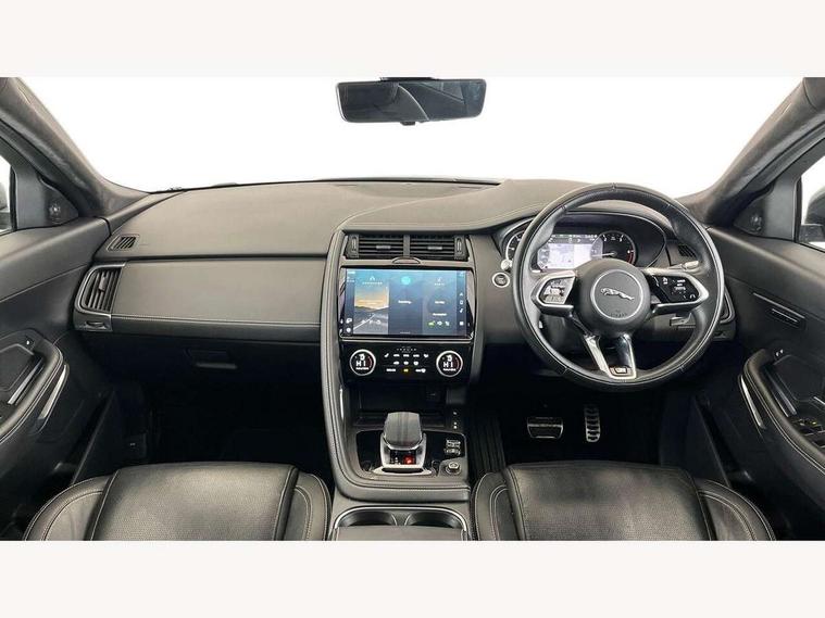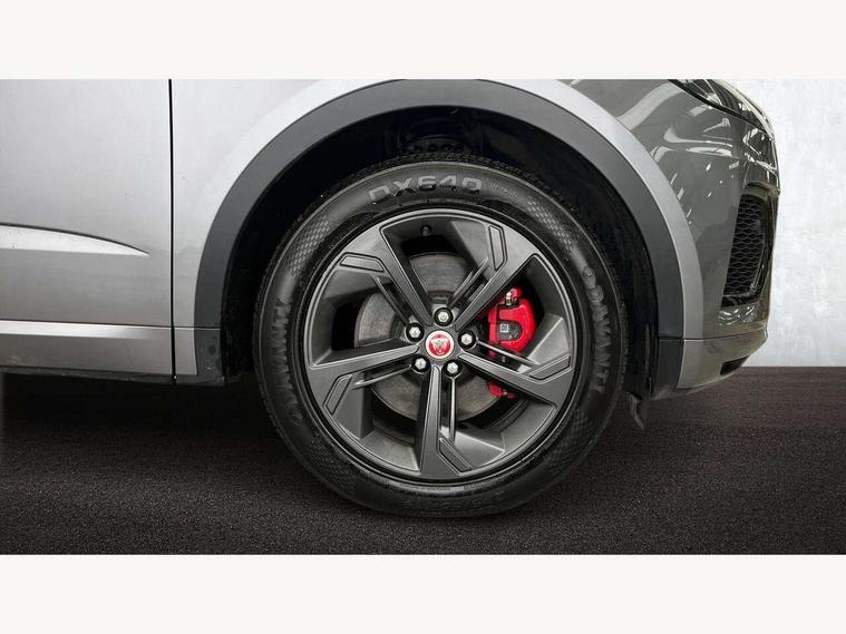 11.4" touchscreen with central ICP, 12.3" full digital instrument panel, Android Auto, Apple car play, Driver condition monitor, Eco driving style assistant, Electric power assisted steering, Front and rear parking aid, InControl remote, Jaguar drive control with adaptive surface response, Jaguar Toggle sport shift selector, Lane keep assist, Outside temperature gauge, Pivi pro connected infotainment system with smart settings and navigation pro, Push button start, Speed proportional steering, Traffic sign recognition with adaptive speed limiter, Trip computer, Voice control system, Configurable dynamics, Diesel particulate filter, Efficient Driveline, Passive suspension, AM/FM DVD MP3 radio, Bluetooth connectivity including audio streaming, DAB digital audio broadcast, Dynamic volume control, 3 flash lane change indicators, Approach Illumination, Auto high beam assist, Automatic headlights, Body coloured side sills, Centre high-mounted stop light, Electric front/rear windows with one touch/auto up/down, Embossed leaper for grained and windsor leather, Fixed panoramic glass sunroof, Heated washer jets, Heated windscreen, Jaguar script and leaper, LED tail lights, Privacy glass, R Dynamic badge, R Dynamic body colour bumpers, Rain sensor windscreen wipers, Rear fog lights, Rear wash wiper, Twin exhaust tailpipe, 3 rear head restraints, 40:20:40 rear seat fold, Bright metal pedals, Carpet mats, Centre console with armrest, Elasticated loadspace side-strap, Enhanced ambient lighting, Hooks loadspace, ISOFIX on outer rear seats, Loadspace cover, Loadspace light, Loadspace storage net, Luggage tie-downs in loadspace, Multifunction steering wheel, Overhead lighting console, Passive front head restraints, Power sockets, R-Dynamic branded leather steering wheel, Rear air vents, Rear bench seats, Satin chrome gearshift paddles, Sunvisors with illuminated vanity mirrors, Twin front cupholders, Two zone climate control, Exterior black pack - E-pace, 3x3 point rear seatbelts, ABS, All surface progress control (ASPC), Customer configurable autolock, DSC - Dynamic Stability Control, Electronic brake force distribution, Electronic parking brake, Emergency brake assist, Emergency braking, Front airbags with passenger seat occupant detector, Front and rear curtain airbags, Front and rear seatbelt reminder, Front side airbags, Hill start assist, Low friction launch, Power child locks, Red painted brake calipers, Torque vectoring brake, Tyre pressure monitoring system, Intrusion sensor and alarm, Locking wheel nuts,