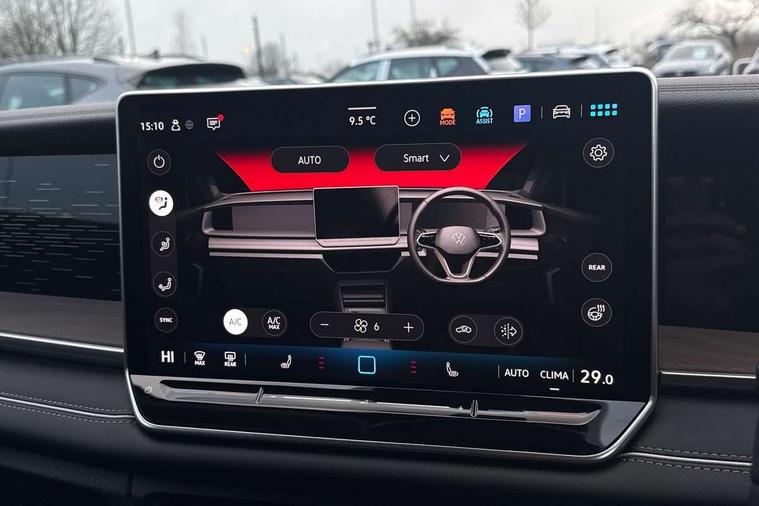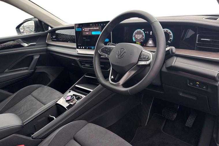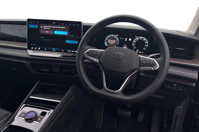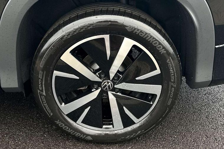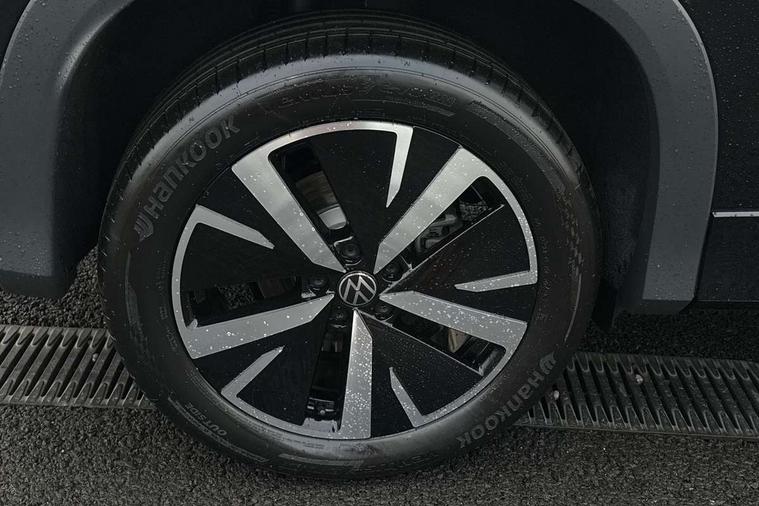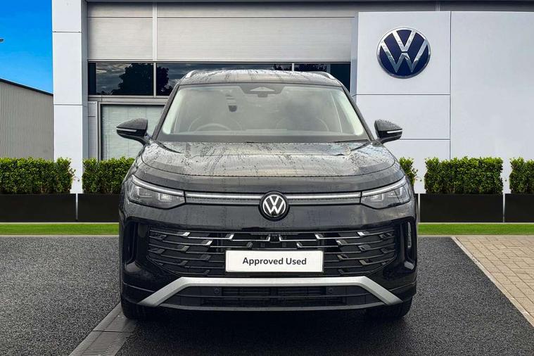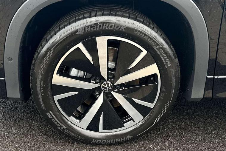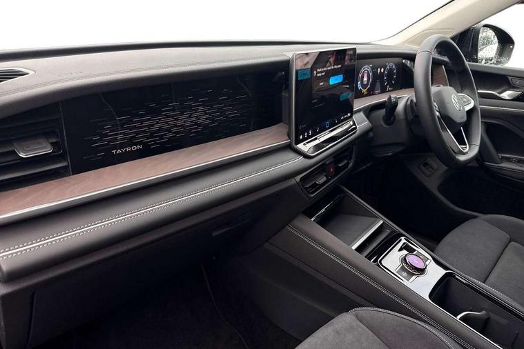 Adaptive cruise control (ACC), Digital Cockpit Pro - 10.25" high resolution dash display screen with customisable menus and information, Driver alert system, Driver attention monitoring system, Dynamic road sign display, E-Sim card for online connectivity, eCall emergency call system, Lane change system, Side assist, Rear traffic alert and Exit warning system, Multifunction front facing camera, Oncoming vehicle braking when turning including swerve support, Start/stop system with regenerative braking, Voice activation spoken voice commands for telephone and navigation system, Warning signal and warning light for front and rear seatbelts not fastened, Wireless App-Connect, Front wheel drive, Digital radio reception (DAB), Diversity antenna for FM reception, Auto dimming interior rear view mirror, Automatic headlight control system, Body colour door handles, Body coloured bumpers and air intake with chrome trim, Body-coloured exterior mirror housings, Chrome moldings on the side windows, Coming/leaving home lighting function, Dynamic headlight range control with dynamic cornering light, Exterior mirrors convex on the left and aspherical on the right, Heat insulating glass in side and rear windows, Illuminated Volkswagen logo rear with animation, Laminated safety glass from B-pillar backwards 90% tinted, Laminated safety glass windshield, heat insulating, LED 3rd brake light, LED separate signature day time running light, Puddle lights, Rain sensor windscreen wipers, Rear fog light on one side, reversing light on both sides, Rear side wing doors, Rear wiper, Reverse activated passenger's door mirror, Surround lighting with welcome light, Volkswagen logo in front, illuminated lighting animation with wake up/goodbye scenario and illuminated door handles, 10 colour interior ambient lighting, 12V outlet in center console rear and in luggage compartment, 3 rear headrests, 3 rear seat bench in 2nd row, backrest split folding with centre armrest and 2 seats in 3rd row of seats, Carpet mats, front and rear, Centre console with illuminated storage compartment with sliding cover and two drinks holders, Chrome elements on the mirror switch and power window switches and door pulls, Door and side trim panel featuring foam film with leatherette insert, Flat luggage compartment floor, Front centre armrest, Front scuff plates in aluminium, ISOFIX anchors for child seats on outer rear seats and front passenger seat compatible with i-Size, Mechanical rear seat release, Power adjustable lumbar support in front, Single front passenger seat, Sports comfort seats in front, Sun visors with illuminated vanity mirrors, Comfort package with park assist pro - Tayron, Driver assistance package - Tayron, 3 Point seat belts in front with pretensioners, 3 point seatbelts in outer rear with ECE label, Autonomous emergency braking front assist with pedestrian and cyclist monitoring, Driver and front passenger airbag with front passenger airbag deactivation, Electronic parking brake with auto hold, First aid kit with warning triangle and safety vest, Front and rear curtain airbags, Front and rear side airbags, Front centre airbag, Front disc brakes, Hill start assist, Rear disc brakes, Two tone horn, Decorative material set Elegance with inserts in ornamental wood ash in the dashboard, Interior door handle in matte chrome,