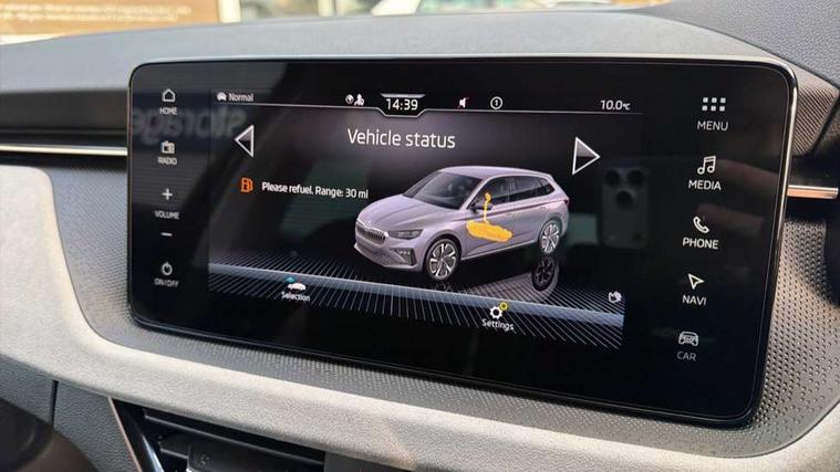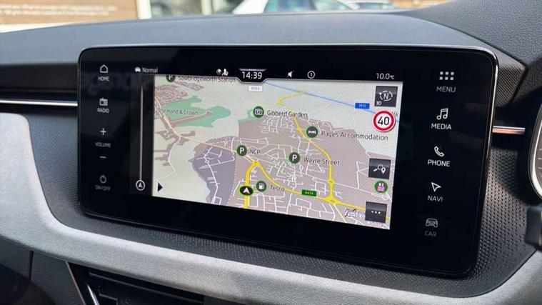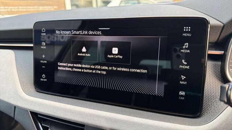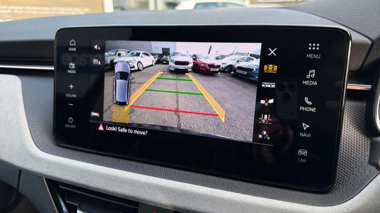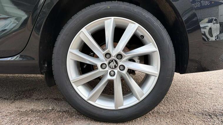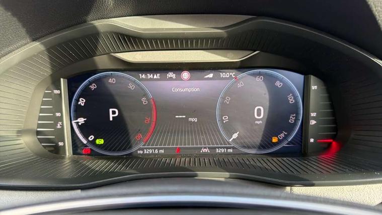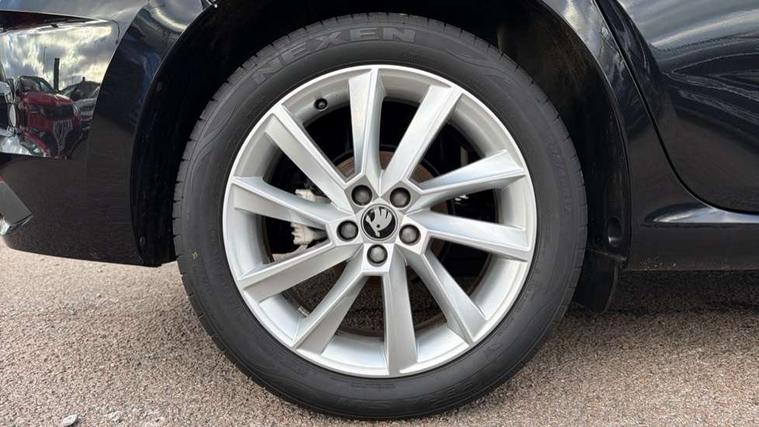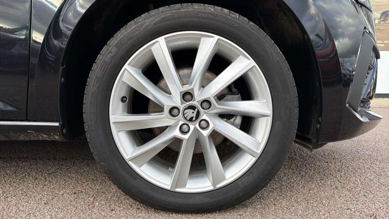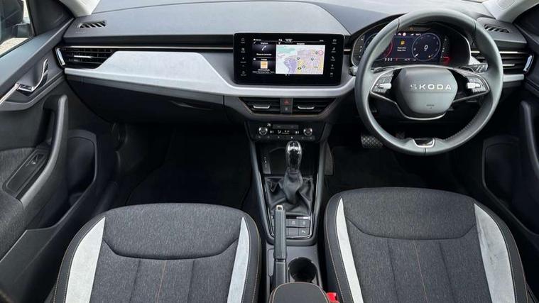 Advanced driver attention and drowsiness monitor, Bluetooth, e-Call (emergency call), Front assist system, PAS, Rear parking sensors, Rear view camera, Speed limiter, Tailgate, Traffic sign recognition, Virtual Cockpit - 10.25" digital display, Voice control system, Wireless smartlink, 4 USB C ports, 8 Speakers, 9.2" Skoda navigation display, DAB radio, Auto dimming rear view mirror, Automatic headlight control with manual coming and leaving home feature, Automatic intermittent wipers, Body colour bumpers, Body colour door mirrors and handles, Chrome moulding around grille, Chrome window frames, Front and rear electric windows, Heated rear window, LED 3rd brake light, LED daytime running lights, LED high beam, LED low beam, Light sensors, Privacy glass, Rear LED fog light, Rear side wing doors, Rear wiper, Tinted windows, Unique dark chrome design logo on alloy wheels, 12V socket in luggage compartment, 3 seat bench in 2nd row, Ambient lighting in white/red, Black / Copper armrest stitching, Cargo elements, Chrome inner door handles, Copper hotstamping, Door inserts in accent black, Driver and passenger sun visors with vanity mirror, Dual zone climate control, Front and rear roof lights, Front centre armrest, Front head restraints, Glasses storage in roof liner, Height adjustable driver seat, Height adjustable passenger seat, Ice scraper, Illuminated glove compartment, Inner circulation control with pollen filter, ISOFIX for front passenger seat, Isofix preparation for back seats, Leather gearknob and handbrake lever, Lodge cloth upholstery, Luggage net under rear parcel shelf, Manual lumbar support for front seats, Net package and top tether hooks in boot space, Pocket on the back of both front seats, incl. mobile phone pockets, Rear centre armrest, Single front passenger seat, Skoda lettering on steering wheel, Textile floor mats, Third rear headrest, Ticket holder, Top tether for front passenger seat, Umbrella in driver's door, Convenience pack without rear camera - Scala, 3x3 point rear seatbelts, ABS, Child locks, Curtain airbags and front side airbags, Disc brakes, Driver and front passenger airbags, ESP, Hill hold control, Manual leather parking brake, One tone horn, Passenger airbag switch off function, Seatbelt reminder for driver and front passenger, Tyre pressure monitoring system, Anti theft alarm system with interior monitoring, backup horn and towing protection, Anti-theft wheel bolts, Remote central locking with 2 remote folding keys, SAFE function for remote central locking, Decorative inserts,