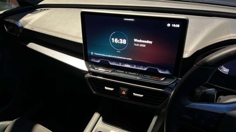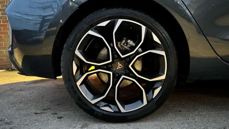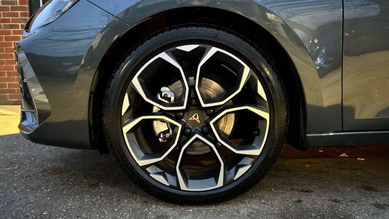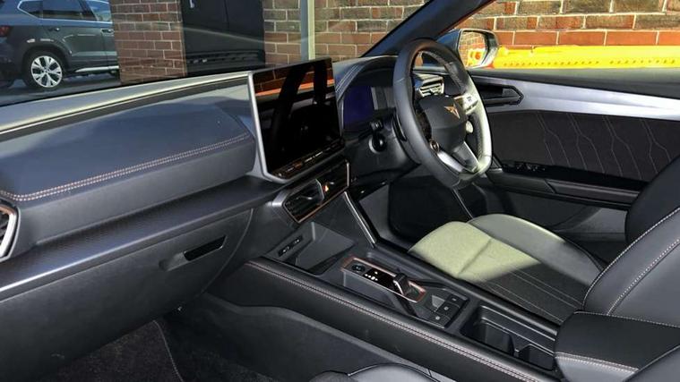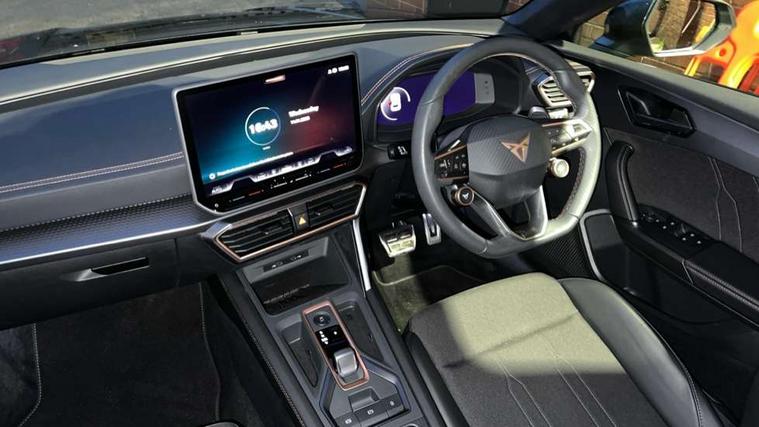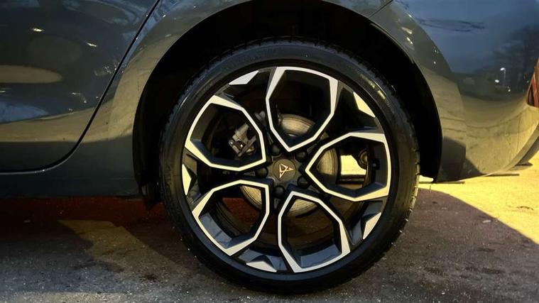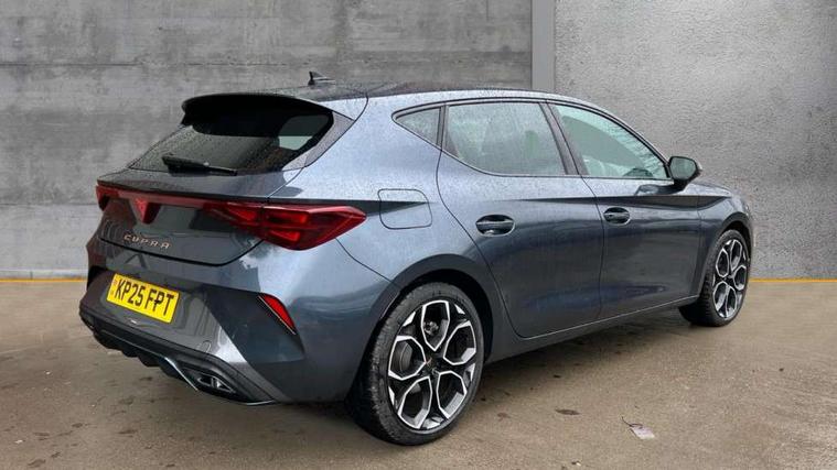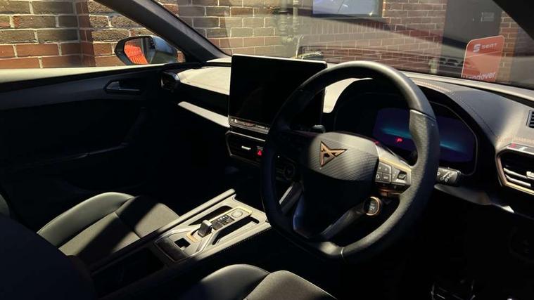 Adaptive cruise control with follow-to-stop and speed limiter, CUPRA drive profile selection with (Comfort/Sport/Individual), throttle response and gearshift mode, Digital cockpit, Dynamic road sign display, E-call, Front and rear parking sensors, Front assist with forward collision warning braking reaction to vehicles, pedestrians and cyclists, Full link smartphone integration with Mirror Link, wireless Apple CarPlay and wired Google Android Auto, Lane assist, Lockable tailgate, PAS, RPM, trip computer, outside temp gauge, instrument light brightness, low fuel warning light, lights on reminder, gearshift indicator, Service interval indicator, Start/stop system with regenerative braking, Wireless phone charger, 7 speakers, Auxiliary input socket, Auto dimming rear view mirror, Body colour door handles, Body coloured bumpers, Cupra sports bumpers, Dark tinted rear windows, Electric front/rear windows, Electrically adjustable, heated and folding door mirrors, High beam assist, LED front fog lamps with cornering function, LED headlights with dynamic turn signals, tail lights, rear fog lights with rear coast to coast lighting, LED rear fog lamp, Rain sensing wipers, Rear side wing doors, Rear wash/wipe, Separate daytime running light with automatic headlight control and coming home feature, Third brake light, Welcome light with logo projector in door mirrors, 12v power supply in centre console, 3 seat bench in 2nd row, 5 headrests, 60/40 split rear bench seat with armrest, Ambient lighting with glovebox, footwell and single monocolour, Black headlining, Cloth/PVC upholstery, Cupra sports pedals, CUPRA Supersports, heated steering wheel with satellite buttons, Driver and passenger seat with manual height and lumbar adjustment, Folding boot cover, Four x USB Type C ports (2 in front and 2 in rear), Front and rear reading lights X 4, Front centre armrest, Height/reach adjust steering wheel, Illuminated interior front door sills, ISOFIX points in outer rear seats with top tether anchorage points, Single front passenger seat, Storage pockets on rear of front seats, Sunvisors with illuminated mirror, Three zone climate control, Media system plus with 12.9" display + navigation pack - Leon Cupra, 3 point seatbelts on all rear seats, ABS, Brake control system - ESC and brake booster, Child proof door locks, Cupra black brake calipers, Driver and front passenger airbags with front passenger airbag de-activation, front side and curtain airbags, Electronic parking brake, Hill hold control, Rear disc brakes, Seat belt reminder for front and rear seats, Tiredness recognition system, Tyre pressure monitoring system, Anti theft alarm system with interior monitoring in cab, backup horn and towing protection, Central locking system Keyless Go, Locking wheel bolts, Chrome and copper interior detailing, 18" Windstorm machined sport black matt and silver alloy wheel with 92Y XL tyres, Tool kit,