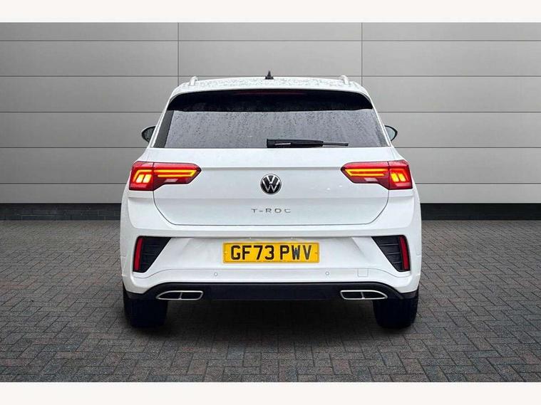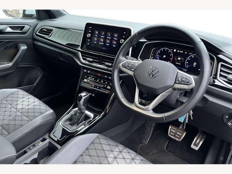 10.25" Digital cockpit pro, Advanced driver attention and drowsiness monitor, Bluetooth mobile phone interface, Driver tips and journey analysis, Emergency call service, Lane keeping system Lane Assist, Modified key software - reduce switch off time for key status change to Long no motion, Online services, Park assist including front and rear parking sensors, Service interval indicator, Tailgate/trunk lid release from outside, Think blue trainer driver tips and journey analysis, Warning sound and light for front seatbelts unfastened, Wireless app connect, Battery regeneration during braking, Start/stop function with battery regeneration, Diversity antenna for FM reception, Music playback - MP3, WMA and AAC files, Premium USB cable in choice of either Apple or Android smartphone compatibility, SD card slot, Simultaneous pairing of 2 compatible mobile devices, Title and cover art display, We Connect and We Connect Plus functionality, 3rd brake light, Auto dimming interior rear view mirror, Automatic hazard lights activation under emergency braking, Automatic headlight control with LED separate daytime running lights with coming/leaving home function, Extended roof spoiler, Exterior mirrors aspherical on driver side, convex on front passenger side, External USB type C socket and charging sockets, Front windscreen wiper with intermittent wipe and 4 position delay, Heated rear window, LED rear combination lamps, LED rear number plate lights, LED tail lamp rear comination lamps, Power windows with comfort operation and circuit breaker, R-Line design body coloured bumpers, Rain sensor, Rear exhaust tailpipe, Rear fog light on one side and reversing lights on both sides, Rear side wing doors, Rear wash/wipe with intermittent wipe setting, Remote electrically foldable door mirrors, puddle lights and reverse activated passenger's door mirror, 12V power socket in centre console, 3 rear head restraints, 3 seat bench in 2nd row, 4 load lashing points in luggage compartment, Air care climatronic air conditoning system with active combination filter and 2-zone temperature control, Black roof lining, Chrome plated radiator grille inserts, air vent surrounds and light switch surrounds, Door and side trim panel with leatherette insert, Front + rear carpet mats, Front centre armrest, Front cupholders x 2, Front footwell illumination, Front reading light, Front scuff plates with R logo, Instrument lighting, white adjustable panel illumination, Interior ambient lighting and surround lighting, Interior light delay, Isofix child seat preparation, Leather gearshift handle, Load-through provision with cup holder when folded down ('Unsplit rear seat bench, split folding backrest, with centre armrest), Luggage compartment lighting, Single front passenger seat, Stainless steel pedals, Storage compartment in left and right luggage area, Storage compartment in rear doors, Storage compartments in driver and front passenger doors, Sunvisors with illuminated vanity mirrors, Variable boot floor, height adjustable and removable, Driver assistance pack without proactive passenger protection - T-Roc, 3 point height adj front seatbelts + pretensioners, 3 point seatbelts in outer rear with ECE label, ABS, Child locks on rear doors, Driver and front passenger airbag with front passenger airbag deactivation, Driver and front passenger safety-optimised head restraints, Drivers seatbelt reminder, Electronic parking brake, Electronic Stability Control (ESC) inc EDL (Electronic Differential Lock) and ASR (Traction Control), Front and rear passengers curtain airbag system including front side airbags, Front assist with city emergency braking and pedestrian monitoring, Front seat side impact airbags, Hill start assist, Predictive pedestrian protection, Rear disc brakes, Two tone horn, Tyre pressure loss indicator, Volkswagen roadside assistance, Anti-theft alarm system with interior monitoring, backup horn, and towing protection, Remote central locking with SAFELOCK, radio remote control with 2 remote control folding keys, Trims for alloy wheels,