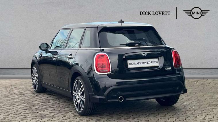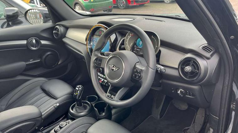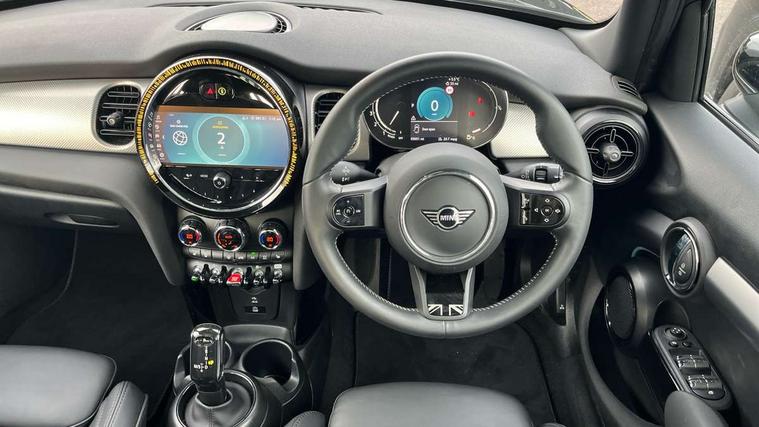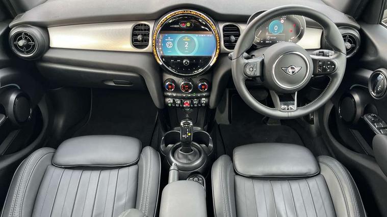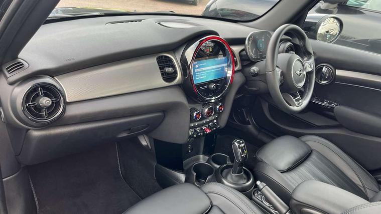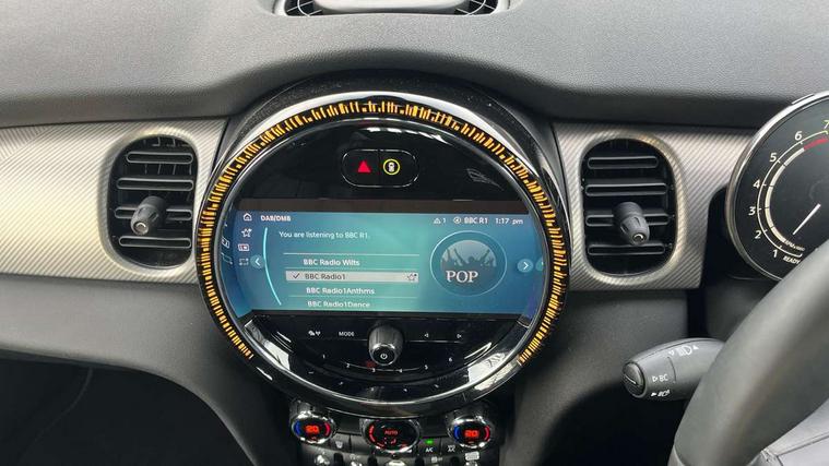 Apple CarPlay, Automatic start/stop function with brake energy recuperation, Compatible mobile phone bluetooth with audio streaming, Electro-mechanical speed dependant steering assistance, Flexible car sharing preparation, MINI Driving Modes - centre toggle switch to control driving setting (sport, mid and green), Mini E-call, MINI TeleServices, On board computer, Rear park distance control, Service interval indicator, Double Vanos system, Fully variable valve control, Gear change indicator display, High precision injection, Performance Control, Steptronic transmission with double clutch, 8.8" touchscreen with LED ring, FM tuner and DAB digital radio, 3rd brake light, Automatic headlight activation switch, Body colour fuel filler cap, Chrome line exterior - radiator grille bars, tailgate handle, lower front grille grating and rear central fog-light, Dynamic brake lights, Electric front+rear windows, Heated rear window, Heated windscreen washer jets, Metal door sill strips with MINI imprint, Model logo Cooper on right of tailgate, Rain sensor window wipers, Rear fog lights, Rear LED lights with union jack design, Rear side wing doors, Rear window wiper, Side scuttle panel with integrated indicator, Sun/heat protection glass, White indicator lenses, 12V Accessory socket in centre console, 3 seat bench in 2nd row, 4 lashing eyes in luggage compartment, 60/40 split folding rear seat, Anthracite headliner including grab handles and clothes hooks, Carbon black colour line - Knee roll and door armrest, Chrome interior highlights, Chrome line interior - air vents, gear lever base, door handles and speakers in doors, Cupholders, Front and rear head restraints, Front and rear isofix with front passenger airbag deactivation, Front and rear velour floor mats, Glove compartment, Height and length steering column adjustment, Interior lighting with 12 different colours across the dashboard, underneath door bezel with illuminated laser-engraved design on central display, Leatherette gearshift lever and handbrake gaiters, LED reading lights, vanity mirror lights, front foot well light and spotlight on front seats, Mechanical seat adjustment - forward/back & backrest for front seats and driver seat height adjust, MINI yours badge on exterior pillar, Multifunction steering wheel, Single front passenger seat, Storage compartments in doors, Sunvisors with vanity mirrors, Walknappa leather steering wheel with grey seam and MINI Yours badge on Piano Black lower steering wheel spoke, 3 point seatbelts on all five seats, 6 Airbags - front, side, head and seat belt tensioners, Anti-lock braking system (ABS), Child locks on rear doors, DSC - Dynamic Stability Control, Front and rear disc brakes, Hill start assist, Single tone fanfare horn, Tyre pressure monitoring system, Alarm system with tilt sensor, monitoring doors, bonnet interior and tailgate, Electronic vehicle immobiliser, Start/stop toggle with keyless go, Tool kit,