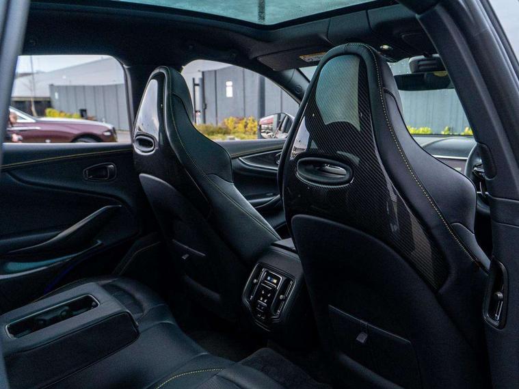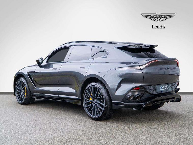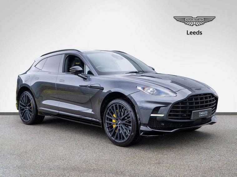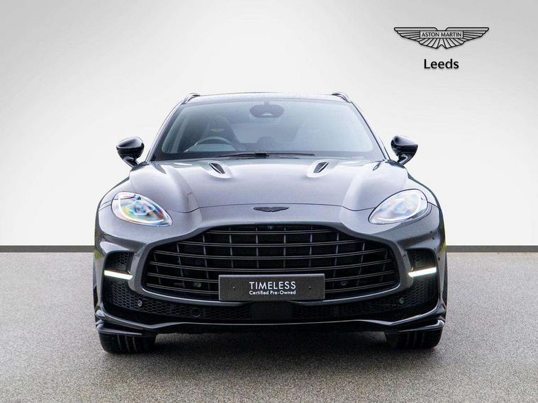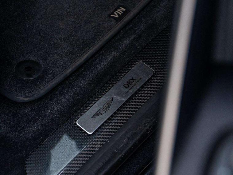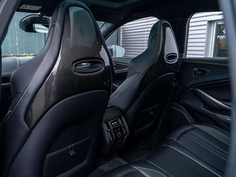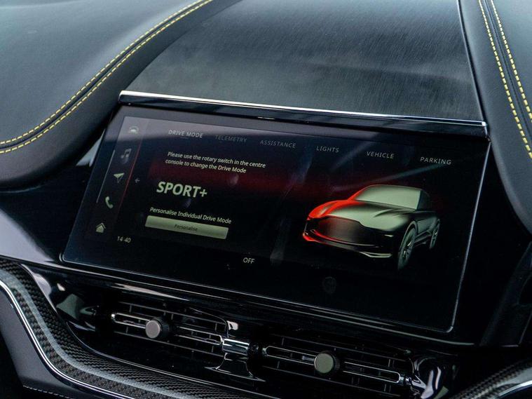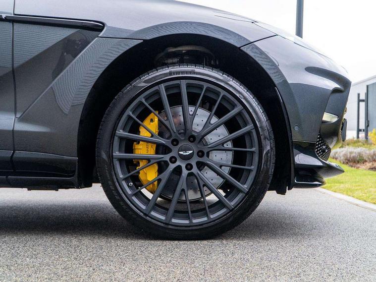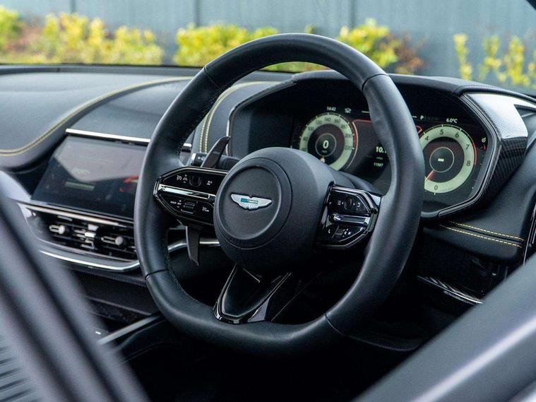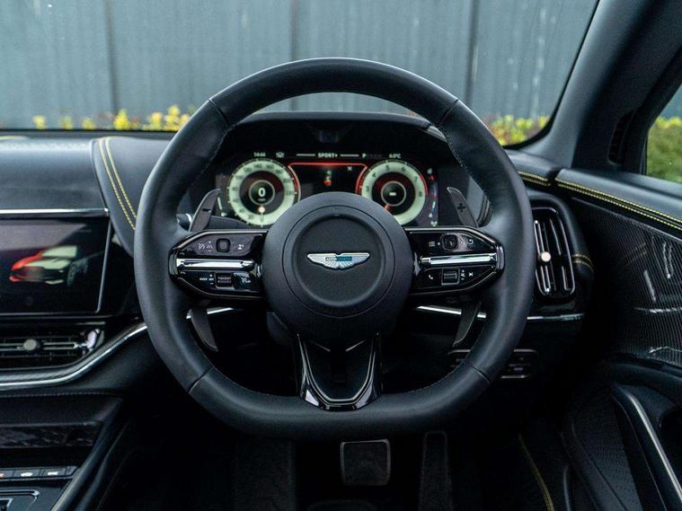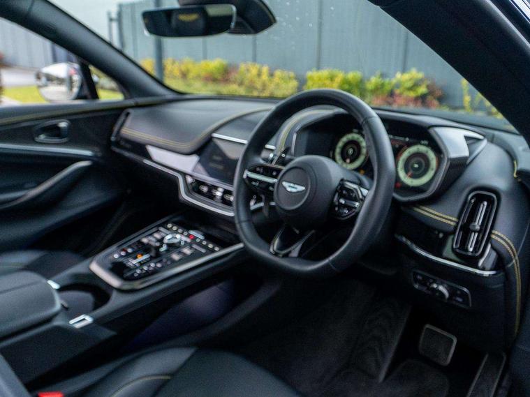10.25" TFT centre display, 12.3" TFT instrument display, Adaptive cruise control, Apple car play/Android Auto, Aston martin satin chrome designer key, Blind spot monitoring, Bluetooth telephone connectivity, Brake pad wear indicator, Drive modes Terrain, Individual, GT, Sport, Sport + including launch control, eCall emergency call system, Electric power assisted steering (EPAS), Forward collision warning, Front parking aid with visual indicator, Inductive phone charger, Infotainment touchpad and dial, Lane change warning, Lane departure warning system (LDW), Lane keep assist, Outside temperature display, Park assist system, Rear crossing traffic warning, Rear parking aid with visual indicator, Rotary dials, Rotary infotainment system interface, Satellite navigation system, SOS emergency call button, Speed limiter, Standard underbonnet, Stop/start system, Surround camera system with deploying rear camera, Traffic sign recognition, Voice control system, 9 speed automatic transmission, Active centre transfer case, Adaptive triple chamber air suspension, All Wheel Drive (AWD), Battery conditioning connector, Electric active roll control, Electric limited slip rear differential, Electronic adaptive damping system, AM/FM radio, Aston martin premium audio, Bluetooth audio streaming, DAB Digital radio, SD card slot, USB port, 3rd brake light, Acoustic laminated front windows, Active rear brake lights, Approach Illumination, Auto dimming interior rear view mirror, Automatic headlights, Automatic high beam - AHB, Bi LED headlights, Body colour side vent, Carbon fibre rear wing lip spoiler, Electric windows, Fixed panoramic glass sunroof, Heat insulating glass, Heated rear window, Horizontal DRL/turn indicator design with larger air intakes and brake cooling grilles, LED centre high mounted stop light, LED daytime running lights, LED rear fog light, Matte black mesh bonnet vents, Power foldback door mirrors, Rain sensing windscreen wipers, Rear bumper design with integrated quarter panel vents, Rear side wing doors, Rear wiper, Sport exhaust, Standard paint protection film, 12V power sockets, 16 way electric front seats with memory, 3 seat bench in 2nd row, 40:20:40 split folding rear seats, Ambient lighting, Anodised aluminium sill plaques with aston martin wings, Automatic climate control, Black loadspace carpet, Courtesy Light, Embossed - Aston martin wings, Front and rear door pockets, Front centre console storage cover, Front head restraints, Gloss black double layer side sills, Glovebox with electric locking, Heated seats, Isofix/I size rear outer, Load rails in load space, Load tie downs in load space, Lower front console storage, Map pocket on front seat storage, Rear head restraints, Single front passenger seat, Soft close doors, Sports plus seats, Stainless steel sill protector in load space, Twin cupholders in front and rear, Twin front centre armrest, Twin sunvisors with illuminated vanity mirrors, 3x3 point rear seatbelts, Airbags - Driver and front passenger and knee, Anti theft locking wheel bolts, Anti-lock braking system (ABS), Auto vehicle hold function, Autonomous emergency braking, Carbon ceramic disc brakes, Door exit warning, EBD - Electronic brakeforce distribution, Electric parking brake (EPB), Emergency brake assist, ESC (Electronic Stability Control), Front thorax airbags/Side curtain airbags, HDC - Hill descent control, High performance braking system, Hill start assist, Intelligent wet brake control, Rear child proof door locks, Rear thorax airbags, RSC - Roll stability control, Seatbelt pre-tensioners, Seatbelt status indicator, Torque vectoring brake, Traction control, Tyre pressure monitoring system, Warning triangle, Alarm/immobiliser, Keyless entry with start/stop button, Remote central locking, Seat perforaton elegant, Seat quilting elegant,