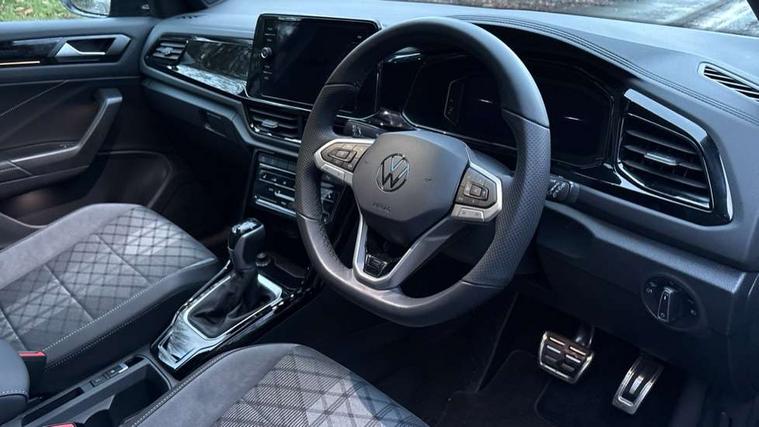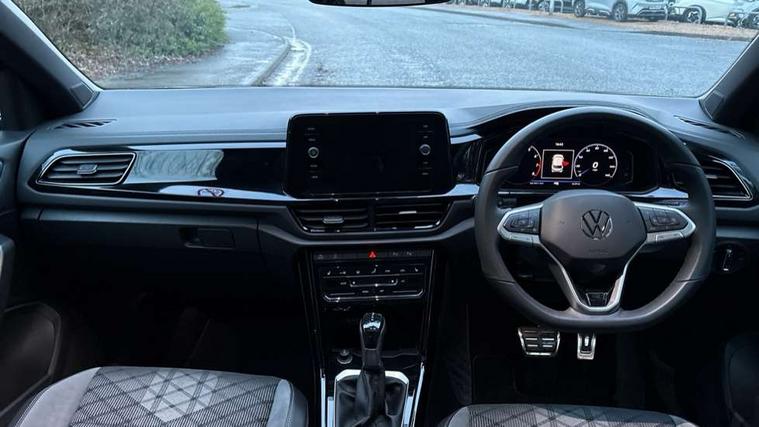 10.25" Digital cockpit pro, Advanced driver attention and drowsiness monitor, Emergency call service, Lane keeping system Lane Assist, Mobile phone interface, Modified key software - reduce switch off time for key status change to Long no motion, Online services, Park assist including front and rear parking sensors, Power assisted speed sensitive steering, Service interval indicator, Tailgate/trunk lid release from outside, Think blue trainer driver tips and journey analysis, Warning sound and light for front seatbelts unfastened, Wireless app connect, Battery regeneration during braking, Rear shock absorption chassis with increased ride height, Start/stop function with battery regeneration, DAB Digital radio, Diversity antenna for FM reception, Front and rear 6 speakers, Music playback - MP3, WMA and AAC files, Premium USB cable in choice of either Apple or Android smartphone compatibility, SD card slot, Simultaneous pairing of 2 compatible mobile devices, Title and cover art display, We Connect and We Connect Plus functionality, Auto dimming interior rear view mirror, Automatic hazard lights activation under emergency braking, Automatic headlight control with LED separate daytime running lights with coming/leaving home function, Dynamic cornering light, Electrically adjustable and heated door mirrors, Extended roof spoiler, Exterior mirrors aspherical on driver side, convex on front passenger side, External USB type C socket and charging sockets, Front windscreen wiper with intermittent wipe and 4 position delay, Heated rear window, Illuminated front grille, IQ LED matrix headlights, LED 3rd brake light, LED rear number plate lights, LED rear tail lights with dynamic turn signal, Light mode for poor weather, rain, fog or snow, Power windows with comfort operation and circuit breaker, R-Line design body coloured bumpers, Rain sensor, Rear exhaust tailpipe, Rear fog light on one side and reversing lights on both sides, Rear side wing doors, Rear wash/wipe with intermittent wipe setting, Remote electrically foldable door mirrors, puddle lights and reverse activated passenger's door mirror, 12V power socket in centre console, 3 rear head restraints, 3 seat bench in 2nd row, 4 load lashing points in luggage compartment, Air care climatronic air conditoning system with active combination filter and 2-zone temperature control, Artvelours cloth upholstery, Black roof lining, Chrome plated radiator grille inserts, air vent surrounds and light switch surrounds, Door and side trim panel with leatherette insert, Drawer under drivers seat, Driver seat height adjust, Driver's seat lumbar support, Front + rear carpet mats, Front centre armrest, Front comfort sports seats, Front cupholders x 2, Front footwell illumination, Front reading light, Front scuff plates with R Line logo, Front seat back storage pockets, Glove compartment door with light, Instrument lighting, white adjustable panel illumination, Interior ambient lighting and surround lighting, Interior light delay, Isofix child seat preparation, Leather gearshift handle, Leather wrapped multifunction steering wheel with paddle shift, Load-through provision with cup holder when folded down ('Unsplit rear seat bench, split folding backrest, with centre armrest), Luggage compartment lighting, Non-folding front passenger seat backrest, Passenger seat height adjuster, Passenger seat lumbar support, Single front passenger seat, Stainless steel pedals, Storage compartment in left and right luggage area, Storage compartment in rear doors, Storage compartments in driver and front passenger doors, Sunvisors with illuminated vanity mirrors, Variable boot floor, height adjustable and removable, Winter pack without heated windscreen washer jets - T-Roc, 3 point height adj front seatbelts + pretensioners, 3 point seatbelts in outer rear with ECE label, ABS, Child locks on rear doors, City emergency braking and pedestrian monitoring, Driver and front passenger airbag with front passenger airbag deactivation, Driver and front passenger safety-optimised head restraints, Drivers seatbelt reminder, Electronic parking brake, Electronic Stability Control (ESC) inc EDL (Electronic Differential Lock) and ASR (Traction Control), Front and rear passengers curtain airbag system including front side airbags, Front disc brakes, Hill start assist, Predictive pedestrian protection, Rear disc brakes, Two tone horn, Tyre pressure loss indicator, Volkswagen roadside assistance, Tool kit, Trims for alloy wheels, Tyre mobility kit including compressor and sealing foam,