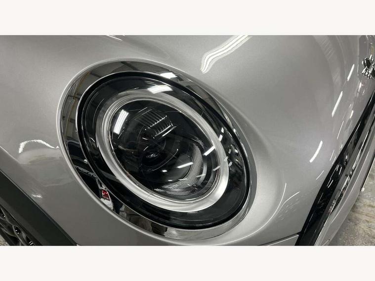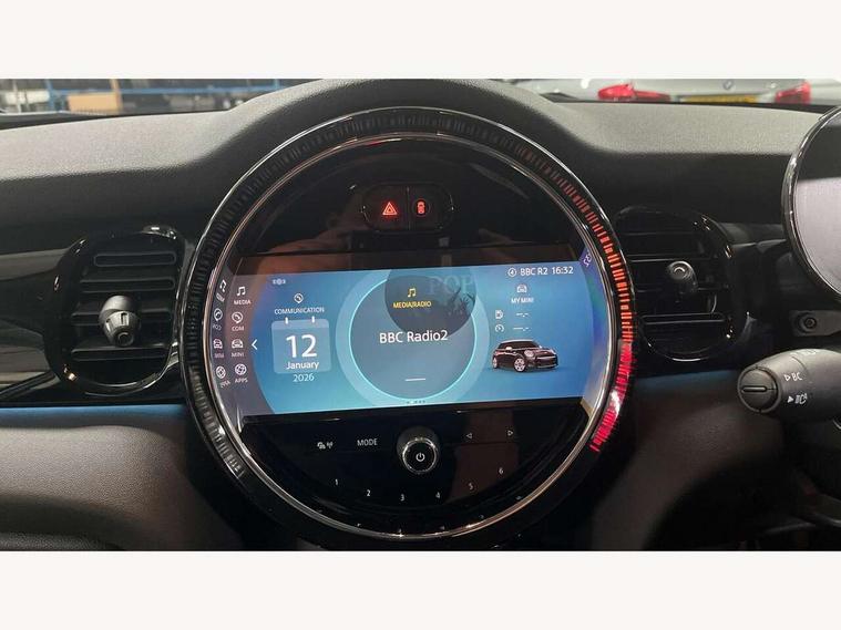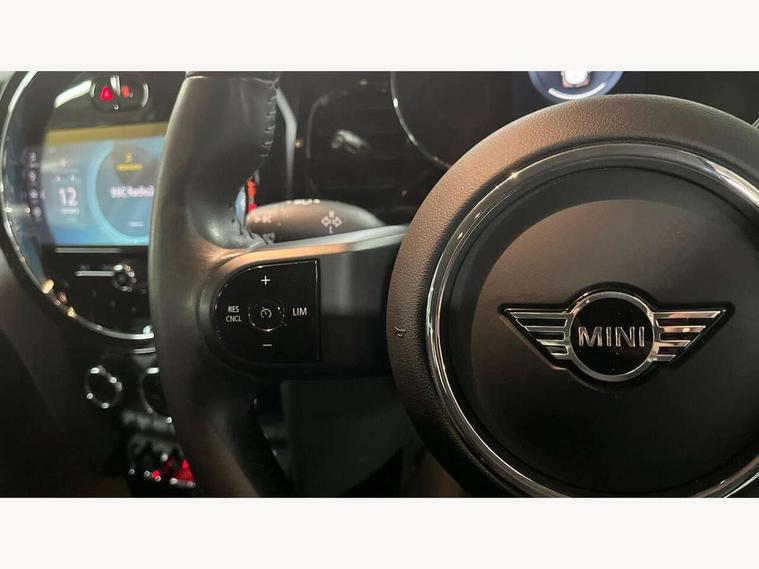 Apple CarPlay, Automatic start/stop function with brake energy recuperation, Compatible mobile phone bluetooth with audio streaming, Electro-mechanical speed dependant steering assistance, Flexible car sharing preparation, Mini E-call, MINI TeleServices, On board computer, Service interval indicator, Double Vanos system, Fully variable valve control, Gear change indicator display, High precision injection, Performance Control, Steptronic transmission with double clutch, 8.8" touchscreen with LED ring, FM tuner and DAB digital radio, 3rd brake light, Automatic headlight activation switch, Body colour fuel filler cap, Chrome border high gloss black slats radiator grille, Dynamic brake lights, Electric front+rear windows, Exhaust tailpipe on left with chrome finisher, Heated rear window, Heated windscreen washer jets, Metal door sill strips with MINI imprint, Model logo Cooper on right of tailgate, Rain sensor window wipers, Rear fog lights, Rear LED lights with union jack design, Rear side wing doors, Rear window wiper, Side scuttle panel with integrated indicator, Sun/heat protection glass, White indicator lenses, 12V Accessory socket in centre console, 3 seat bench in 2nd row, 4 lashing eyes in luggage compartment, 60/40 split folding rear seat, Ambient lighting, Carbon black colour line - Knee roll and door armrest, Chrome interior highlights, Cupholders, Front and rear head restraints, Front and rear isofix with front passenger airbag deactivation, Front and rear velour floor mats, Glove compartment, Height and length steering column adjustment, Interior lighting with 12 different colours across the dashboard, underneath door bezel with illuminated laser-engraved design on central display, Leatherette gearshift lever and handbrake gaiters, LED reading lights, vanity mirror lights, front foot well light and spotlight on front seats, Mechanical seat adjustment - forward/back & backrest for front seats and driver seat height adjust, Multifunction steering wheel, Satellite grey headlining including grab handles and clothes hooks, Single front passenger seat, Sport leather steering wheel with speed limiter and audio/communication controls, Storage compartments in doors, Sunvisors with vanity mirrors, 3 point seatbelts on all five seats, 6 Airbags - front, side, head and seat belt tensioners, Anti-lock braking system (ABS), Child locks on rear doors, DSC - Dynamic Stability Control, Front and rear disc brakes, Hill start assist, Single tone fanfare horn, Tyre pressure monitoring system, Alarm system with tilt sensor, monitoring doors, bonnet interior and tailgate, Electronic vehicle immobiliser, Start/stop toggle with keyless go, Piano black interior trim, Tool kit, Tyre repair kit,