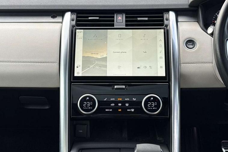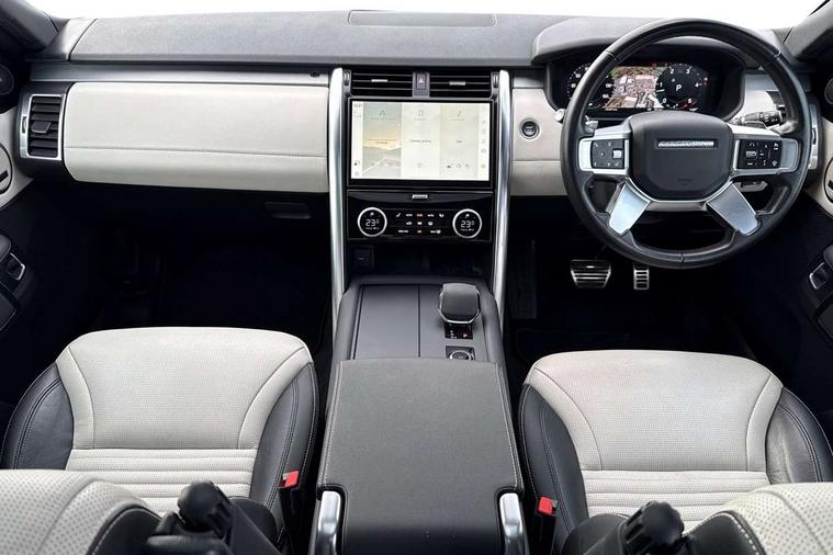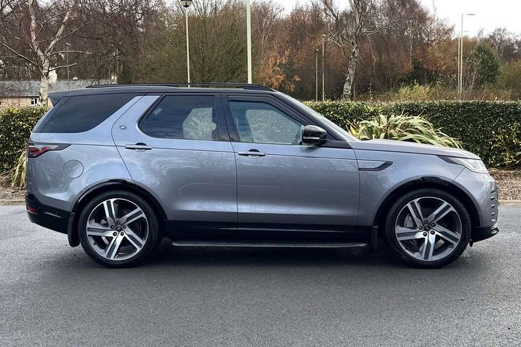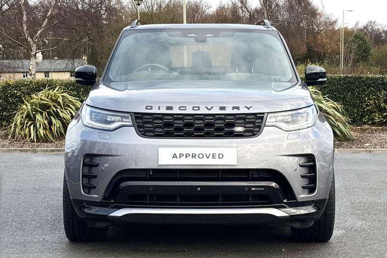 11.4" touchscreen, 3D surround camera, Adaptive cruise control, Android Auto, Apple car play, Blind spot assist, Driver condition monitor, Electric power assisted steering (EPAS), Emergency services call system, Front and rear parking aid, Lane keep assist, Power inner tailgate, Push button start, Rear collision monitor, Rear traffic monitor, Remote, Remote boot release, Service interval indicator, Speed proportional steering, Sportshift selector, Stop/start system, Traffic sign recognition with adaptive speed limiter, Trip computer, Wade Sensing, Adaptive dynamics, Dynamic stability control, Electronic air suspension, Front axle open differential, Digital Audio Broadcast radio-DAB, Dynamic volume control, Pivi pro connected, USB/aux input socket, Acoustic laminated windscreen, Animated directional indicators, Auto dimming interior rear view mirror, Automatic headlight levelling, Automatic headlights, Body colour bumpers, Body colour door handles, Centre high mounted stop light, D300 badge, Electric heated/power fold memory door mirrors with approach lights and auto dimming driver side, Electric windows with one touch open/close and anti-trap, Heated rear window, Heated windscreen, LED darkend tail lights, Metal treadplates with R-Dynamic branding, Narvik black Discovery script, Privacy glass, Puddle lights, Rain sensing windscreen wipers, Rear fog lights, Rear side wing doors, Rear wash/wipe, Trailer stability assist, Variable intermittent wiper, 12V power sockets, 12V USB charging socket in loadspace, 2 seat bench in 3rd row, 3 seat bench in 2nd row, Central hinged twin lidded storage, Ebony morzine headlining, First and second row door bins, Footwell lights, Front and rear 12V with front USB, Front passenger seat isofix location point, In-facia storage, Isofix child seat preparation for front passenger seat, Loadspace cover, Loadspace Hook, Loadspace light, Lockable glovebox, Lower centre console storage, Luggage tie downs in loadspace, Multi function steering wheel, Overhead lighting console, Premium carpet mats, Rear ISOFIX, Shopping bag hook, Single front passenger seat, Storage glovebox, Sunvisors with illuminated vanity mirrors, Third row storage, Twin front cupholders with cover, USB with 12V socket in centre console, Online pack with data plan - Discovery, R-Dynamic black exterior pack - Discovery, 3x3 point rear seatbelts, Anti-lock braking system (ABS), Brake pre-fill technology, Cornering brake control, Curtain airbags, Customer configurable autolock, Driver and passenger airbags, EBD - Electronic brakeforce distribution, Electronic traction control, Emergency brake assist, Emergency braking, ESP, Front side airbags, Gradient acceleration control, Hill descent control, Hill launch assist, Power operated child locks, Rear airbags, Roll stability control, Seat belt reminder, Torque vectoring brake, Tyre pressure monitoring system, Immobiliser, Intrusion sensor, Keyless entry, Locking wheel nuts, Remote central locking, All terrain tyres,