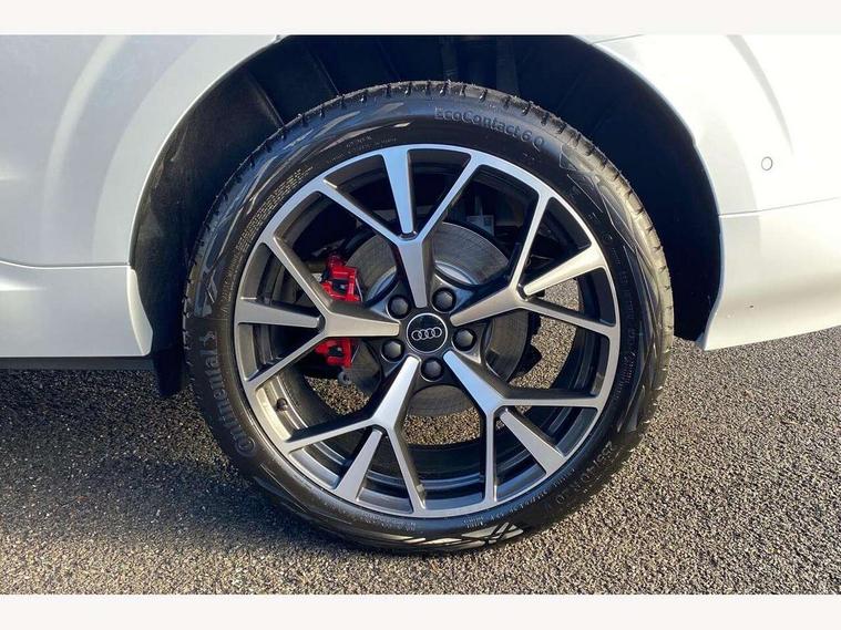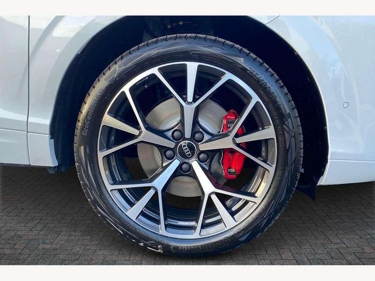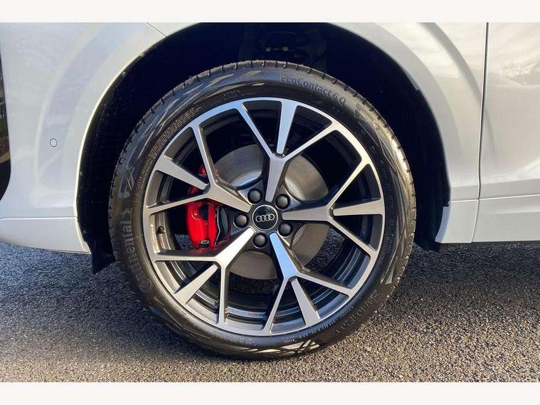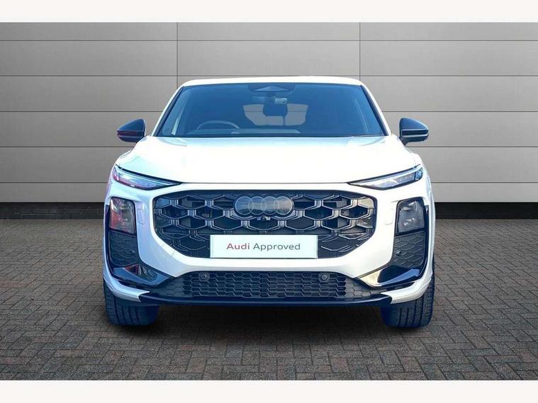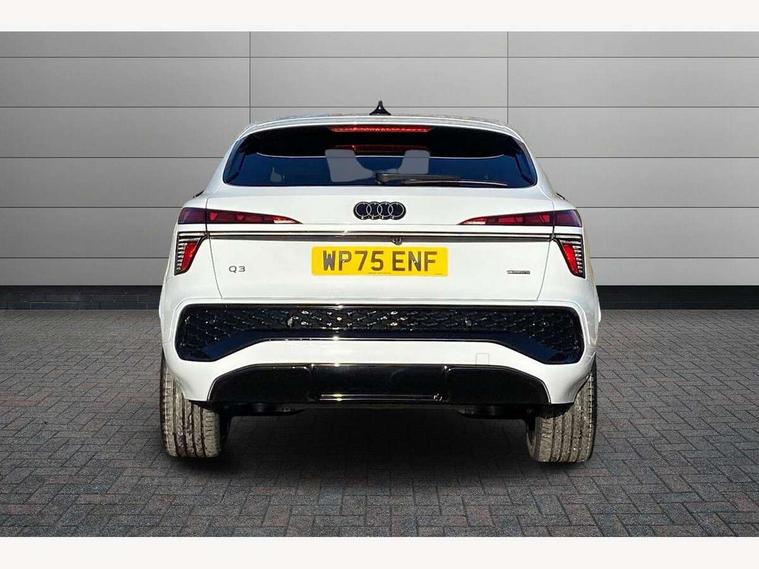Adaptive cruise assist plus, Audi connect emergency call and service, Audi connect remote and controls, Audi drive select (Balanced/individual, efficiency, comfort, dynamic and Offroad+), Audi drive select for suspension with damper control, Audi side assist with exit warning and rear cross traffic assist, Audi virtual cockpit plus - 11.9" display, Bluetooth interface, Camera based traffic sign recognition, Driver attention and fatigue monitor with driver monitoring, Emergency assist, Front cross traffic assist, Head up Display, In-car-office assist, Panoramic curved display with 12.8" MMI navigation plus and MMI touch, Phonebox light with wireless charging, Progressive steering, Projection of a black ice warning, Smartphone interface includes wireless Apple carplay/Android Auto, Start/stop system, Surround view cameras, Swerve assist and turn assist, Traffic sign based speed limiter, Trained parking, Voice control system with natural language interaction, Petrol Particulate Filter, Sound actuator for interior drive sound, Suspension with damping control, 2 USB-C ports with charge and data functions, DAB digital radio module, SONOS premium sound system, USB interfaces with higher charging capacity, Acoustic glass for front door windows, Acoustic windscreen, Advanced dynamic light scenario of the coming home/leaving home function, All weather light, Aluminium window trim, Audi Q3 sportback lettering on the B-pillars, Auto dimming rear view mirror, Automatic dynamic headlight range control, Automatically dimming exterior mirrors with memory function, Contrasting finish in volcano grey, Cornering light, Digital daytime running lights with a choice of 4 digital light signatures, Digital matrix LED headlights, Digital OLED rear lights, Dipped beam, Dynamic indicators, Electrically folding, adjustable and heated door mirrors with integrated LED side indicators and kerb view function for passenger side, Full paint finish, Headlight cleaning system, High resolution main beam, Illuminated door sills with aluminium inserts at the front with S logo, Intersection light, Lane light with side assist and direction indicator, LED third brake light, Loading sill protector in stainless steel, Main beam assist, Manoeuvring light, Motorway light, Orientation light with lane departure warning, Position light, Privacy glass - dark tinted rear window, rear door and side windows, Projection light in the exterior mirrors - Projects a graphic element onto the ground, Q3 badging on the rear, Rain and light sensors, Rear side wing doors, Rear window, rear door windows and rear side windows in clear glass, Rear wiper, Sports bumpers, Turning light, 3 seat bench in 2nd row, 3 spoke heated flat top and bottomed leather multi function sport steering wheel with gear shift paddles and "S" badging, 3-zone deluxe automatic air conditioning, 4 way lumbar support for the front seats - electric with horizontal and vertical adjustment in four directions, Black carpet mats, Black cloth headlining, Electrically adjustable front seats with memory function for driver's side, Front and rear floor mats, Front and rear headrests, Front centre armrest, Heated front seats, Height and reach adjustable steering wheel, Interior storage compartment, Luggage compartment lid, electrically opening and closing, Microfibre upholstery with rhombus pattern and S emblem + front sports seats, Rear seat bench plus with split folded 40:20:40, Single front passenger seat, Stainless steel pedals, Steering wheel operating unit, gloss black, Storage compartment in front centre console, Ambient lighting package pro - Q3, Black styling package - Q3 Sportback, Function pack - Q3, 3 point seat belts in front, with pretensioner and electric height adjustment, 3x3 point rear seatbelts, Convenience key with safelock, Downhill assist, Driver and front passenger airbag with passenger airbag deactivation, Electromechanical parking brake, Electronic stabilisation control including ABS, ASR and EDL, First aid kit with warning triangle and high visibility vests, Front emergency brake assist, Front side airbags with head airbags and interaction airbag, Hill hold assist, i - Size child seat mounting on the front passenger side and i - Size and top tether on the outer rear seats, Power operated child locks, Proactive occupant protection, front, side and rear, Red brake callipers, front and rear, Seatbelt monitoring, Tyre pressure loss indicator, Anti theft wheel bolts, Remote central locking, Thatcham approved category 1 anti theft alarm, Anthracite american whitewood natural inlay, Interior elements in dinamica microfibre, Interior trims in aluminium look, 20" 5-spoke tripod design alloy wheels with gloss turned finish in metallic black, Tool kit and Jack, Tyre repair kit,