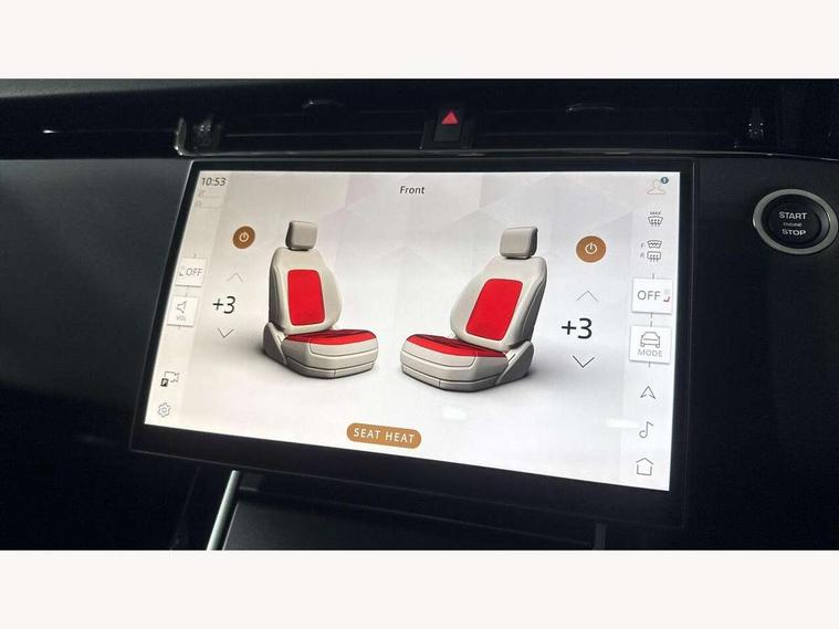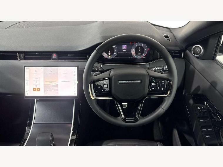 11.4" touch screen, 3D 360 degree surround camera with wade sensing, Adaptive cruise control, Android Auto, Apple car play, Blind spot assist, Bluetooth connectivity, Brake pad wear indicator warning light, Driver condition monitor, eCall emergency system, Eco mode, Electronic power assisted steering (EPAS), Front and rear parking sensors with auto brake, InControl remote, Interactive driver display, Land Rover InControl apps, Lane keep assist, Pivi pro connected includes diamond pivi variant, smart settings, connected navigation pro, nuance speech licence, Powered tailgate/boot lid, Rear collision monitor, Rear traffic monitor, Tailgate, Traffic sign recognition with adaptive speed limiter, Voice control system, Wireless device charging, All terrain progress control, Diesel exhaust fluid (DEF) large tank, Efficient Driveline, Large fuel tank, Terrain Response 2, Digital Audio Broadcast radio-DAB, Steering wheel mounted controls, Acoustic laminated windscreen, Auto headlights, Auto high beam assist, Automatic headlight levelling, Electric windows with one touch open/close and anti trap, Flush deployable exterior door handles, Front and rear recovery eyes, Heated rear window with timer, Heated washer jets, Heated windscreen, LED headlights with signature DRL and LED tail Lights, Power fold, auto-dimming, heated door mirrors with approach lights and auto dimming driver side, Rain sensing windscreen wipers, Rear animated directional indicators, Rear fog lights, Rear side wing doors, Rear wiper, Side repeater indicators in mirror, Tailgate spoiler, Third brake light, Winter wiper park position, 12 way driver memory and 10 way passenger electric front seats with 2 way manual headrest + 4 way lumbar support, 40:20:40 split folding rear seats with centre headrest and armrest, Ambient interior lighting, Bright metal pedals, Carpet mats, Chrome tread plates with range rover branding Includes stainless steel loadspace scuff plate with etched graphic, Customer configurable single point entry, Front and rear cupholders, Heated front seats, Heated steering wheel, Isofix system on outer rear seats, Manually adjustable steering column, Overhead lighting console, Overhead stowage for sunglasses, Passive front head restraints, Rear air vents, Rear head restraints, Satin chrome gearshift paddles, SE Grained leather upholstery, Single passenger seat, Standard steering wheel with Moonlight Bezel, Sunvisors with illuminated vanity mirrors, Twin sliding front centre armrest, Power socket pack 2 - Evoque, 3 rear 3 point seatbelts, Anti-lock braking system (ABS), Brake hold function, Customer configurable autolock, DSC - Dynamic Stability Control, Electronic brake force distribution, Electronic parking brake, Electronic traction control, Emergency braking, Front and rear seatbelt reminder, Hill descent control, Hill launch assist, Low traction launch, Occupant protection assist, Passenger seat occupant detector, Power operated child locks, Roll stability control, Six airbags - Driver and passenger airbags/driver knee airbag/front side airbag and curtain airbags, Torque vectoring brake, Tyre pressure monitoring system, Alarm, Immobiliser, Intrusion sensor, Keyless entry, Locking wheel nuts, All season tyres,