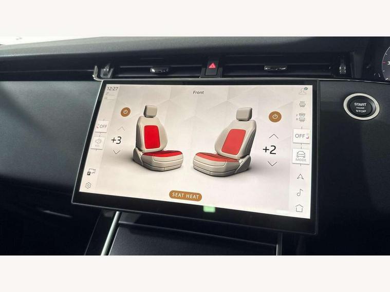 11.4" touch screen, 3D 360 degree surround camera with wade sensing, Adaptive cruise control, Android Auto, Apple car play, Blind spot assist, Bluetooth connectivity, Brake pad wear indicator warning light, Driver condition monitor, eCall emergency system, Eco mode, Electronic power assisted steering (EPAS), Front and rear parking sensors with auto brake, InControl remote, Interactive driver display, Land Rover InControl apps, Lane keep assist, Pivi pro connected includes diamond pivi variant, smart settings, connected navigation pro, nuance speech licence, Powered tailgate/boot lid, Rear collision monitor, Rear traffic monitor, Tailgate, Traffic sign recognition with adaptive speed limiter, Voice control system, Wireless device charging, All terrain progress control, Diesel exhaust fluid (DEF) large tank, Efficient Driveline, Large fuel tank, Terrain Response 2, Digital Audio Broadcast radio-DAB, Steering wheel mounted controls, Acoustic laminated windscreen, Auto headlights, Auto high beam assist, Automatic headlight levelling, Electric windows with one touch open/close and anti trap, Flush deployable exterior door handles, Front and rear recovery eyes, Heated rear window with timer, Heated washer jets, Heated windscreen, LED headlights with signature DRL and LED tail Lights, Power fold, auto-dimming, heated door mirrors with approach lights and auto dimming driver side, Rain sensing windscreen wipers, Rear animated directional indicators, Rear fog lights, Rear side wing doors, Rear wiper, Side repeater indicators in mirror, Tailgate spoiler, Third brake light, Winter wiper park position, 12 way driver memory and 10 way passenger electric front seats with 2 way manual headrest + 4 way lumbar support, 40:20:40 split folding rear seats with centre headrest and armrest, Ambient interior lighting, Bright metal pedals, Carpet mats, Chrome tread plates with range rover branding Includes stainless steel loadspace scuff plate with etched graphic, Customer configurable single point entry, Front and rear cupholders, Heated front seats, Heated steering wheel, Isofix system on outer rear seats, Manually adjustable steering column, Overhead lighting console, Overhead stowage for sunglasses, Passive front head restraints, Rear air vents, Rear head restraints, Satin chrome gearshift paddles, SE Grained leather upholstery, Single passenger seat, Standard steering wheel with Moonlight Bezel, Sunvisors with illuminated vanity mirrors, Twin sliding front centre armrest, Power socket pack 2 - Evoque, 3 rear 3 point seatbelts, Anti-lock braking system (ABS), Brake hold function, Customer configurable autolock, DSC - Dynamic Stability Control, Electronic brake force distribution, Electronic parking brake, Electronic traction control, Emergency braking, Front and rear seatbelt reminder, Hill descent control, Hill launch assist, Low traction launch, Occupant protection assist, Passenger seat occupant detector, Power operated child locks, Roll stability control, Six airbags - Driver and passenger airbags/driver knee airbag/front side airbag and curtain airbags, Torque vectoring brake, Tyre pressure monitoring system, Alarm, Immobiliser, Intrusion sensor, Keyless entry, Locking wheel nuts, All season tyres,
