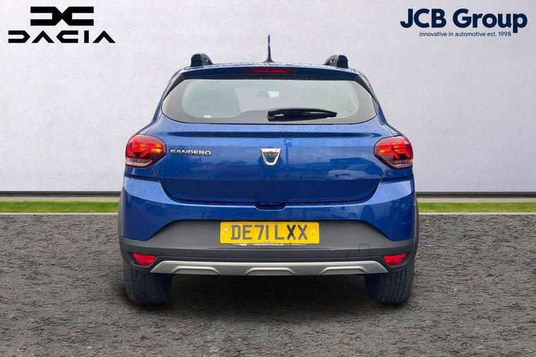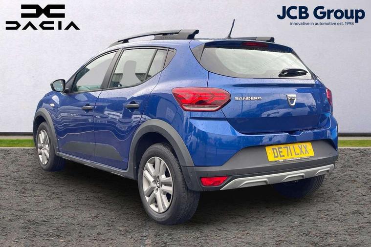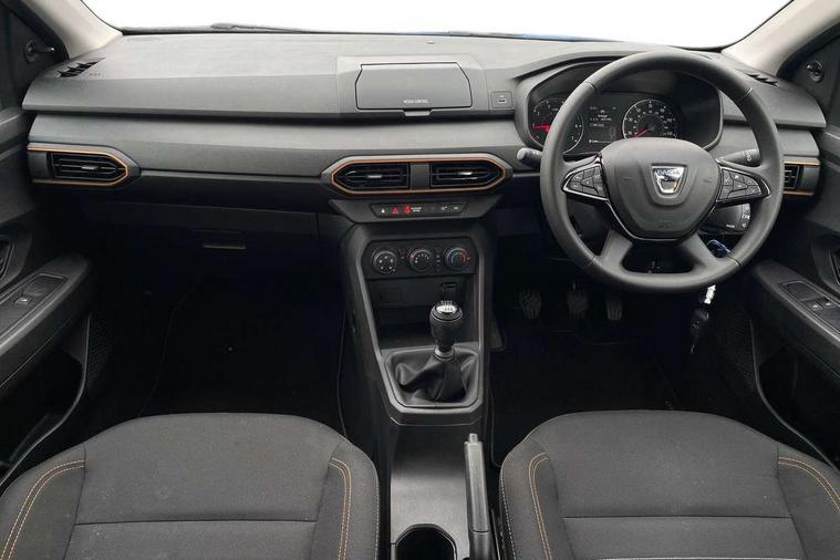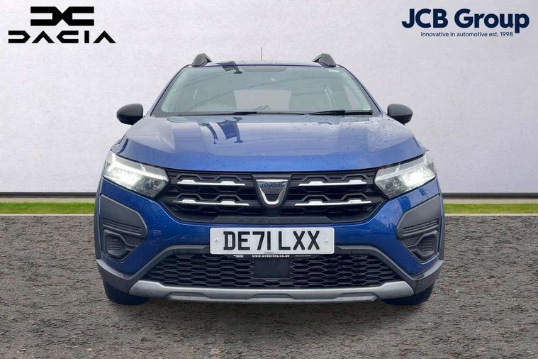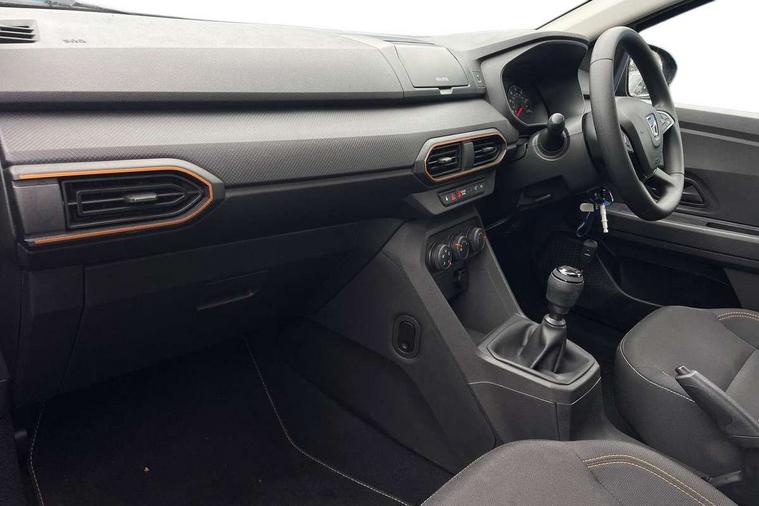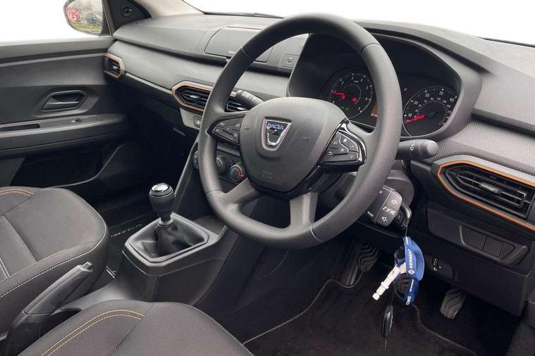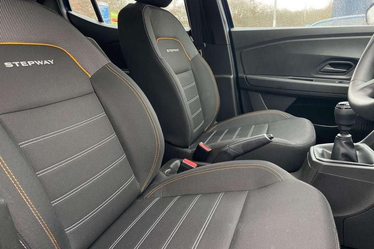 3.5" TFT instrument panel with on-board computer, Cruise control with speed limiter, eCall emergency call system, Eco mode, Electric power assisted steering, Rev counter, Stop/start system, Media Control - DAB Radio with display on instrument panel, Bluetooth, 2 Speakers, USB connection for data transfer and charging, USB socket, 3 speed windscreen wipers, Auto lighting, Black door handles, Black door mirrors, Black longitudinal roof bars, Black radiator grille, Body coloured bumpers, Front electric windows, Heated rear window, High level third brake light, LED automatic daytime running lights, LED Y-shape Dacia signature lighting, Manually adjustable door mirrors, Rear manual windows, Rear wash/wipe, Stepway inscription on radiator grille and roof bars, Tinted windows, 1/3 to 2/3 split folding rear seats, 12 volt front socket, 3 height adjustable rear headrests, Black interior door handles, Copper orange air vents, Fabric upholstery, Fixed smartphone holder on dashboard, Front armrest, Gear shift indicator, Height adjustable driver seat, Height adjustable front headrests, Height/depth adjustable steering wheel, Isofix points for child seats in both outer rear seats, Manual air conditioning, Steering wheel controls, 3x3 point rear seatbelts, ABS and Emergency brake assist, Automatic emergency braking system, Child locks on rear doors, Door open warning, Driver airbag, ESC (Electronic Stability Control), ESP + Hill Start Assist, Front curtain airbags, Front seatbelt pretensioners, Front side airbags, Height adjustable front seatbelts, Passenger airbag, Seatbelt reminder for driver and front passenger, Tyre pressure monitor, Automatic central locking, Immobiliser, Remote central locking, 16" Flex wheels with full wheel cap,
