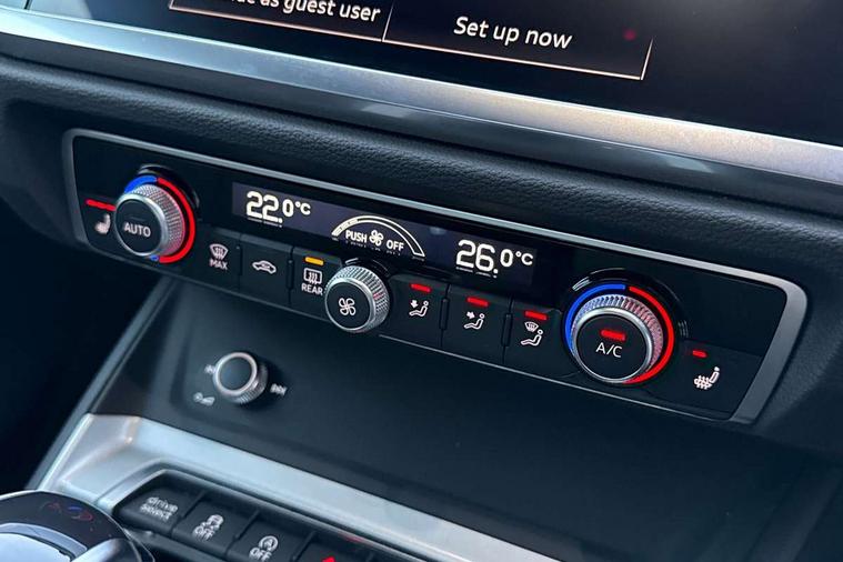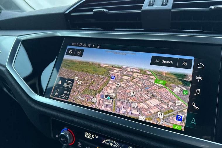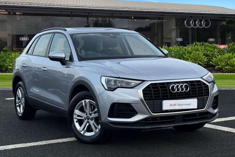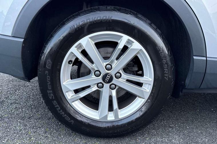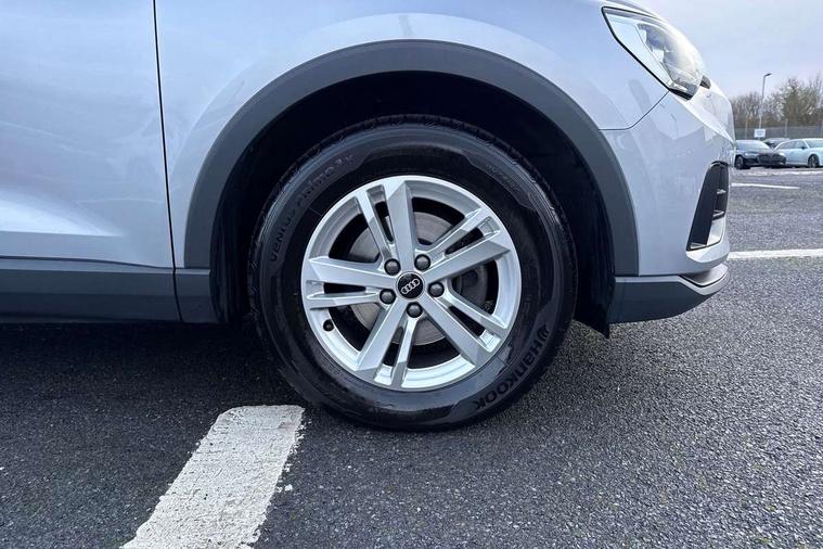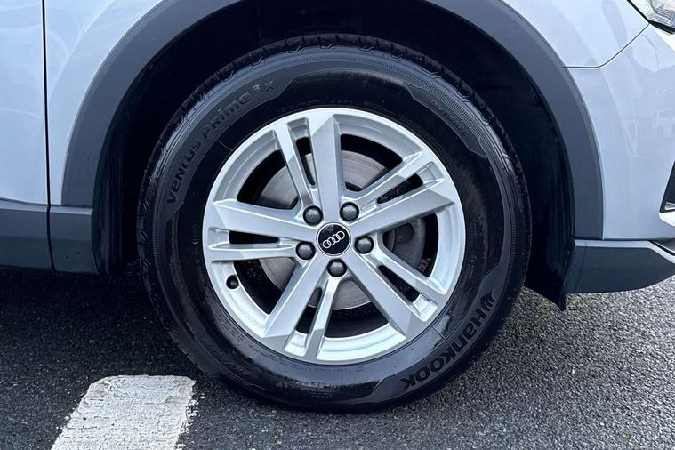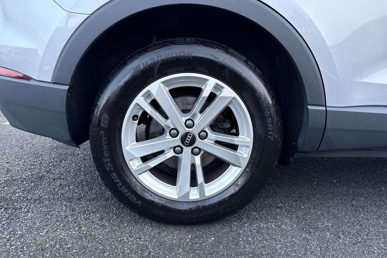 Amazon alexa Integration, Audi drive select, Audi lane departure warning, Audi smartphone interface includes wireless Apple carplay/Android Auto, Audi Virtual Cockpit - 10.25" display, Bluetooth interface, Camera based traffic sign recognition, Legal emergency call, MMI Navigation Plus with high resolution 10.1 inch touchscreen colour display, Power operated tailgate, Progressive steering, Service interval indicator, Start stop system with recuperation, Voice control system with natural language interaction, Diesel particulate filter, Standard suspension, 2 USB-C ports with charge and data functions, 6 passive loudspeakers, DAB digital radio module, Acoustic windscreen, Auto dimming frameless rear view mirror, Black roof rails, Body colour door mirrors, Diffuser in grained anthracite, Electrically folding, adjustable and heated door mirrors with integrated LED side indicators and kerb view function for passenger side, Exterior bumper with wheel arch trims and side sill trims in grained black matt, Front and rear electric windows, Grained radiator protective grille, Halogen rear lights, LED headlights with LED daytime running lights, Rain and light sensors, Rear side wing doors, Rear wiper, Third brake light, Variable front intermittent wipers, 12V socket in rear centre console, 3 seat bench in 2nd row, 3 spoke multi-function leather steering wheel, 40:20:40 folding with manual adjustment for 60:40 forwards/backwards position and backrest angle, Dual zone electronic climate control, Front and rear floor mats, Front and rear headrests, Front and rear roof module including reading lights, Front centre armrest, Glove compartment lighting, Height and reach adjustable steering wheel, ISOFIX child seat mounting for front passenger with airbag deactivation and outer rear seat including top tether attachment point for outer rear seats, Luggage compartment light, Lunar silver cloth headlining, Manual front seats with height adjustment, Single front passenger seat, Stainless steel luggage compartment sill finisher, Non smoking pack - Q3, 3x3 point rear seatbelts, 6 airbags - Driver, front passenger, curtain and side windows, Audi pre-sense front with pedestrain and cyclist recognition, Electrically operated child locks on rear doors, Electromechanical parking brake, Electronic stabilisation control including ABS, ASR and EDL, Front seatbelt reminder, Hill descent control, Hill hold assist, Pre sense basic, Seatbelt monitoring, Tyre pressure warning, Warning triangle and first aid kit, Anti theft alarm, Anti theft wheel bolts, Immobiliser, Remote central locking, Detail dashboard around MMI touch colour display in glass look, black with surround in aluminium look, Micrometallic silver inlay, 17" 5 twin spoke design alloy wheels,