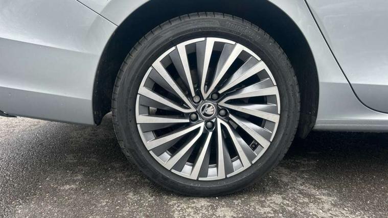 13" touchscreen display with satellite navigation, 4x USB-C ports (2x in front centre console and 2x in rear) (45W), Adaptive cruise control with speed assist, lane assist plus and traffic tram assist, Blind spot detection with door exit warning, Bluetooth system, CareConnect and Emergency Call, ChatGPT functionality, Drive mode selection, Driver fatigue sensor, Electrically operated boot with virtual pedal, Front assist with extended predictive pedestrian protection, Front cross traffic assist, PAS, Quick start all heating software functionality, Rear view camera with washer, Remote park assist, Stop/start engine system, Traffic sign recognition, Turn assist with evasive assistance, Virtual Cockpit - 10.25" digital display, Voice control system, Wireless charging for one smartphone (15W) with cooling function, Wireless smartlink apple carplay, SmartLink+ android auto, Dynamic chassis control plus with progressive dynamic steering, Canton sound system - 14+1 speaker, DAB Digital radio, Display cleaner, FM radio connection, Web radio connection, Acoustic side windows and interior noise suppression, Backdrop lighting, Body colour door handles, Body coloured door mirrors, Chrome roof rails, Chrome window surround, Dynamic range control with poor weather light and integrated fog light, Electrically adjustable, heated, folding and driver side auto-dimming door mirrors with memory function, integrated indicators and logo projection, Frameless auto-dimming rear view mirror with USB-C, Front windscreen with heat-insulating glass, Ice scraper in fuel tank cap, LED 3rd brake light, Light assist with High beam control, Light assistant (coming/leaving home/tunnel light), Privacy glass, Rear fog lights (x2), Rear roof spoiler, Rear side wing doors, Rear windscreen wiper, Tow bar preparation, Unique dark chrome design logo on alloy wheels, Unique dark chrome grille surround with dark chrome rib elements, plus dark chrome rear diffuser strip, Windscreen wipers with rain sensor, 12V socket 1x centre console 1x boot, 12V socket and 2x cargo elements in boot, 14-way electrically adjustable, memory, front seats with 4-way pneumatic lumbar support, and extendable thigh support with smart comfort entry aid, 2 spoke heated multifunction steering wheel with DSG paddles, 3 seat bench in 2nd row, 4x foldable bag hooks in boot, 60:40 Split folding rear seats, Advanced massage function for front seats, Bottle holders in the front doors 1.5 litre bottle and rear 1.5 litre bottle, Cup holder in front with easy open mat, Front and rear footwell illumination, Front armrest with storage box, Front sports comfort seats, Heated and ventilated front seats, Height adjustable front and rear head restraints, Height adjustable front passenger seat, Illuminated glovebox, Interior lights with control switches, Isofix child seat fittings in outer rear and front passenger seats, LED front and rear reading lights, Multi colour ambient lighting, Single front passenger seat, Skoda lettering on steering wheel, Storage pockets on back of front seats, Sun visors with illuminated vanity mirrors, Ticket holder on A Pillar, Tri zone climate control, Umbrella in driver's door, Light and view package - Superb, Parking package - Superb, Transport package - Superb Estate, Winter package - Superb, 3 rear seatbelts, 8 Airbags - Front driver and passenger, front side driver and passenger, centre, curtain front and rear, drivers knee, Crew protect assist, Driver and passenger seatbelts with warning light, Electronic parking brake, ESC including ABS, EBV, MSR, ASR, EDS, HBA, DSR, RBS, CBC, multi-collision brake (MKB) and Auto hold, Hill hold assist, Power operated child lock in rear doors, Alarm with interior monitoring tilt sensor and back up horn, Backrest remote release from trunk, Electronic engine immobiliser, Keyless start/stop, Remote central locking with SAFE system, Third key, Walk away locking, Decorative front door sills, Tyre repair kit,