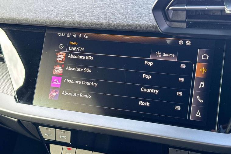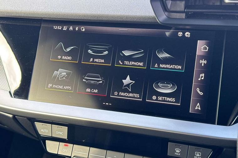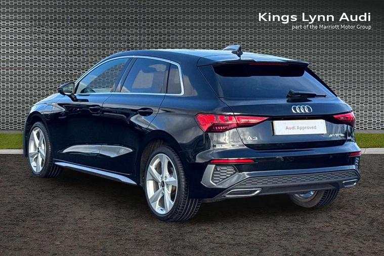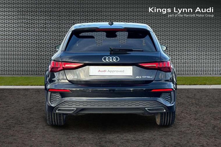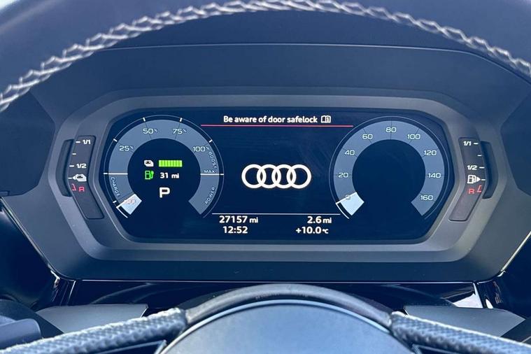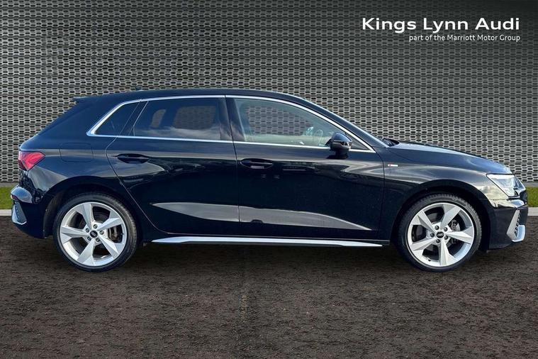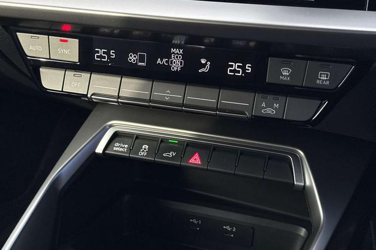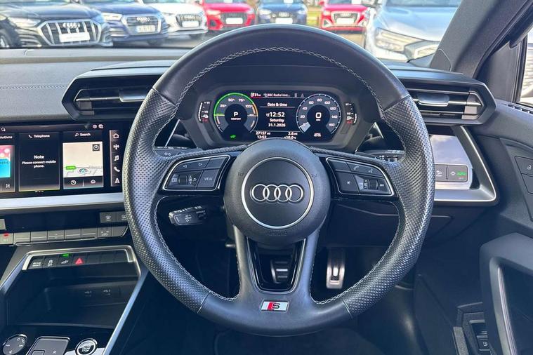 Audi drive select (Auto, Comfort, Dynamic, Efficiency and Individual), Audi smartphone interface, Audi Virtual Cockpit - 10.25" digital and colour instrument cluster, Automatic start/stop system with recuperation, Bluetooth interface, Collision avoidance assistant, e-Call (emergency call), Electromechanical power speed sensitive steering, Lane departure warning system, MMI Navigation Plus with high resolution 10.1" colour touch screen display, Service indicator, Trip computer, Voice control system with natural language interaction, 3 pin 10 amp domestic charging cable, 3.6 kw On-board charger, Standard suspension, Type 2 mode 3 32 amp charging cable, Type 2 socket for AC charging, 2xUSB-C connection with data and charging functions, 6 passive loudspeakers, DAB Digital radio, 3rd brake light, Acoustic glass windscreen, Aluminium window trim, Auto dimming frameless rear view mirror, Electrically adjustable/heated/folding/auto dimming door mirrors with integrated LED indications + kerb view function for passenger side, Front electric windows, Illuminated aluminium inserts front door sills with S logo, LED daytime running lights, LED headlights with LED rear lights and dynamic rear indicators, Light and rain sensors, Privacy glass - dark tinted rear window, rear door and side windows, Rear electric windows, Rear side air outlets in grained matt black, Rear side wing doors, Rear wiper, S line bumpers, S roof spoiler, 12V socket and storage compartment in front centre console, 3 seat bench in 2nd row, 40/20/40 split folding rear seat bench with cupholder, Black cloth headlining, Dual zone electronic climate control, Front and rear centre armrest in leather, Front and rear headrests, Front/rear floor mats, Height and reach adjustable steering wheel, Illuminated vanity mirror, Interior lighting - glove compartment light and right hand side, Luggage compartment floor covering, Manual boot compartment lid, Manually adjustable front seats, Seat side bolsters, Single front passenger seat, Stainless steel pedals and front footrest in black, Twin leather upholstery with front sports seats S embossed logo, Aluminium interior elements pack - A3 Sportback, LED interior lighting pack - A3 Sportback, S line styling pack - A3 Sportback, 3x3 point rear seat belts, Audi pre sense front, Driver and front passenger airbag with passenger airbag deactivation, Electronic Stabilisation Control (ESC) including ABS, ASR and EDL, First aid kit with warning triangle and 2 safety vests, Front side airbags with head airbags and interaction airbag, Pre-sense front with pedestrian and cyclist detection, Seatbelt monitoring, Tyre pressure loss indicator, Anti theft alarm, Anti-theft wheel bolts, Electronically operated child lock, Immobiliser, Remote control central locking, Accent surfaces in the dashboard and centre console in platinum grey silk effect paint finish, Dark spectrum aluminium inlays, Tool kit, Tyre repair kit,