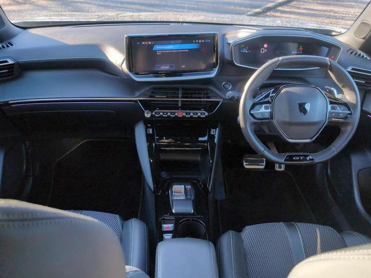 Bluetooth telephone facility, Driver attention warning, E-call, Exterior temperature indicator with ice warning, Multi function trip computer, PEUGEOT i-Cockpit with compact steering wheel, PEUGEOT i-Cockpit with configurable 3D headup instrument panel, PEUGEOT SOS and assistance, Smartphone charging plate, Speed limit recognition and recommendation, Wireless mirror screen with mirror link, apple carplay and android auto, Petrol Particulate Filter, 1x USB-C socket in rear and 1x USB-A socket in rear, 2 USB-C ports in the front, 6 speakers radio with mp3 compatible, DAB Radio (Digital Audio Broadcasting), Voice recognition for radio, navigation and telephony features, 2 X Rear number plate lights, Aluminium door sill scuff plates with peugeot lettering, Automatic hazard light activation upon heavy brake application, Black diamond roof, Black front wing trim with gloss black detail and GT badging, Body coloured exterior door handles, Dark tinted rear side and tailgate windows, Diamond black mirror shells, Diamond black rear roof spoiler, Electric, heated, and power folding door mirrors, Frameless electrochrome interior rear view mirror, Front bumper - Meteor grey lower trim, Full LED headlights with smartbeam assist with auto height adjustment, Gloss black finish on B pillar, Gloss black rear cluster connecting strip, Gloss black roof bars, Gloss black window surround, GT model designation badging on tailgate, Headlights left on audible warning, LED daytime running lights with distinctive 3 claw signature, LED side indicator lights integrated into door mirrors, LED third brake light, Model designation badges front and rear, One touch electric front/rear windows with pinch protection, Radiator grille - body coloured vertical chequered grille, Radiator grille - gloss black top edge trim, Rear full LED 3D peugeot signature claw effect lights with daylight function, Rear reversing lights, Rear side wing doors, Rear windscreen wiper triggered automatically in reverse gear, Tailgate with heated rear windscreen and wiper blade, Twin chromed exhaust pipes, Wheel arch extensions, 1/3 to 2/3 split folding rear seats, 12V socket, 3 seat bench in 2nd row, 8 Colour personalisable ambient lighting, Automatic air conditioning with pollen and active carbon filter, Central front armrest with storage compartment, Driver and front passenger sport seats, Electric power steering with reach and rake adjustable steering column, Front and rear carpet mats in black, Front LED interior light with 2 reading spotlights and rear interior light with timer, Front passenger seat manual adjustment - height, longitudinal and back rest angle, High centre console, ISOFIX child seat mounting points on passenger seat, Mistral full-grain perforated leather steering wheel with Lime Green stitch detail and satin chrome 'GT' emblem, Multifunction steering wheel, Piano keys: Gloss black and chrome toggle switches to access main functions of the vehicle and touchscreen functions, Roof lining - Mistral black, Seatbelt unfastened on the move audible and visual alert for front and rear seats, Single front passenger seat, Two position modular boot floor, Visibility pack - 2008, 2x 2nd row ISOFIX child seat mountings, ABS (Anti-lock Braking System) with EBD (Electronic Brakeforce Distribution) and EBA (Emergency Braking Assistance), Active safety brake with night function/cyclists/pedestrians, Adaptive driver and front passenger airbags with passenger airbag deactivation function, Child locking functionality on rear doors, Driver/front passenger side airbags, Electric parking brake, ESP (Electronic Stability Program) + Hill Start Assist, Front and rear curtain airbags, Front and rear disc brakes, Front and rear three-point retractable seatbelts, with force limiters, Front optimised safety headrests and rear retractable headrests (x3), height adjustable, Tyre pressure sensor, Automatic door locking when moving off, Deadlocks, Electronic code immobiliser, Peugeot Open and Go (keyless entry and push button start), Thatcham category 1 alarm, Carbon effect Dashboard, front and rear door panel finish,
