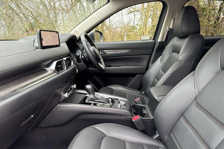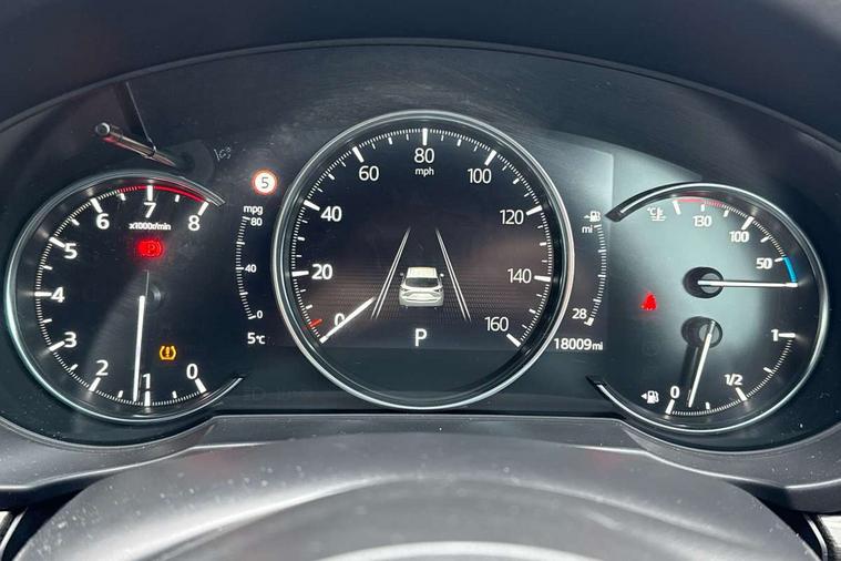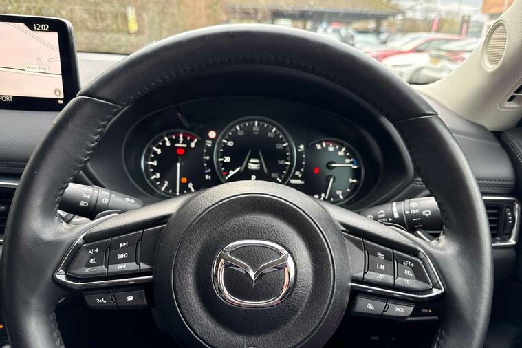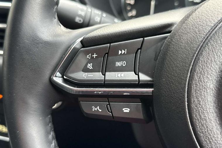 10.25" display with Mazda Connect infotainment, 7" colour TFT display, Advanced blind spot monitoring, Apple car play/Android Auto, Bluetooth connectivity with voice control, Collision prevention assist, Connected services, Cruising Traffic Support, Drive mode selector, Electric power steering, Emergency stop signalling system, Engine start/stop button, Forward collision warning, Front and rear parking sensors, Integrated navigation system, Intelligent speed assist, Lane departure warning system, Lane keep assist, Radar cruise control with Stop and Go, Reversing camera, Service indicator, Traffic sign recognition (TSR), Trip computer, Windscreen projected colour active driving display (HUD) with memory, i-stop, 2 USB sockets in rear, 2x USB sockets in front, 6 speakers, AM/FM radio, Bluetooth audio streaming, DAB Digital radio, Multimedia Commander including separate volume dial, Steering wheel mounted audio controls, Adaptive front lighting system, Auto dimming rear view mirror, Automatic headlights, Black inlay dashboard panel, Body colour door mirrors, Body colour roof spoiler, Body coloured front and rear black lower bumper mouldings, Bright finish signature wing, Coming/leaving home lighting function, Door mirror integrated indicators, Dual chrome tailpipes, Dusk sensitive headlamps, Electric front/rear windows with one touch auto up/down, Front grille in gloss black finish, Gloss black B and C pillars garnish, High beam assist, Intermittent rear wash/wipe, LED auto levelling, LED daytime running lights, LED front fog lights, LED Headlights, LED third brake light, Power folding and heated door mirrors, Power tilt/slide sunroof, Privacy glass (rear side windows only), Rain sensing front wipers, Rear side wing doors, Satin black side mouldings, Scuff plates, Shark fin antenna, Signature LED rear combination lights, Vinyl with wood grain metal inlay door trim panel, Windscreen wiper de-icer, 12v electrical power outlet, 3 seat bench in 2nd row, 3 stage heated front seats, 40:20:40 Karakuri fold-flat seat system, 6 way electric adjustable passenger seat, 8 way electric driver seat with lumbar support + memory, Cargo room flat floor board with waterproof undertray, Driver seat power slide, recline and height adjustment, Driver, Front passenger and two rear grab handles with coat hooks, Driver/passenger front seatback pockets, Driver/passenger sunvisors + illuminated vanity mirrors (drivers with ticket holder), Dual zone climate control, Folding centre armrest with 2 cup holders, Front and rear door pockets, Front centre storage with two cupholders, Front passenger seat power slide, recline and height adjustment, Heated steering wheel, Humidity sensor, Illuminated glovebox, Interior dome light with integral spotlight, ISOFIX child seat anchorage points attached on outer rear seats, Karakuri tonneau cover, Leather upholstery, Leather wrapped steering wheel and gear knob, Light roof lining, Luggage compartment LED lighting, Luggage compartment power outlet, Paddle shifts, Rear air vents, Rear headrests, Rear seat recline, Roof mounted sunglasses holder, Single front passenger seat, Three height adjustable head restraints, Tilt/height adjustable steering wheel, White interior LED illumination lighting, 3 point front seatbelts with pre-tensioners, 3 rear 3 point seatbelts, ABS, Advanced Smart City Brake Support - SCBS, Child locks on rear doors, Driver and front passenger side airbags, DSTC-Dynamic Stability and Traction Control, Dual front airbags, Electronic brake force distribution, Electronic parking brake with auto hold, ESP, Front and rear curtain airbags, Front passenger airbag deactivation, G-Vectoring control, Hill hold assist, Seatbelt reminder front and rear, Single stage passenger airbags, Smart brake support with forward obstruction warning, Tyre pressure monitoring system, Automatic door locking when moving off, Deadlock, Immobiliser, Power door locks, Remote central locking, Smart keyless entry, Thatcham Cat.1 alarm, 19" diamond cut black alloy wheels, Tyre repair kit,