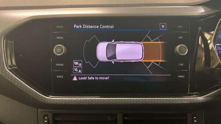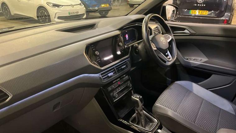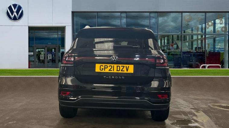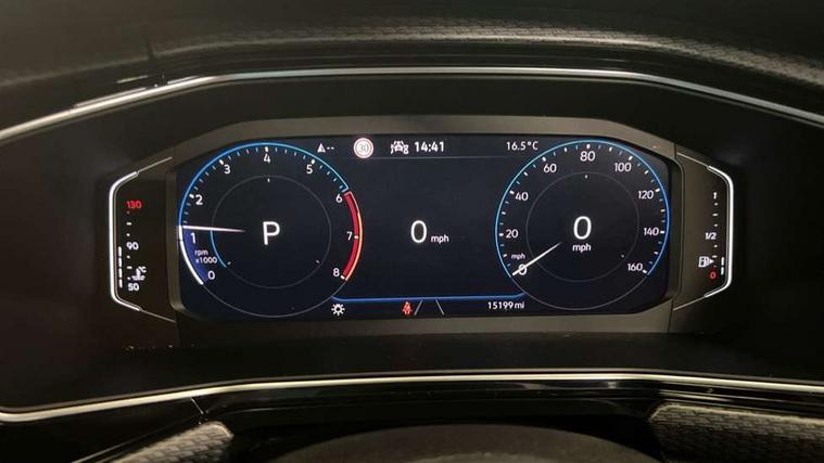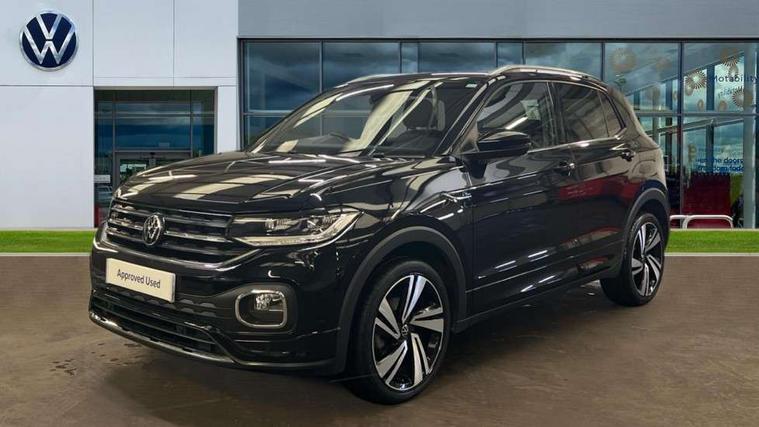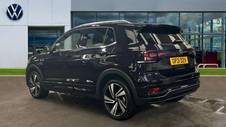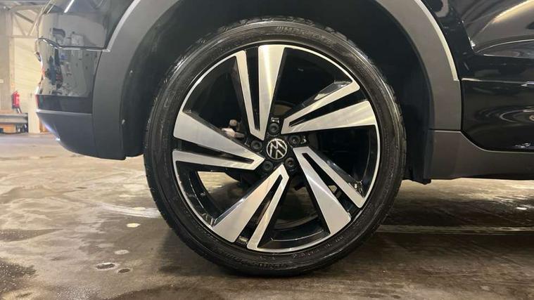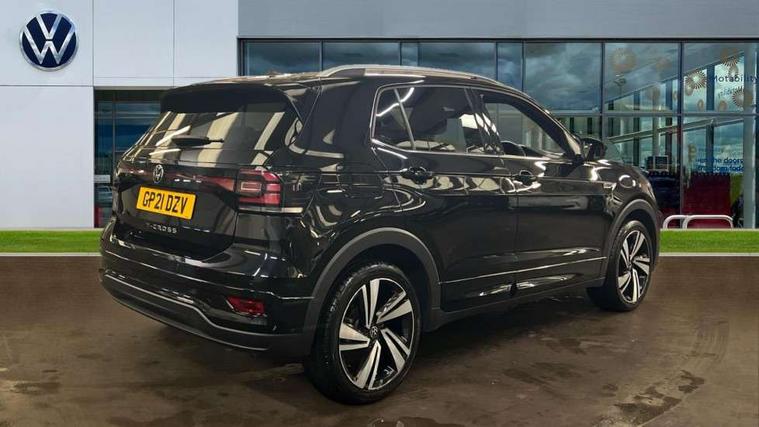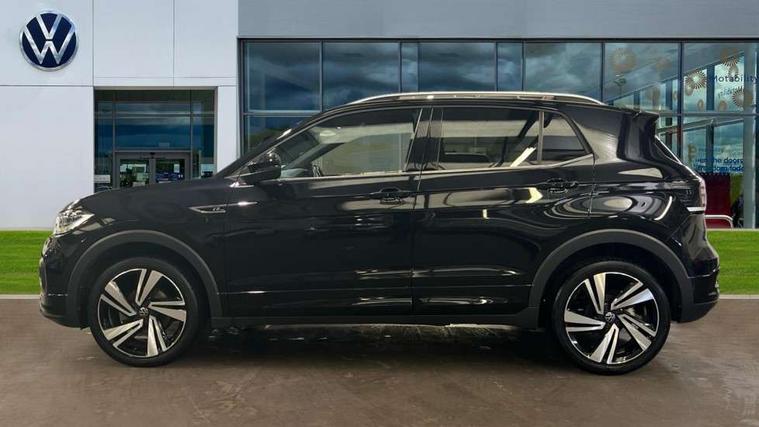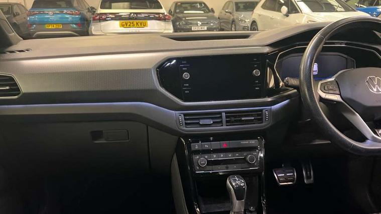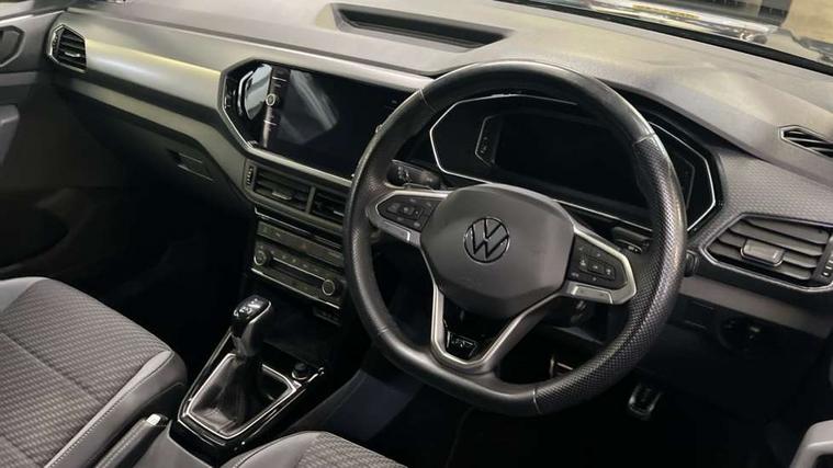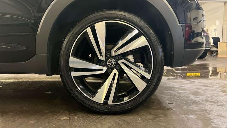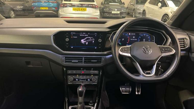'Lights On' Reminder warning buzzer, 2D/3D map view, Adaptive cruise control including front assist, forward collision warning, autonomous emergency braking, speed limiter, Blind spot monitoring, Bluetooth telephone and audio connection for compatible devices, Car information display, Digital Cockpit Pro - Active info display, Driver alert system, eCall emergency call system, Lane assist, Low washer fluid warning light, Multifunction computer with visual gear change recommendation for fuel consumption, Operating permit alteration, Power assisted speed sensitive steering, Speed limit display, Speedo, rev counter, electronic odometer, trip, service interval display, exterior temperature and fuel gauge, Stop/start system, Warning sound and light for doors and tailgate open, Warning sound and light for front seatbelts unfastened, We connect plus preparation, Wireless Car net app connect with Apple CarPlay, combined functionality of Apple CarPlay/Android Auto and MirrorLink, Battery regeneration during braking, Misfuel prevention device, 2x USB connection with USB charging sockets and in rear centre console, DAB Digital radio receiver, Diversity antenna for FM reception, Multi device interface (MDI) with USB connection, Music playback - MP3, WMA and AAC files, Premium USB cable for Apple or Android smartphone compatibility, Simultaneous pairing of 2 compatible mobile devices, SMS Functionality, Three route options - Fast, Short, Eco, Title and cover art display, Automatic hazard lights activation under emergency braking, Body colour door handles, Body colour rear roof spoiler, Body coloured bumpers, Dusk sensor + automatic driving lights, Electrically foldable, adjustable and heated door mirrors with reverse activated kerb view adjustment on passenger's side, Front and rear electric windows, Front fog lights with static cornering function, Galvanised body, Heated rear window, High level 3rd brake light, Lower door sills and door pillars in black, Radiator grille with chrome trim and chrome bezel front fog lamp, Rear fog light on one side, reversing light on both sides, Rear lights incorporating LED technology, Rear tinted glass 65% approx light absorbing from B pillar backwards, Rear window aerial, Rear windscreen washer and wiper with interval delay, Reflectors in all doors, Silver roof rails, Stainless steel door sill protection, Tailgate with integrated roof spoiler, Unique R Line badging, Windscreen wipers/ intermittent wipe + 4 position delay, 12V Accessory socket in centre console, 2 Front and rear reading lights incorporating LED technology, 2 Zone electronic climate control with automatic air recirculation, 3 rear head restraints and 3 rear three point seat belts with ECE label, 60/40 split folding rear seat backrest, Ambient lighting and sourround lighting, Black headlining, Branded points of interest, Brushed stainless steel pedals, Carbon flag cloth upholstery, Drawer under drivers seat, Driver and front passenger sunvisor with vanity mirror, Driver's sunvisor with ticket holder, Dust and pollen filter, Front and rear carpet mats with contrast stitching, Front centre armrest with storage compartment, Front footwell illumination, Front seat back storage pockets, Front seat R Line logo with rear seat backrest, Front sports seat with height and lumbar adjustment, Glovebox, Heating and fresh air system with 4 stage blower, Height/reach adjust steering wheel, Instrument lighting white adjustable panel illumination, Interior light with delay, Isofix child seat preparation for 2 rear child seats, Leather trimmed three spoke multifunction steering wheel with contrast stitching and aluminium inserts with R Line logo, Luggage compartment cover, Luggage compartment lighting, Moveable and foldable Rear bench seat, Scuff plates in door apertures, Steering wheel paddle shift, Storage compartment in drivers and front passengers door, Variable boot floor, R Line styling pack - T-cross, Anti-lock Braking System (ABS) with Hydraulic Brake Assist (HBA), Automatic post collision braking system, Driver and front passenger safety-optimised head restraints, Drivers and Front Passengers airbags with front passengers airbag deactivation switch, ESC with EDL, ASR, EDTC and trailer stabilisation function, Extended and proactive pedestrian protection, Front and rear curtain airbags, Front seat side impact airbags, Height adjustable 3 point automatic front seatbelts with pretensioners, Hill start assist, Pre crash preventive occupant protection, Rigid safety cell with front and rear crumple zones, Single torn horn, Tyre pressure loss indicator, Volkswagen roadside assistance, Alarm with interior protection and deactivation via infotainment system, Child security locks in rear doors, Electronic engine immobiliser, Remote tailgate unlocking using key fob, Race decorative inserts in dash and doors, 18" Nevada black alloy wheels, Breakdown kit,