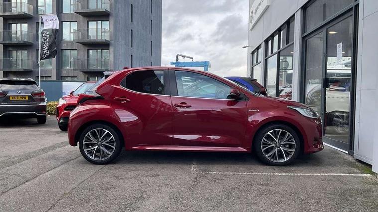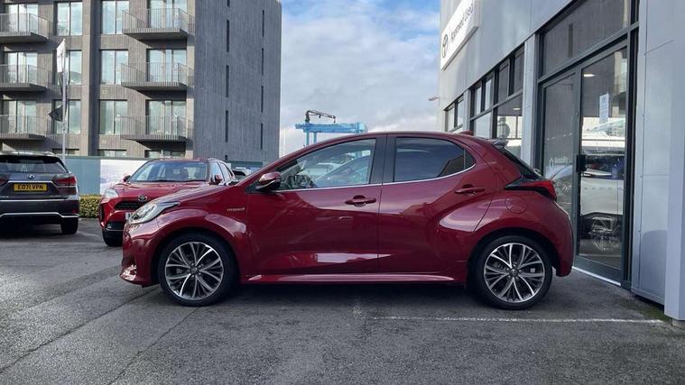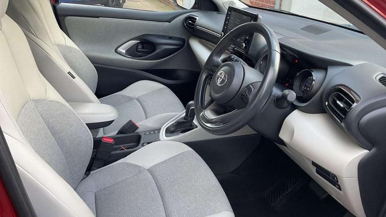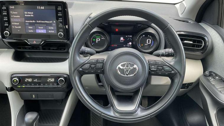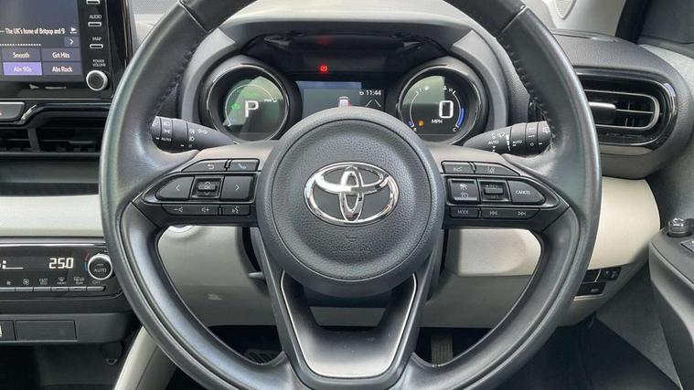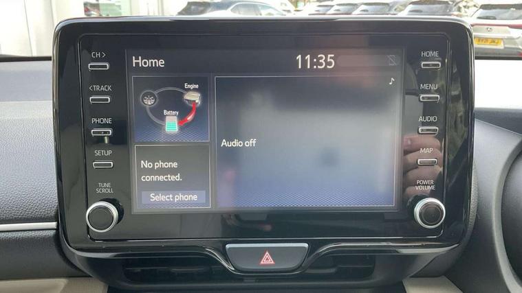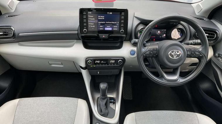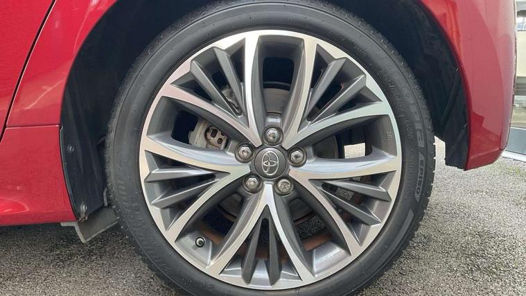 Adaptive cruise control, Adjustable speed limit with speed warning, Blind spot monitoring, Bluetooth connectivity, Colour binocular inspired displays with digital speedometer, E-call, Electric power steering, Front and rear parking sensors and intelligent clearance sonar with automatic braking, Hybrid energy display, Multi information display switches on steering wheel, Reversing camera, Smartphone integration with Apple CarPlay and Android auto, Vehicle Stability Control (VSC), 6 speakers, 8" Multimedia display touch screen, Toyota Touch 2 with DAB, USB connection, Acoustic windscreen glass, Auto windscreen wipers, Automatic headlights, Automatically retractable door mirrors, Body coloured door mirrors, Electric adjustable heated door mirrors, Follow me home headlights, Front auto power windows with anti jam protection, Full LED rear lights, LED daytime running lights, LED front fog lights, LED Headlights, LED High mounted stop lamp, Painted front grille, Rear auto power windows with anti jam protection, Rear privacy glass, Rear spoiler, Satin lower front grille, Shark fin antenna, Turning signal integrated indicators in door mirrors, 3 adjustable rear headrests, 3 spoke leather steering wheel, 60/40 split folding rear seat, Adjustbale boot height, Coat hooks in rear grab handles, Cup holders (2 front & door), Data Communication Module (DCM) connected services, Dual zone automatic air conditioning, Fabric seat with partial synthetic leather upholstery, Front armrest, Front sport seats, Glovebox, Height adjustable driver's seat, Height adjustable passenger seat, Isofix seat fixing, Leather gearshift, Map pockets on the backs of the front seats, Pollen filter, Shopping bag hooks, Tilt/telescopic steering column, 3 point seatbelts on all rear seats, ABS+EBD+Brake assist, Active headrests, Electronic parking brake, Emergency brake light system (EBS), Front passenger airbag on/off switch, Front seatbelt reminder, Hill start assist control (HAC), Rear child proof door locks, Rear seat belt reminder, Supplemental Restraint System (SRS) 8 airbags: Driver & passenger's airbags, dual side curtain airbags, side impact airbags, front centre airbag, Toyota Safety Sense 2, Precollison + Night time Pedestrian & Cyclist Detection, Lane Trace Assist, Auto High Beam, Intelligent ACC & Road Sign Assist, Tyre pressure warning system, Alarm/immobiliser, Keyless smart entry with push button start, Remote powered central double locking doors, Satin chrome interior styling, Soft touch instrument panel, Space saver spare wheel,