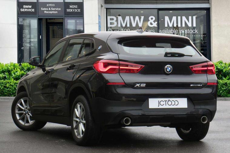Automatic powered tailgate, Bluetooth hands free facility with USB audio interface, BMW Online services, BMW remote services, BMW Teleservices, Brake pad wear indicator in front and rear, Check Control warning system for monitoring of lights and door/luggage compartment open warning, Eco pro mode, Electric Power Steering (EPS) with Servotronic, Instrument cluster with black optic and 5.7" colour display + speedometer + tachometer + fuel gauge + instant fuel economy, Lights on warning by audio warning signal when ignition is switched off, On board computer - average speed+fuel consumption, service interval, clock/date, odometer/trip meter, outside temperature display and ice warning, Optimum shift indicator, Personal Profile, Real time traffic information, Speed limiter, TMC for lifetime of vehicle, 12V compressor with integrated sealant injection bottle and hose, Anti roll bar front and rear, Balancer shaft, Diesel particulate filter, Drive performance control with ECO PRO comfort + sport mode, Electronic differential lock, Sport automatic transmission, Twin tube gas filled shock absorbers with degressive characteristic curve, 2x USB sockets in front, 6 Speaker Loudspeaker system, Bluetooth audio streaming, BMW professional radio with CD player, DAB Digital radio, Steering wheel mounted audio/telephone controls, Adjustable headlights, Automatically dimming rear view mirror, BMW badge on bonnet, tailgate with integrated tailgate release and C pillars, Body colour bumpers with black insert, Body colour door handles, Body colour front air intake slats, Body colour mirror caps, Chrome kidney grille with black vertical slats, Clear lenses direction indicator lights, Direction indicator side lights integrated in exterior mirrors using LED technology, Door cladding, side sill covers and wheel arch trims in matt black, Door mirror integrated indicators, Door sill finishers, Dynamic brake lights, Electrically adjustable and heated door mirrors glass aspheric on driver's side and convex on passenger side, Fingertip control / anti-trap function on electric window, Front and rear bumper system, Front and rear electric windows, Front fog lights, Green tinted heat protection glazing, Halogen headlights, Heated windscreen washer jets, High gloss black front side air intake with matt black insert, High level third brake light, LED daytime driving lights with two directly emitting lights, Lightweight engineering, Manual headlight beam throw control, Matt aluminium exterior trim, Matt black in window frame, recess covers and B-Pillar trim, Matt black roof trims, Model designation in left tailgate, Rain sensor with automatic headlight activation, Rear fog lights, Rear tail lights with LED technology and 3D design, Rear window aerial, Rear window wiper with wash/wipe function, Reversing light in rear light cluster, Shark fin antenna, Twin chrome exhaust tailpipes, Visible VIN plate, Welcome lighting, 3 spoke sports leather multi-function steering wheel, 40:20:40 manually split folding rear seat with two tilt positions for backrest, Ambient interior lighting, Armrest in centre section of rear seat backrest and folding, Automatic two zone climate control air conditioning, Child seat ISOFIX attachment for two outer rear seats and front passenger seat with anchorage points, Conditioned based service, Driver + passenger vanity mirrors, Driver/passenger sunvisors with ticket holders, Drivers folding storage compartment, Front and rear door armrests, Front armrest, Glovebox with light, Luggage compartment lighting, Luggage compartment loading edge with stainless steel insert, Rake/reach adjustable steering wheel, Retaining strap on the left side of the luggage compartment, Three rear headrests, Two cupholders in front and rear centre console, Velour floormats, Extended storage pack - X2, 3 point seatbelts on all seats, front pyrotechnic belt tensioners, stopper and belt force limiters, rear coded belt buckles, Airbags - Front driver and passenger, front and rear head, front side, curtain head protection, Anti lock braking system (ABS) with brake assist, ASC - Active stability control, BMW emergency call, Brake drying, Brake energy regeneration, Braking readiness, Child proof locking system in rear door, Crash sensor activating central locking release with hazard warning lights and interior lighting + battery safety cut-off, Driver and front passenger seat belt security check, DSC - Dynamic Stability Control, Dynamic Traction Control - DTC, Electrically operated parking brake with automatic drive release, Electronic parking brake, Front passenger airbag deactivation, Front ventilated brake disc, Hill descent control, Hill start assist, Multi collision braking system, Rear brake discs, Side impact protection, Twin horns, Tyre pressure monitor, Warning triangle and first aid kit, 2 remote folding keys, Auto door lock when driving, Central locking switch for all doors, fuel filler cap and luggage compartment, Engine immobiliser, Incorrect fuel protection system, Locking wheel bolts, Remote control Thatcham category 1 alarm, Start/stop button with comfort go keyless engine start and auto start stop deactivation button, Dash top finished in black with decorative stitching line on upper section, Oxide Silver interior trim with high gloss black finisher, Reduced rolling resistance tyres,