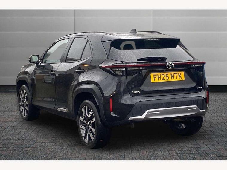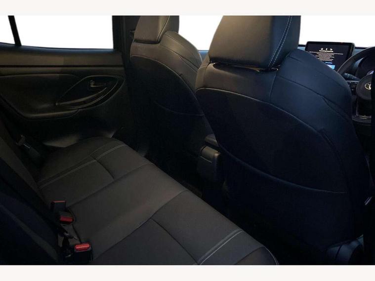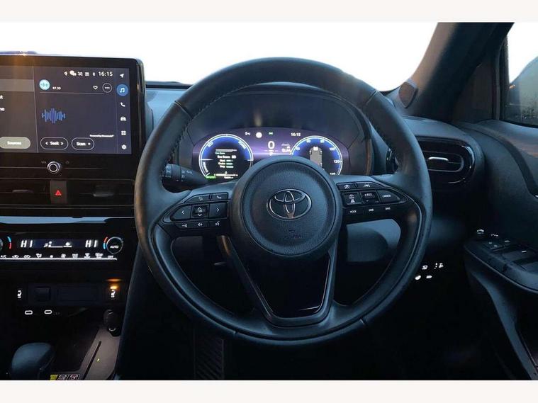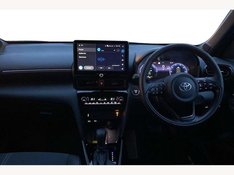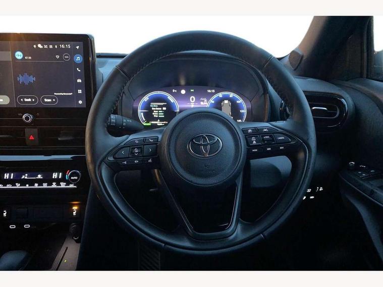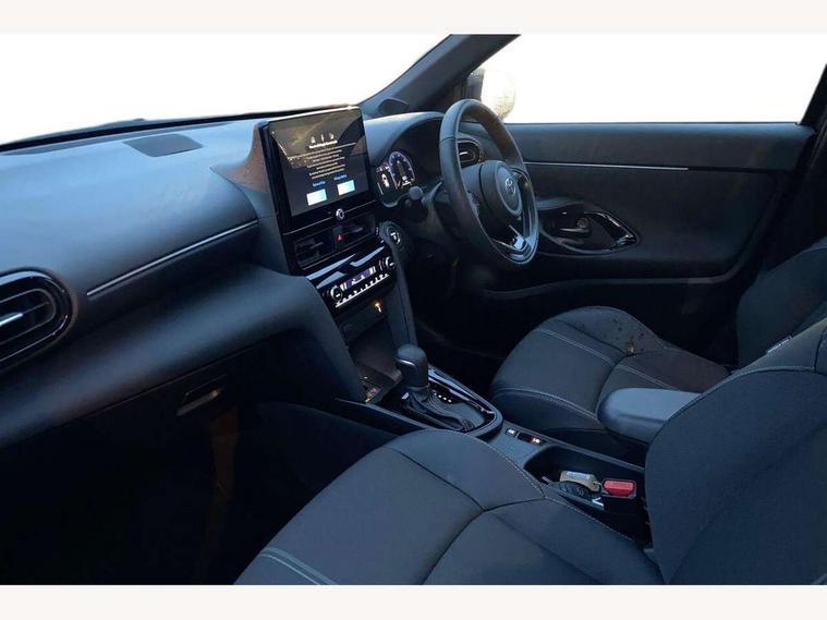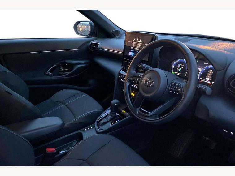 10.5" Multimedia display screen, 10.5" Toyota smart connect+ with navi multimedia system with wireless Smartphone integration incl Apple CarPlay, 360 degree panoramic view monitor, 7" Multi information display screen, Adaptive cruise control, multi info switches on steering wheel, Adjustable speed limiter, Advanced parking assist, Blind spot monitoring, Bluetooth connectivity, Color multi-information display, Digital speedometer, Digital tachometer, Drive mode selector, Driver attention alert system, Dynamic guide lines on reversing camera, eCall emergency system, Electric power steering, Emergency driving stop system, Full range intelligent adaptive cruise control, Hybrid system indicator, Intelligent front and rear parking sensors with clearance sonar and automatic braking, Intersection turn assist, Key reminder warning, Lane change assist, Lane trace assist, My T Connected services, Power tailgate, Pre-collision system enhanced with emergency steering assist, Rear cross traffic alert, Remote boot door release in cabin, Road sign assist - RSA, Safe exit assist, Tailgate, Telephone switch on steering wheel, Wireless Mobile Phone Charger, Steering assisted vehicle stability control, 6 speakers, DAB Digital radio, Front USB Type-C connector, Front USB-C device charger, Acoustic windscreen glass, Anti-jam protection on power windows, Auto dimming rear view mirror, Auto high beam [AHB] with on/off switch, Auto intermittent windscreen wipers, Automatic headlights, Automatic headlights cut-off, Automatically retractable door mirrors, Black door moulding, Black lower front grille, Black protection moulding on side doors, Black roof rails, Black wheel arch mouldings, Body colour door handles, Body colour front bumper, Body colour rear bumper, Electric adjustable heated door mirrors, Follow me home headlights, Front and rear electric windows with auto up/down function, Gloss black upper front grille, Headlight cut off reminder, Indicators integrated on door mirrors, Intermittent rear wiper, Kick activated power back door, LED 3rd brake light, LED daytime running lights guide, LED front fog lights, LED front light guide, LED Indicators, LED projector headlights, LED rear lights with sequential indicators, Manual headlight levelling, Meshed upper front grille, Noise reduction layer on windscreen, Pre wiring for towing hook, Privacy glass, Rain sensor, Rear roof spoiler, Rear side wing doors, Rear window defogger, Shark fin antenna, 12v power outlet - front, 12V power point in boot, 2x Rear coat hooks, 3 seat bench in 2nd row, 3 spoke leather steering wheel, 40/60 split deckboard, 40:20:40 split folding rear bench seat, Adjustable rear headrests, Adjustable speed limiter switch on steering wheel, Boot light, Central armrest, Driver and front passenger personal lights, Driver and front passenger Whiplash injury Lesseing seats, Driver and passenger seatback pockets, Dual zone automatic air conditioning, Fabric door trim, Front console box, Front cup holders, Front door pockets, Front head restraints, Front sport seats, Front/rear assist grips, Gear shift indicator, Grey roof lining, Heated driver and passenger seats, Heated steering wheel, Height adjustable driver's seat, Height adjustable front passenger seat, Hooks for luggage holding belts, ISOFIX child restraint system, Lane departure alert switch on steering control, Leather gearshift, LED centre room light, Light on driver and passenger sun visor, Manual telescopic and tilting steering wheel, Mirror on driver and passenger sun visor, Nanoe-X air purifier, Partial synthetic leather upholstery, Pollen air filter, Power adjustable lumbar support on driver seat, Rear cup holders, Rear door pockets, Rear head restraints, Remote air-conditioning system, Single compartment glovebox, Single front passenger seat, Soft tonneau cover, Storage box under boot floor, Voice recognition switch on steering wheel, White ambient lighting in centre console, White ambient lighting in footwell, White ambient lighting on front doors, Yaris cross floor mats, Tech pack - Yaris Cross, 3x3 point rear seat belts, ABS+EBD+Brake assist, Downhill Assist Control (DAC), Driver and passenger central airbags, Driver and passenger front airbags, Driver and passenger side airbags, Electronic parking brake, Emergency brake light system (EBS), Front seat belt reminder, Hill start assist control (HAC), Passenger airbag on/off switch, Pre-collision system with pedestrian and cyclist detection, Rear door child safety locks, Rear passenger side airbags, Rear seat belt reminder, Traction control, Tyre pressure warning system, Immobiliser, Intrusion alarm, Keyless smart entry with push button start, Power door locks, Power passenger window lock, Remote door lock, Gloss black side air vent surrounds, Tyre repair kit,