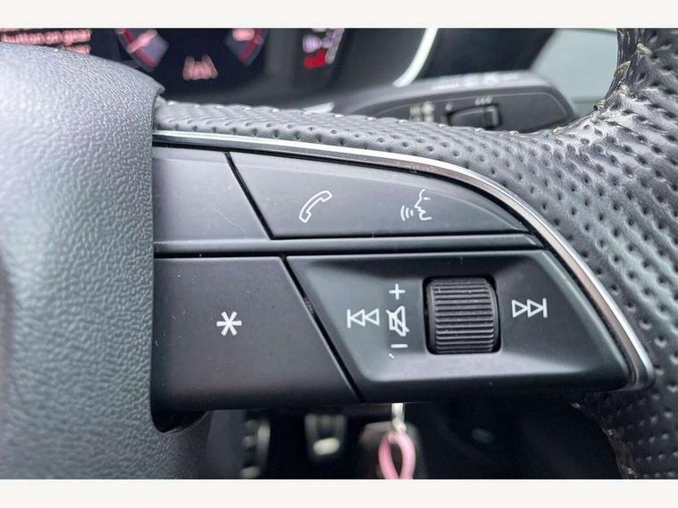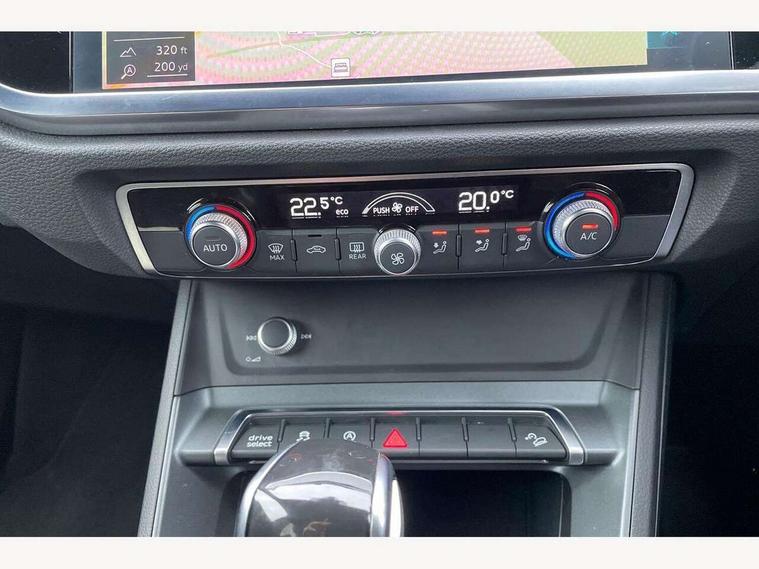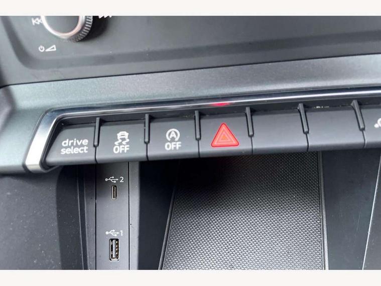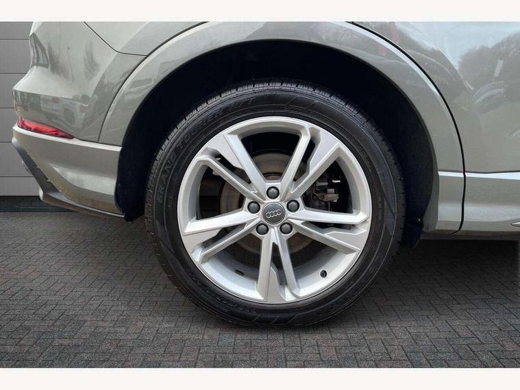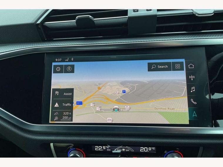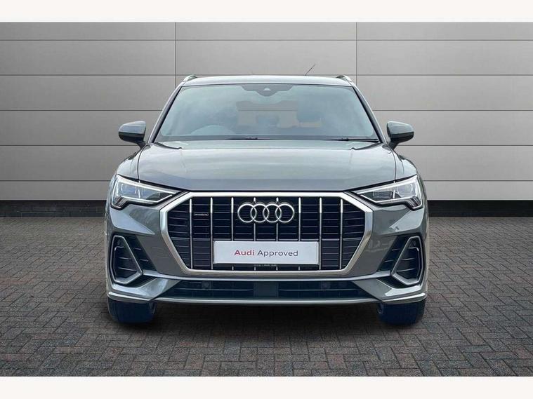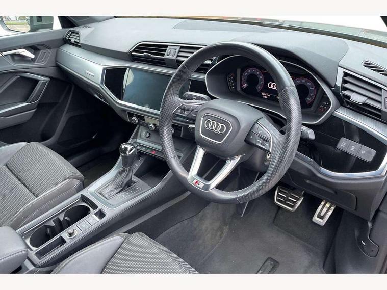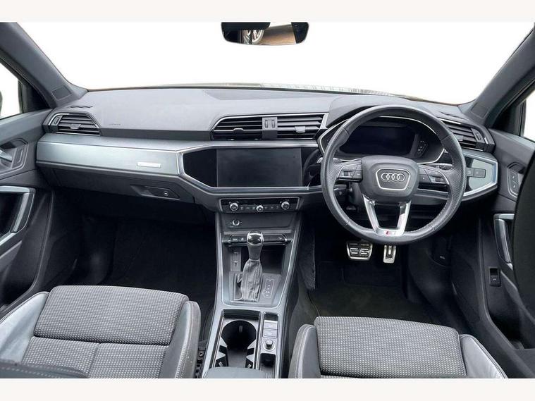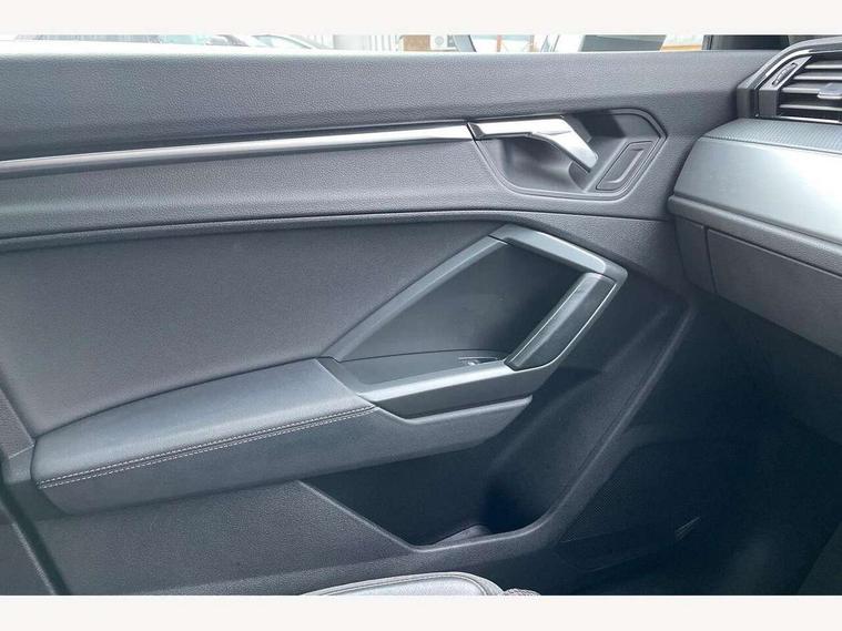 Audi connect safety and service (e-call), Audi drive select, Audi lane departure warning, Audi side assist, Audi smartphone interface, Audi Virtual Cockpit - 10.25" display, Bluetooth interface, Camera based traffic sign recognition, MMI navigation plus with MMI touch, Power opening/closing tailgate, Progressive steering, Service interval indicator, Stop/start system, Voice control system, Sports suspension, 1 x USB type C and 1 USB type A charging points, 6 speakers, DAB digital radio module, Acoustic windscreen, Aluminium roof rails, Aluminium window trim, Auto dimming rear view mirror, Body coloured bumpers, Diffuser in matt Platinum grey, Electrically adjustable and heated door mirrors with integrated LED side indicators, Front and rear electric windows, Front fog lights, Front side air inlets in matt platinum grey, Front spoiler blade in matt platinum grey, Grille vertical bars in aluminium silver/Matt, High gloss black finish B and C pillars, LED headlights with LED daytime running lights and dynamic rear indicator, LED rear lights, Privacy glass, Rain and light sensors, Rear diffuser strip in matt titanium black, S Line badge on wings, S Line front and rear bumpers, Side skirt insert in matt Platinium grey, Titanium black radiator grille, 12V socket in rear centre console, 40:20:40 split folding rear seat, Adjustable rear seat bench/backrest with centre armrest and cupholder, Aluminium door sill trims, Black cloth headlining, Dual zone climate control, Front and rear black floor mats with contrast stitching in rock grey, Front and rear headrests, Front and rear roof module including reading lights, Front centre armrest with storage compartment and angle adjustment, Glove compartment lighting, Height and reach adjustable steering wheel, Illuminated door sill trims with S logo, ISOFIX child seat mounting and Top Tether with front passenger airbag deactivation, Luggage compartment light, Manual front seats with height adjustment, Perforated leather gearknob, Stainless steel luggage compartment sill finisher, Stainless steel pedals, Non smoking pack - Q3, 3x3 point rear seatbelts, 6 airbags - Driver, front passenger, curtain and side windows, Electrically operated child locks on rear doors, Electromechanical parking brake, Electronic stabilisation control including ABS, ASR and EDL, Hill descent control, Hill hold assist, Pre sense basic, Seatbelt monitoring, Tyre pressure warning, Warning triangle and first aid kit, Anti theft alarm, Anti theft wheel bolts, Audi pre-sense front with pedestrain and cyclist recognition, Remote central locking, Dark matt brushed aluminium inlay, MMI touch colour display in gloss black with aluminium surround,