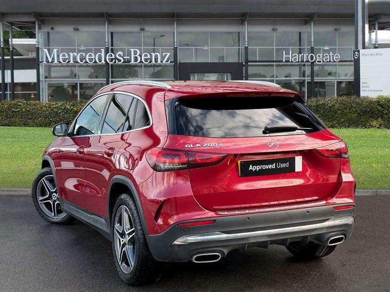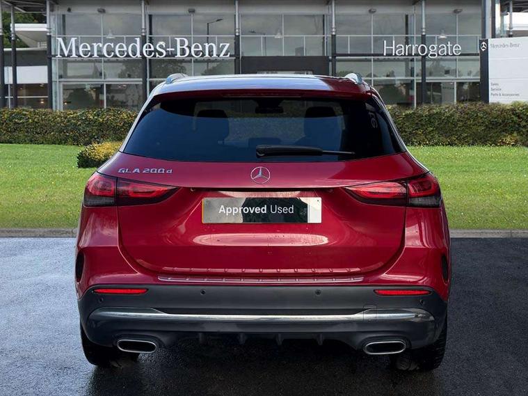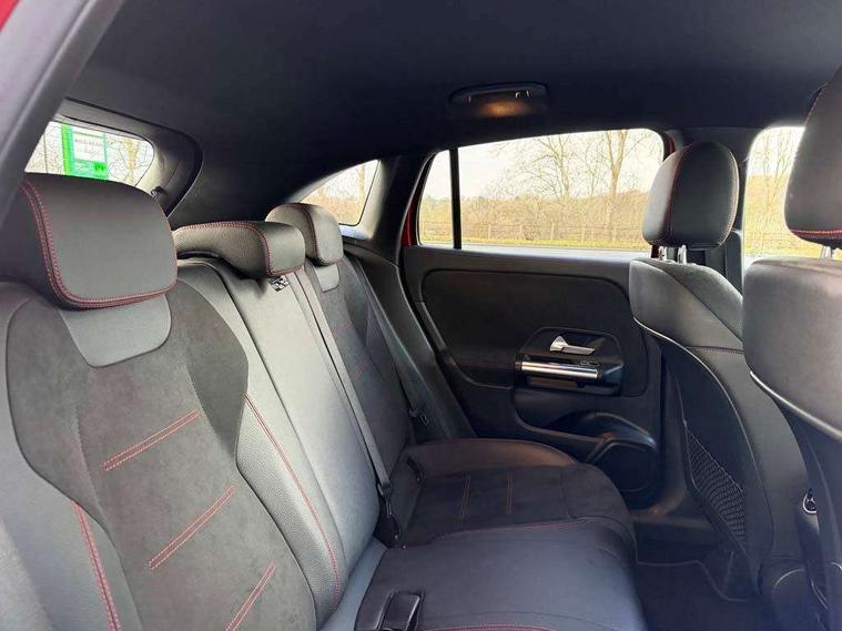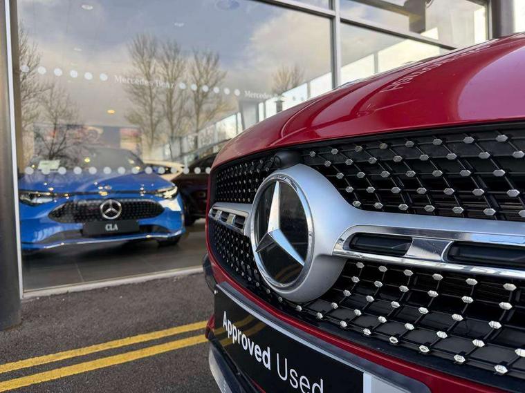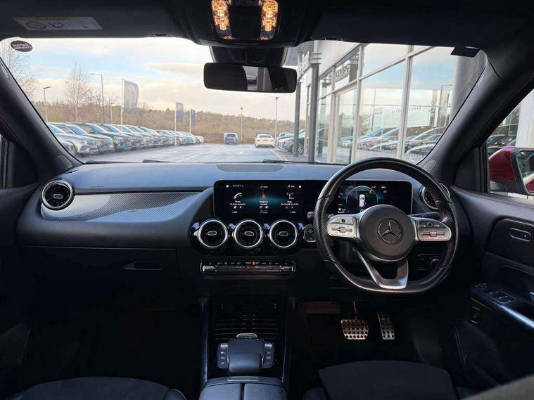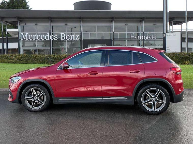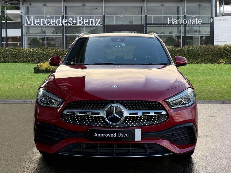 10.25 inch touchscreen central media display, 7 inch digital instrument cluster display, Active lane keeping assist, Attention assist, Cruise control + speed limiter, Direct steering, DYNAMIC SELECT with a choice of driving modes (ECO, Comfort, Sport, Sport+ and Individual), Easy-pack tailgate, ECO start/stop function, Fluid level warning indicator for fuel, oil, coolant and washer fluid, Hard-disk navigation, Hey Mercedes Voice activation, Lamp failure indicator, Mercedes me connect including emergency call system, accident recovery, breakdown and maintenance management, Multi function trip computer, Outside temperature gauge, Owners manual and service booklet in English, Pre-installation for Vehicle Monitoring, Pre-installation for Vehicle set up, Pre-installation of private car share, Radio aerial integrated into front and rear windshields, Service indicator (ASSYST), Smartphone integration with Apple CarPlay and Android auto, Speed limit assist, Status display for rear seat belts in instrument cluster, Wireless charging, Lowered comfort suspension, Rear axle multi-link, 2 USB ports (type C) in rear stowage compartment and one in front of center console, Bluetooth connectivity including audio streaming, DAB Digital radio, MBUX multimedia system with DAB digital radio and touchpad including satellite navigation, Media interface, Mercedes-Benz sound system - 100W, Adaptive brake lights, Aerial for GPS, Aluminium roof rails, AMG front and rear apron, AMG specific/dual flow exhaust pipes in chrome (non-functional), Automatic headlamp activation, Beltline strips and weather strip in chrome, Black grained claddings with chrome parts, Body colour bumpers, Body colour door handles, Body colour door mirrors, Car wash function, Dark privacy glass from B-pillar backwards, Electric front windows, Electric rear windows, Electrically adjustable and heated door mirrors with integrated LED indicators, Front door sills with Mercedes-Benz lettering, Heated glass rear windscreen + timer control, Heated windscreen wash system, Interior mirror with black reading lamps and frameless, LED high performance headlamps with integrated LED daytime running lights, LED tail lights in two piece design, LED third brake light, Matt titanium grey front and rear apron trim, Rain sensor windscreen wipers, Rear fog lights, Roof spoiler, Single lamella raditor grille with chrome dotted diamond grille and inlay, 12V power socket in centre console, 3 spoke multifunction sports steering wheel in nappa leather with flattened bottom and perforated grip area, 40:20:40 split folding rear seat backrests, Adjustable head restraints, Air conditioning - Two zone thermotronic luxury automatic climate control with display, Ambient lighting in front headrests, AMG floor mats with AMG lettering and stiched edging, Artico man-made leather/Microfibre Dinamica upholstery with red contrast stitching, Auto Mercedes-Benz child seat recognition sensor, Black roof lining, Brushed door pulls in silver chrome, Courtesy light in boot, Front centre armrest with stowage, Galvanished gear shift paddles on steering wheel, Heated front seats, Illuminated glovebox, Leather trimmed gearknob, Luggage net on driver/front passenger seat backrest, Manually height and reach adjustable steering column, Multi-gesture touchpad control on center console, Net in front passenger footwell, Sports pedals in brushed stainless steel with black rubber studs, Sports seats, Stowage compartment in centre console, Stowage compartment with retractable cover, Sunvisors with illuminated vanity mirrors, Twin front cup holders, Two outer rear seat isofix and top tether child seat fixing points, AMG body styling pack - GLA, Comfort seat pack - GLA Class, Interior lighting with light and sight pack - GLA, Load compartment pack - GLA, Mirror pack - GLA Class, Parking pack - GLA, 3 rear 3 point seatbelts, ABS with Brake Assist, Active bonnet pedestrain safety measure which detects an impact and raises bonnet by 65mm, Active brake assist includes forward collision warning system with autonomous braking, Adaptive brake assist with hold function and hill start assist, Bonnet with power domes, Brake pad wear warning indicator, Childproof locks manually operated for rear doors and electrically operated for rear power windows, Crash responsive emergency lighting, Driver and passenger head and side airbags, Drivers knee airbag, Dual stage driver/passenger airbags, Electronic parking brake, ESP curve dynamic assist, ESP with ASR, Front and rear seatbelt reminder, Front brake callipers with Mercedes Benz logo lettering on front, Front brake discs internally ventilated and perforated, Front passenger seat occupancy sensor, Tyre pressure monitoring system, Warning triangle and first aid kit, Window airbags, Alarm system with immobiliser and interior protection -Thatcham category 1, Keyless Go starting function, Remote central locking and crash sensor with emergency opening function, Vehicle key with decorative surround in chrome, Carbon structure trim, Chrome air vent surrounds, 19" AMG 5 twin spoke light alloy wheels aerodynamically optimised painted in tantalite grey with a high sheen finish, Summer tyres, Tirefit tyre sealant kit,