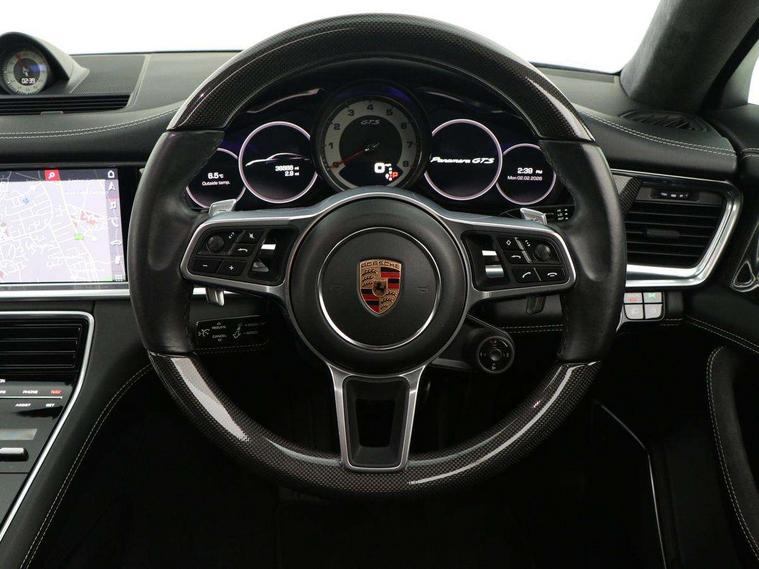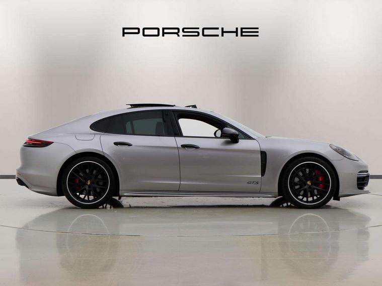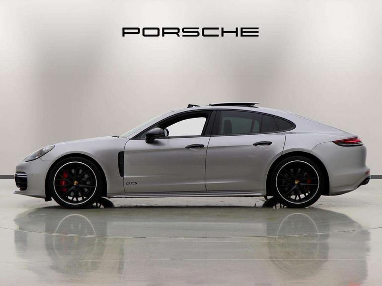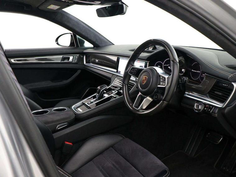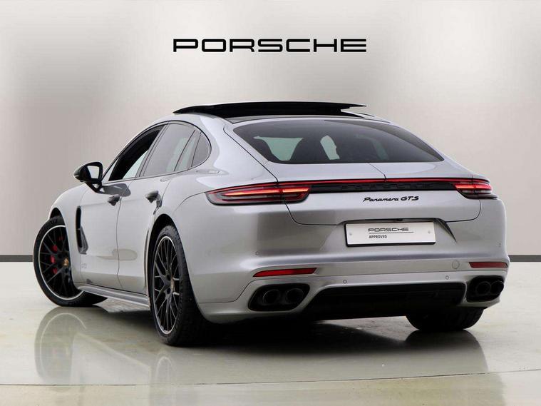 Ambient temperature display, Auto start/stop function and coasting, Automatic tailgate operation, Brake pad wear sensors front and rear, Central analogue rev counter with black dial face with turbo S logo, power meter and needles in acid green, Instrument cluster with high-resolution 4.8-inch TFT colour display, Mobile telephone preparation, Service interval indicator, Trip computer, Voice control system, 4D Integrated chassis control, 8 Speed Porsche Doppelkupplung (PDK), 90 litre fuel tank, Adaptive air sports suspension including Porsche Active Suspension Management (PASM), Aluminium multi link rear axle, Direct fuel injection with central injector position, Double wishbone front axle, Double wishbone suspension, Gasoline particulate filter, Porsche stability management (PSM), Turbo chargers with twin scroll turbines, VarioCam and adaptive cylinder management, Water cooled with thermal management, Connect Plus with Apple CarPlay, wireless internet access, Carfinder, Remote Vehicle Status and Remote Services, DAB Digital radio, 2 speed front wipers + intermittent wipe, Aluminium bonnet with tailgate, door and front wings, Aluminium roof rails, Auto dimming exterior mirrors, Auto dimming rear view mirror, Automatic headlight activation including welcome home lighting, Electric front and rear windows + anti trap + one touch, Electrically adjustable, folding and heatable exterior mirrors with aspherical on driver's side, Four way adaptive rear spoiler in exterior colour, Front light modules with LED position lights and direction indicators, Fully galvanised steel/aluminium hybrid lightweight bodyshell, GTS logo on front doors, Headlight wash system, Heated rear window with auto timer, High gloss black side window trims, Hydrophobic front side windows, LED daytime running lights, Porsche logo and model designation on tailgate in high gloss black, Rear diffuser, Remote window closing, Sports exhaust system in black, Three dimensional LED tail lights with integral 4 point brake lights and lighting strip, Twin dual-tube tailpipes in turbo design, outside left and right in brushed stainless steel, Windscreen washer system including rain sensor, 12v plug sockets in the front centre console storage compartment, 12V socket in glovebox, 12V socket in luggage compartment, 4 way adjustable lumbar support, 60/40 asymmetric split folding rear seats, Active cooling flap control, Air quality sensor, Alcantara roof lining, Charge air cooling, Courtesy lights on mirrors, Electric fore/aft and height adjustment steering wheel, Four individual seats with continuous centre console and rear armrest, Front centre armrest with 2 cupholders, Front centre armrest with storage compartment, Glove compartment, front and rear door storage compartments, storage bin in centre console, small storage compartment in centre console, Heated front seats, Integrated front and rear headrests with embossed GTS logo, Isofix child seat mounting points on outer rear seats, Isofix rear child seat preparation, Pollen/active carbon filters, Rear centre console, Storage net in luggage compartment, Two integrated cup holders in rear compartment, Driver memory pack - Panamera, Interior lighting pack - Panamera, Matt aluminium exterior pack - Panamera, Sport chrono pack - Panamera, Storage Pack, 3 point front/outer rear seatbelts + pre-tensioners + force limiters on front seats, Active bonnet, Anti-lock braking system (ABS), Brake discs with diameter 390 mm at front, 365 mm at rear, Continuously adjustable door brake, Curtain airbags along entire roof frame and side windows from the A pillar to the C pillar left and right, Driver and front passenger knee airbag, Electronic parking brake, Four piston aluminium monobloc fixed brake calipers at rear, internally vented brake discs, Front side airbags, Full size driver and passenger airbags, Height adjustable front seatbelts, Passenger airbag deactivation warning, Porsche side impact protection system (POSIP) includes side impact protection in doors, thorax airbags integrated into the side bolster of front seat, Porsche traction management (PTM) with AWD, map controlled multi-plate clutch, automatic brake differential (ABD) and anti-slip regulation (ASR), Six piston aluminium monobloc fixed caliper brakes at front, internally vented brake discs, Tyre pressure monitoring system, Engine immobiliser with remote central locking and alarm system with radar based interior surveillance, Keyless drive, Porsche vehicle tracking system (PVTS Plus), Remote keyless entry, Tyre sealing compound and electric air compressor kit,