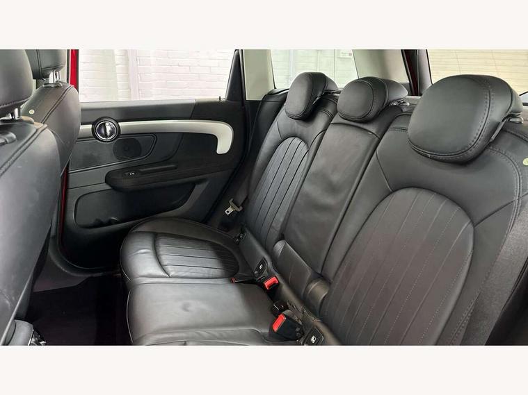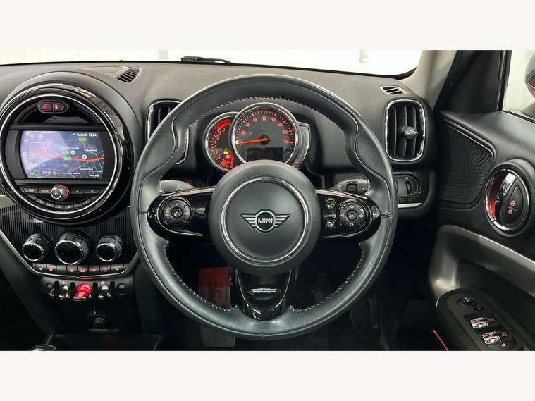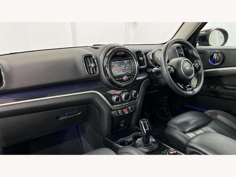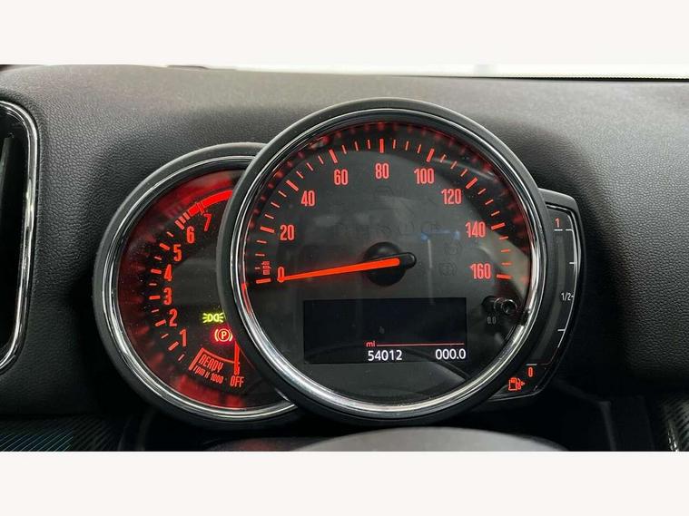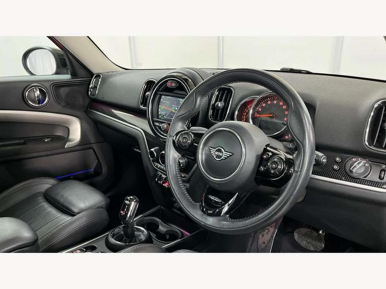 Active Guard incl speed limiting and lane departure functions with auto steering, and front collision warning with brake intervention, Automatic start/stop function with brake energy recuperation, Electro-mechanical speed dependant steering assistance, Instrument cluster, Mini E-call, MINI TeleServices, On board computer, Rear parking distance control, Double Vanos system, Fully variable valve control, High precision injection, Steptronic transmission with double clutch, FM tuner and DAB digital radio, Body colour fuel filler cap, Chrome line exterior, Day time driving lights, Door sill strips, Dynamic brake lights, Electric windows, Heated rear window, Heated windscreen washer jets, Left exhaust tailpipe with chrome finisher, Model logo, Model logo on Tailgate, Radiator grille, Rain sensor with auto headlights, Rear fog lights, Rear window wiper, Side scuttle panel with integrated indicator, Split rear doors, Sun/heat protection glass, White indicator lenses, 12V Accessory socket in centre console, 360L luggage compartment capacity, 4 lashing eyes in luggage compartment, 40:20:40 split folding rear seats, Chrome interior highlights, Cupholders, English handbook, Front headrests, Glove compartment, Height and length steering column adjustment, Interior lighting with 12 basic colours selectable via toggle switch in roof, Isofix rear child seat preparation, Leather gearshift lever and handbrake gaiters, LED reading lights, vanity mirror lights, front foot well light and spotlight on front seats, Manual air conditioning, Mechanical seat adjustment, driver seat height adjust, forward/back and front seats backrest, MINI Yours fine walk nappa leather steering wheel with contrast stitching in silver and MINI Yours badge, Multifunction steering wheel, Passenger seat height adjuster, Rear headrests, Storage compartments in doors, Sunvisors with vanity mirrors, Excitement pack - Countryman, Navigation pack - Countryman, 2 tone horn, 3 point seatbelts on all seats, 6 Airbags - front, side, head and seat belt tensioners, Anti-lock braking system (ABS), DSC - Dynamic Stability Control, Electronic handbrake, Front and rear disc brakes, Hill start assist, Tyre pressure monitoring system, Alarm system with tilt sensor, monitoring doors, bonnet interior and tailgate, Auto drive away locking, Deadlocking function, Electronic vehicle immobiliser, Locking wheel bolts, Start/stop toggle with keyless go, Chrome line interior, Tool kit,