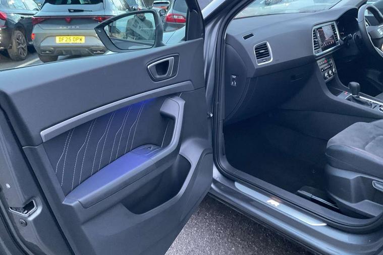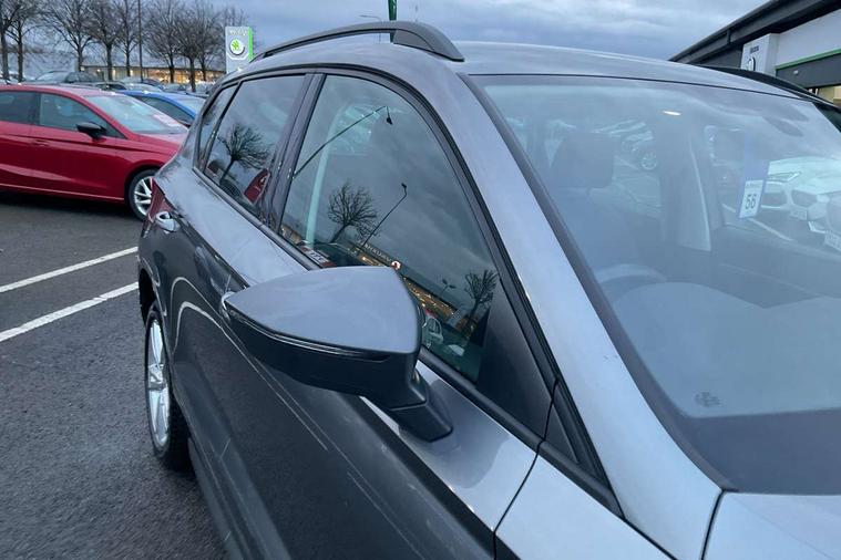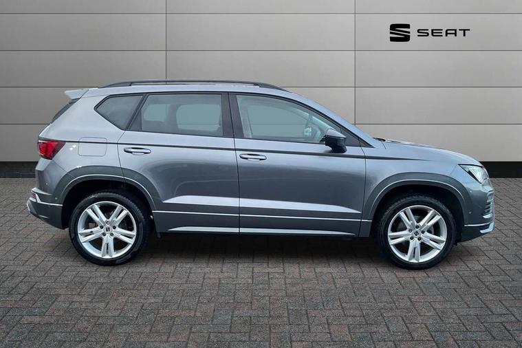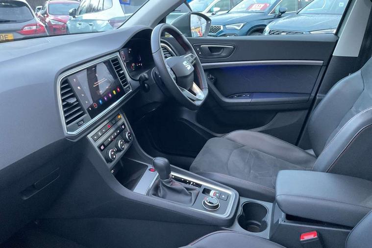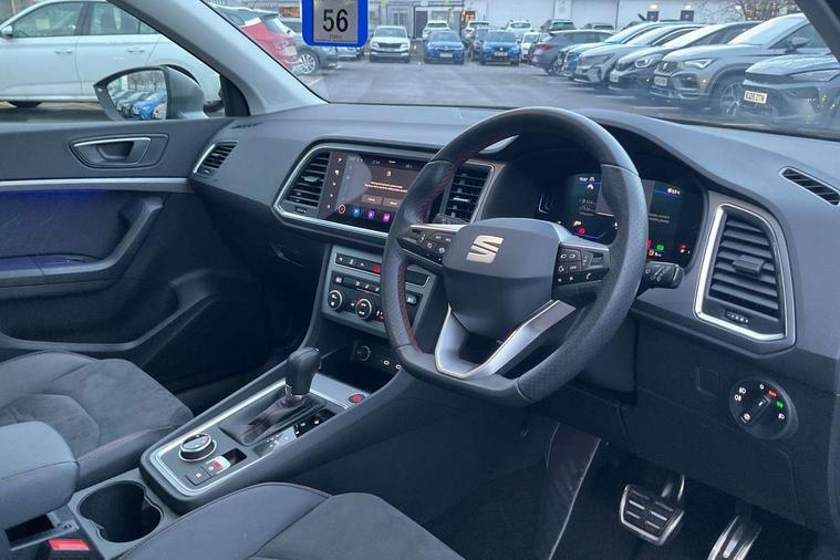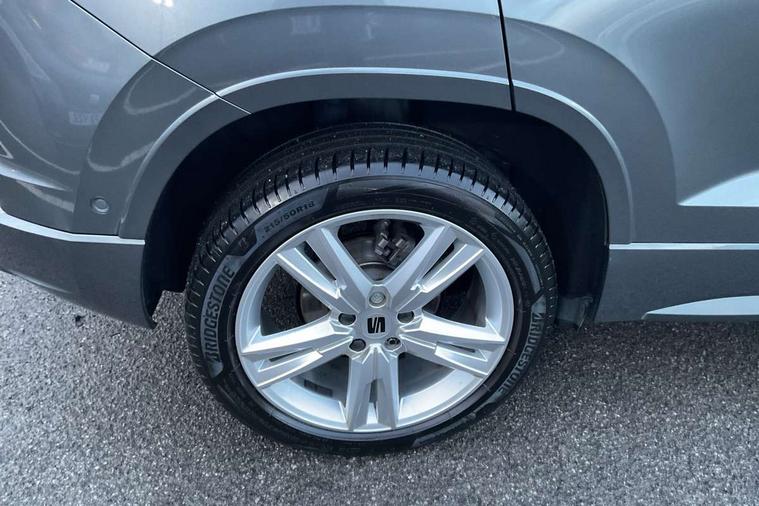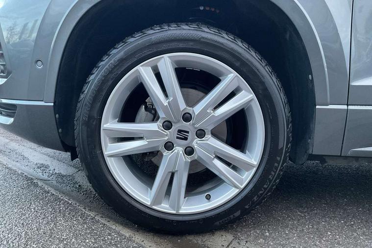 8" Digital cockpit, Colour multi-function on board computer display, Cruise control system with speed limiter, E-call, Outside temperature gauge, Progressive power assisted steering, SEAT drive profile with driving experience button - Normal, Sport, Eco and Individual mode, gearshift, steering and throttle response, Self parking functionality (includes front and rear parking sensors), Start/stop system, Tailgate, Trip computer, Wireless full link smartphone integration, Wireless phone charger, Steering wheel mounted audio/phone controls, Black roof rails, Black side window trim, Body colour bumpers, Body coloured wheel arch surrounds, Chrome front grille frame, Dark tinted rear windows, Daytime running lights, Door mirrors with welcome light silhouette, Dynamic headlight range control with self adjusting whilst driving, Electric adjustable/heated/folding door mirrors, Front and rear electric windows, Full LED headlamps with lens and LED front fog lamps with cornering function, Illuminated aluminium front door sill, LED 3rd brake light, LED rear tail lights with dynamic indicators, Rear exhaust tailpipe, Rear fog lights, Rear side wing doors, Rear wash/wipe, Roof spoiler, Variable front intermittent wipers, 12V socket in front, 3 seat bench in 2nd row, 60/40 split folding rear seat, Aluminium pedals, Dinamica upholstery with front comfort seats, Drawer under right front seat, Dual zone climate control, Front and rear head restraints, Front centre armrest, Front seat back storage pockets, Height adjustable driver and passenger seat with lumbar adjustment, ISOFIX points in outer rear seats with top tether anchorage points, Leather sports steering wheel and gear knob, Rear armrest and easy back seat release mechanism from boot, Single front passenger seat, Steering wheel mounted gearshift paddles, Convenience pack - Ateca, Interior lighting pack - Ateca, Navigation system pack with DAB - Ateca, Safety and driving pack with attention and drowsiness assist - Ateca, 3x3 point rear seatbelts, ABS, Traction control system (TCS), Electronic stability control (ESC) and Electronic differential lock system (XDS), Airbags - Driver and front passenger airbag with deactivation, front side, two curtain and driver's knee airbags, Electric parking brake with auto hold function, Front and rear seatbelt reminder, Front assist with autonomous emergency braking, Hill hold control, Manual rear child locks, Single tone horn, Tiredness recognition system, Tyre pressure monitoring system, Alarm, Keyless entry, Locking wheel bolts, Remote central locking, Chrome interior detailing, 18" Brillaint silver alloy wheels,