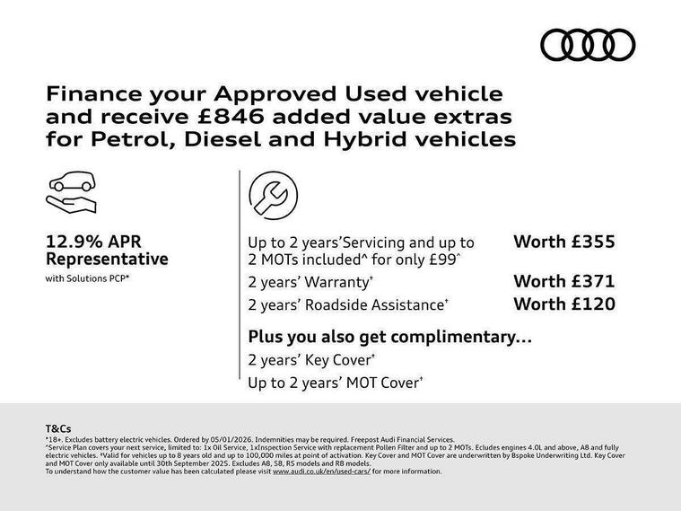 12 months free breakdown cover (or discounted upgrade if you're an AA member) and £75 off a Service & MOT. T&Cs apply