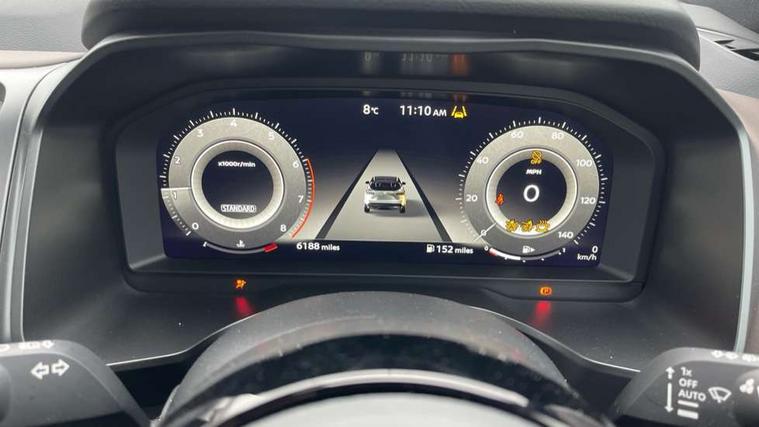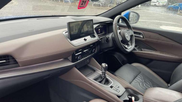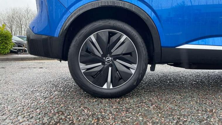 2 front USB-C ports, 2 rear USB-C ports, 360 degree Intelligent around view monitor with moving object detection, Advanced windscreen head up display, Blind spot warning, Drive assist, Drive assist custom mode, Drive modes (sport, normal, eco), Driver drowsiness and attention warning, Electric speed sensitive power steering, Emergency and breakdown call, Emergency lane keep assist, Emergency Stop Signal (ESS), Engine start/stop button, Event data recorder, Front and rear parking sensors, Full Digital 12.3" TFT Digital Combimeter, Google virtual personal assistance, Hands free power tailgate, Idle stop/start system, In-car WIFI hotspot, Intelligent Cruise control (ICC), Intelligent driver alert system, Intelligent forward collision warning, Intelligent lane intervention, Intelligent speed assist, Lane departure warning system, Nissan connect 12.3 inch touchscreen infotainment system, Nissan connect navigation with google maps, Nissan connect services 2.0 (Google Automotive System), Outside temperature sensor, Rear cross traffic alert, Remote control services - door locks, lights, horn and car locator, Reversing detection, Traffic sign recognition with legal speed adjustment, Trip computer, Wireless Apple CarPlay/Android Auto, Wireless charging pad, Limited slip differential, 6 speakers, AM/FM audio system with DAB, Bluetooth audio streaming, Auto dimming frameless rear view mirror, Auto rear wiper when reversing, Body colour mirror caps, Body coloured door handles, Bodyside mouldings, Chrome side window finisher, Electric auto folding door mirrors, Electrically adjustable and heated door mirrors with LED turn indicator, Follow me home headlights, High beam assist, Intelligent auto headlights, LED 3rd brake light, LED daytime running lights, LED headlights with adaptive driving beam, LED rear lights, LED sequential turn lights, One touch front and rear electric windows with remote opening and closing, One touch passenger window, Partially body coloured bumpers, Rain sensing wipers, Rear privacy glass, Rear roof spoiler, Rear side wing doors, Rear styling plate, Reverse tilting door mirrors, Shark fin antenna, Silver roof rails, Splash free rain sensing wipers, Super RED rear LED lights, Super UV and infrared cut glass, Thermaclear heated windscreen, 12v power socket in dashboard and luggage, 3 bench rear seats in 2nd row, 3 rear headrests, 60/40 split folding rear seat bench, Chrome interior door handles, Dark headlining, Driver and passenger sunvisors with illuminated vanity mirrors, Driver seat back pocket, Dual zone automatic climate control with pollen filter, Electrically adjustable driver seat, Electrically adjustable lumbar support for driver, Fixed Glass roof with electric sunshade, Front centre console and armrest, Front cupholders, Front door with bottle holders, Heated front seats, Heated steering wheel, Height adjustable front headrests, Height adjustable passenger seat, Leather shift knob, Luggage board system, Luggage space lighting, Manual adjustable lumbar support for passenger, Multifunction steering wheel, Passenger seat back pocket, Quilted/PVC upholstery, Rear door bottle holders, Rear seat armrest with 2 cupholders, RGB ambient light (Full area coverage), Single front passenger seat, Smooth leather steering wheel, Tilt/telescopic adjustable steering wheel, Two rear isofix child seat anchorage points with top tether, 3x3 point rear seatbelt pretensioners + load limiters, ABS with EBD and brake assist, Autonomous emergency braking, Child locks on rear doors, Curtain and front side, far side airbags, Driver and passenger airbags, Driver, passenger and 2nd row rear seat belt reminder, Electric handbrake with auto hold function, Front seatbelt pretensioners + load limiters, Height adjustable front seatbelts, Hill start assist, Intelligent blind spot intervention, intelligent front emergency braking, Intelligent rear automatic braking, Tyre pressure monitoring system, Vehicle dynamic control, Engine immobiliser, Intelligent key with walk away lock and approach unlock functions, Remote central door locking with deadlocking, Thatcham alarm, 19" Diamond cut alloy wheels, Tyre puncture repair kit,