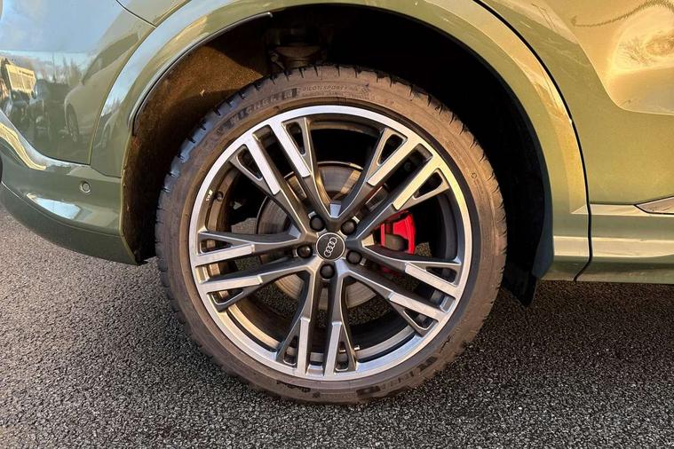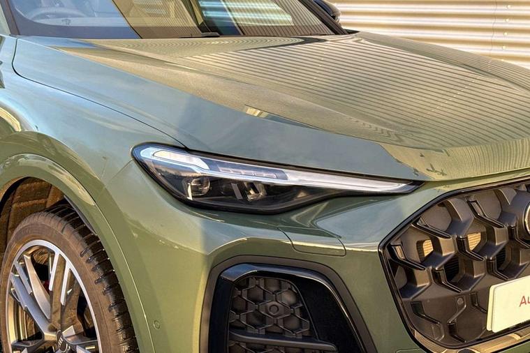 Adaptive cruise control, Advanced driver attention alert, Audi application store, Audi connect emergency call and service, Audi drive select, Audi smartphone interface, Audi virtual cockpit plus with 11.9" OLED colour display, Camera based traffic sign recognition, Fatigue monitor, Front cross traffic intersection assist, Lane change assistant with exit warning system, rear cross traffic alert and rear turn assist, Lane departure warning with emergency assist, MMI 10.9" front passenger touch display, MMI navigation plus with high resolution 14.5" OLED touchscreen colour display, Park assist plus, Parking system plus with 360 display, PAS, Reversing camera, Swerve assist and turn assist, Top view camera, Traffic sign based speed limiter, 2 USB-C ports in both the front and rear, Audi sound system impressive sound with 8 loudspeakers including centre speaker and subwoofer, 6-channel amplifier with a total output of 180 watts, DAB Digital radio, Smartphone compartment with wireless charging, Active digital light signatures - Six additional combinations of active daytime running light signature, Auto dimming rear view mirror, Black roof rails, Coming/leaving home lighting function, Electrically adjustable heated and folding + automatically dimming exterior mirrors, Exhaust tailpipes in dark chrome, Front and rear electric windows, Front door sill trims with aluminium inlays, illuminated with 'S' logo, Full body paint finish, Grill frame, inlay and front air inlets in matt anthracite chrome, Headlight cleaning system, Heated rear window, High beam assist, High gloss window surrounds, LED rear lights pro incl. dynamic rear indicators and illuminated light strip with animated coming and leaving home function, Logo projection light in exterior mirrors, Matrix LED headlights, Memory function for door mirrors, Privacy glass, Projection third brake light for rear window in LED, Radiator grille in phantom black, Rear and side windows with heat insulating glass, Rear honeycombe grille in matt black with inlay in matt anthracite chrome, Rear side wing doors, Rear wash/wipe, S Line badge on the front wings, Towbar preparation, Windscreen with acoustic glazing, 3 rear head restraints, 3 seat bench in 2nd row, 3 spoke leather steering wheel with multi-function buttons with touch control, flattened on top and bottom, with S badging and contrast stitching, 4 way electric lumbar support for driver and front passenger, 40:20:40 split folding rear seat bench with centre armrest and cup holders, Comfort centre armrest front, Deluxe 3 zone electronic climate control, Dinamica microfiber/leather upholstery with diamond stitching, Electrically adjustable front seats with memory function for driver's side, Front and rear floor mats, Front sport seats with integrated head restraints, Headlining in black cloth, Heated front seats, i-Size child seat mounting on the front passenger side and outer rear seats, i-Size and top tether on the outer rear seats, Interior trim in aluminium look, Luggage compartment lid, electrically opening and closing, Manual steering column adjustment, S embossed logo on front sport seats, Single front passenger seat, Softwrap in Dinamica, Stainless steel pedals and footrest, Steering wheel grips in perforated leather and shift paddles, Ambient lighting package plus - Q5, Black styling package plus - Q5, Storage and luggage compartment pack - Q5, 3x3 point rear seatbelts, ABS, Acoustic vehicle alerting system, Convenience key with safelock, Driver and front passenger airbag with passenger airbag deactivation, Electric child safety locks, First aid kit with warning triangle and high visibility vests, Front emergency brake assist, Front side airbags with head airbag system and front interaction airbag, Hill hold assist, Occupant detection in rear seat area, Proactive passenger protection system for front, sides and rear, Red brake calipers, Side airbags in front and rear with head airbag system and front interaction airbag, Tyre pressure loss indicator, Anti theft alarm, Anti-theft wheel bolts, Remote control key with SAFELOCK and keyless go, Accent surfaces and control buttons in gloss black, Black dashboard with contrast stitching, Steel grey seat stitching, Upper and lower interior elements in dinamica microfiber, Tyre repair kit,