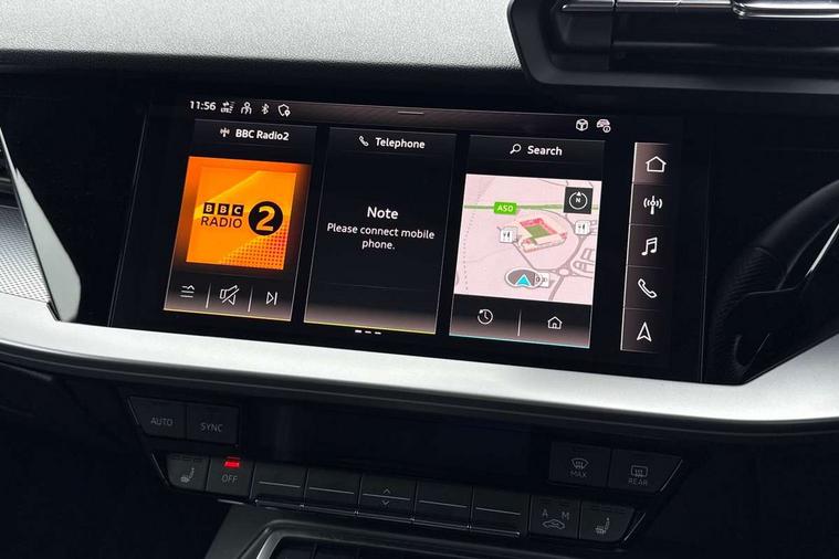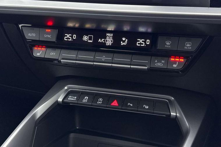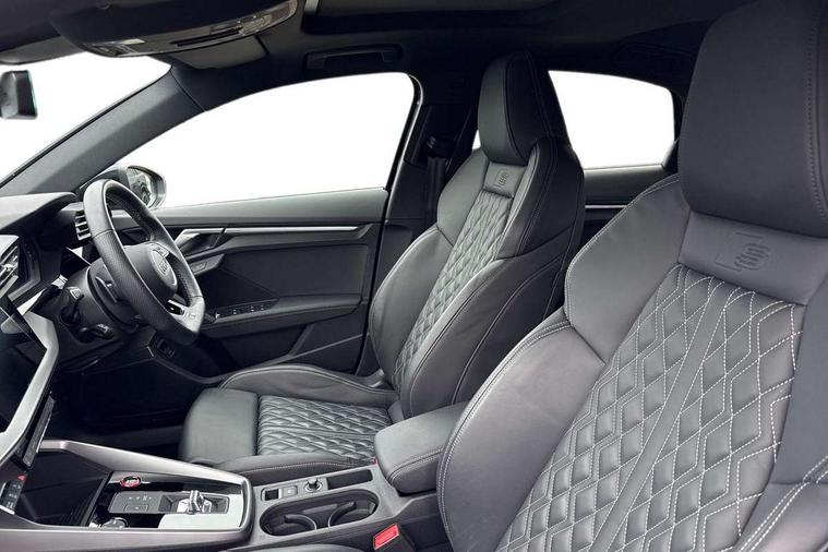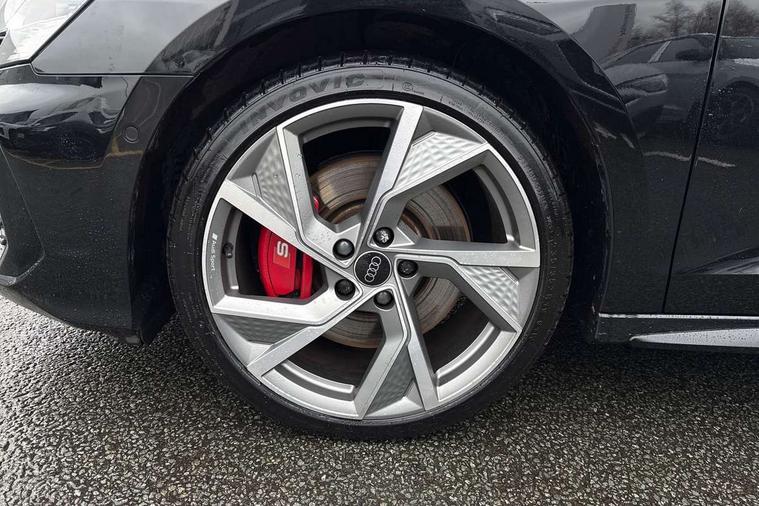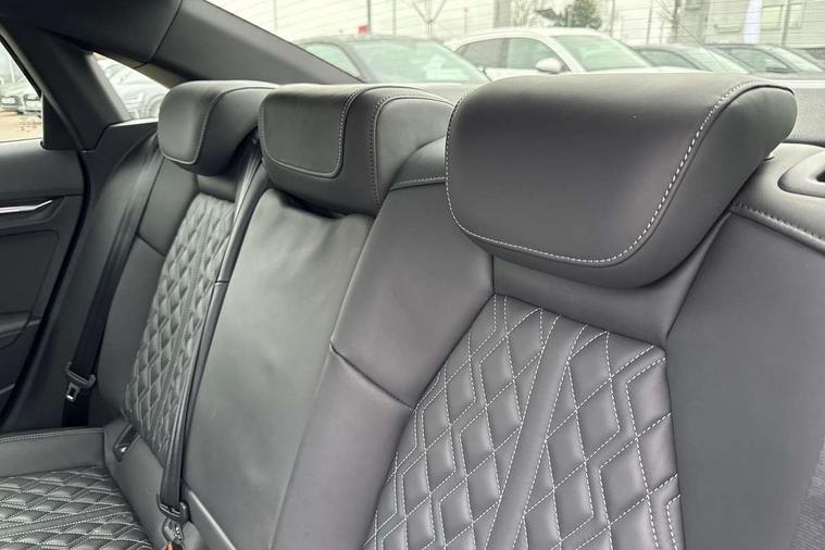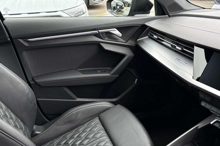 Audi drive select (Auto, Comfort, Dynamic, Efficiency and Individual), Audi smartphone interface, Audi Virtual Cockpit - 10.25" digital and colour instrument cluster, Automatic start/stop system with recuperation, Bluetooth interface, Camera based traffic sign recognition, Collision avoidance assistant, e-Call (emergency call), Lane departure warning system, MMI Navigation Plus with high resolution 10.1" colour touch screen display, Progressive steering, Service indicator, Trip computer, Voice control system with natural language interaction, Quattro permanent all wheel drive, S sport suspension with spring damper adjustment and lowering by 15mm, 2xUSB-C connection with data and charging functions, CD player, DAB Digital radio, 3rd brake light, Acoustic glass windscreen, Audi Beam uses LEDs to project the Audi logo onto the ground as you exit your S3, Auto dimming frameless rear view mirror, Dual branch oval twin tailpipes in chrome plated finish, Electrically adjustable/heated/folding/auto dimming door mirrors with integrated LED indications + kerb view function for passenger side, Front electric windows, Headlight washers, Illuminated door sills with aluminium inserts at the front with S logo, LED daytime running lights, LED headlights with LED rear lights and dynamic rear indicators, Light and rain sensors, Model and engine designation badges at rear, Privacy glass - dark tinted rear window, rear door and side windows, Rear boot, Rear electric windows, Rear side wing doors, 12V socket and storage compartment in front centre console, 3 seat bench in 2nd row, 3 spoke flat bottomed leather multifunction sport steering wheel with gear shift paddles, 4 way electrically adjustable lumbar support for driver and front passenger, 60/40 split folding rear seat bench, Black cloth headlining, Dual zone electronic climate control, Fine Nappa leather upholstery with front sports seats S embossed logo, Front and rear centre armrest in artificial leather, Front and rear headrests, Front/rear floor mats, Height and reach adjustable steering wheel, Interior lighting - glove compartment light and right hand side, Luggage compartment floor covering, Manual boot compartment lid, Manually adjustable front seats, Single front passenger seat, Stainless steel pedals and front footrest in black, Aluminium interior elements pack - A3, Black styling pack - A3 Saloon/S3, Body styling design pack - S3, Extended ambient lighting pack - A3/S3 Saloon, Storage pack - A3/S3 Saloon, Technology pack with parking assist - A3 Saloon, 3x3 point rear seat belts, Driver and front passenger airbag with passenger airbag deactivation, Electronic Stabilisation Control (ESC) including ABS, ASR and EDL, First aid kit with warning triangle and 2 safety vests, Front side airbags with head airbags and interaction airbag, Pre-sense front with pedestrian and cyclist detection, Seatbelt monitoring, Tyre pressure loss indicator, Anti theft alarm, Anti-theft wheel bolts, Electronically operated child locks, Immobiliser, Remote control central locking, Aluminium air vent surrounds, Dark spectrum aluminium inlays, accent surfaces in the dashboard and centre console in platinum grey silk effect paint finish,