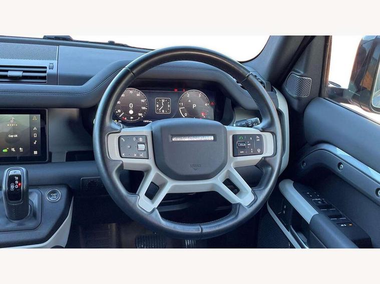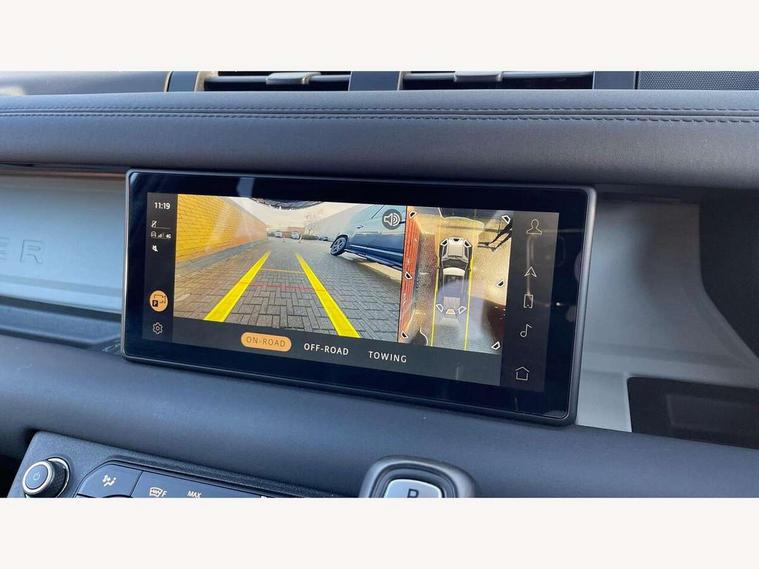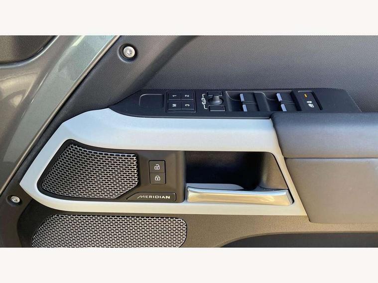 360 degree parking aid, 3D Surround Camera with 360 View, 180 Rear View, Front Traffic Detection, Forward Vehicle Guidance, Tow Hitch Assist and clear sight Ground View, Adaptive cruise control, Android Auto, Apple CarPlay, Assisted tailgate with soft close, Blind spot assist, Bluetooth system, Brake pad wear indicator, Clear exit monitor, Connected navigation pro, Driver condition monitor, Electric power assisted steering (EPAS), Interactive driver display, Lane keep assist, Push button start, Rear traffic monitor, Traffic sign recognition with adaptive speed limiter, Trip computer, Wade Sensing, 8 speed automatic transmission, Adaptive dynamics, All wheel drive system, Twin speed transfer box, DAB Radio (Digital Audio Broadcasting), Meridian 400w sound audio system with 11 speakers and subwoofer, Pivi pro connected, Automatic headlight levelling, Automatic headlights, Black exposed rear recovery eyes, Centre high mounted stop light, Electric heated/power fold door mirrors with approach lights and auto dimming driver side, Electric windows with one touch open/close and anti-trap, Follow me home lighting, Heated rear window with timer, Heated windscreen, LED tail lights, Privacy glass, Puddle lights, Rain sensing windscreen wipers, Rear fog lights, Rear side wing doors, Rear wiper, Side hinged tailgate, Trailer stability assist, X-Dynamic badge, 12V power socket in loadspace, 2 seat bench in 3rd row, 3 seat bench in 2nd row, Alpine lights, Configurable cabin lighting, Durable rubber cabin flooring, Durable rubber loadspace flooring, Footwell lights, Front passenger isofix child seat attachment, Loadspace cover, Loadspace Hook, Multifunction steering wheel, Overhead stowage for sunglasses, Premium cabin lighting, Rear headrests, Rear ISOFIX, Rear reading lights, Single front passenger seat, Storage glovebox, Sunvisors with illuminated vanity mirrors, Online pack with data plan - Defender, 7 three point seatbelts, ABS, Brake hold function, Cornering brake control (CBC), Customer configurable autolock, DSC - Dynamic Stability Control, EBD - Electronic brakeforce distribution, Electric parking brake (EPB), Emergency brake assist, Emergency braking, ESP + traction control, Front airbags with passenger seat occupant detector, HDC - Hill descent control, Hill launch assist, Low traction launch, Power operated child locks, Remote for (e-Call, Optimised assistance call, InControl app, Climate, beep and flash and door), RSC - Roll stability control, Seat belt reminder, TPMS (Tyre pressure monitoring system), Alarm, Immobiliser, Intrusion sensor, Keyless entry, Locking wheel nuts,