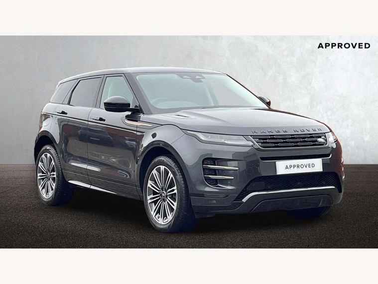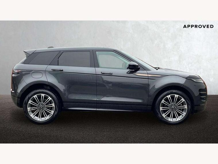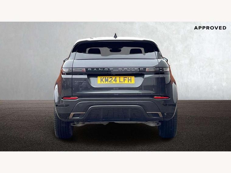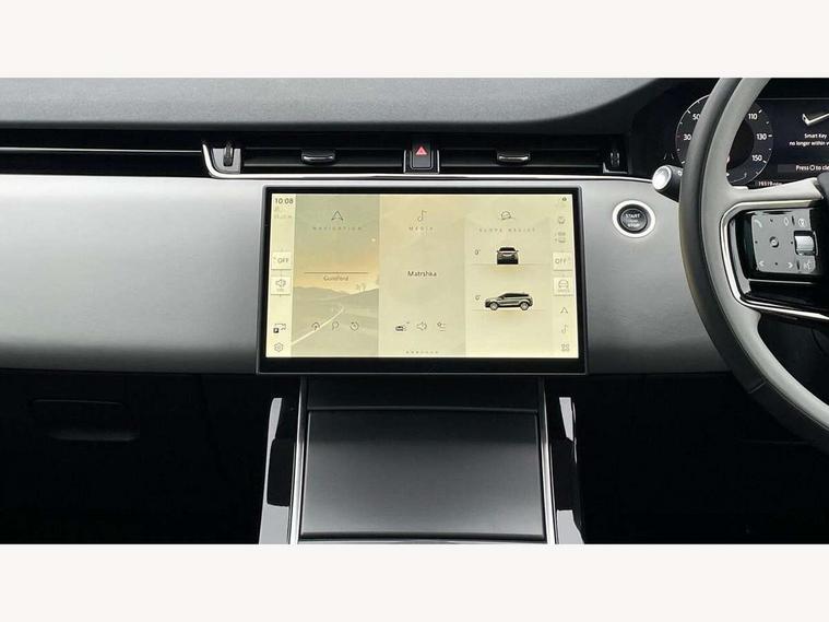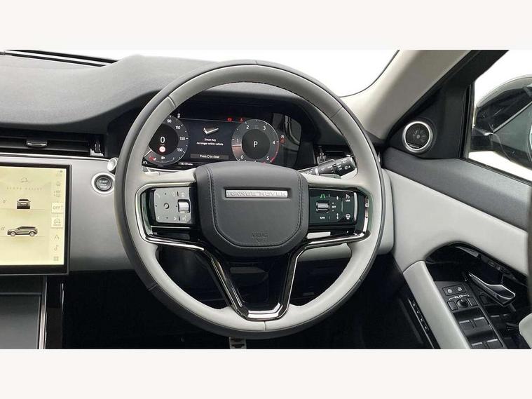 11.4" touch screen, Adaptive cruise control, Android Auto, Apple car play, Blind spot assist, Bluetooth connectivity, Brake pad wear indicator warning light, Driver condition monitor, eCall emergency system, Eco mode, Electronic power assisted steering (EPAS), Front and rear parking aid, InControl remote, Interactive driver display, Land Rover InControl apps, Lane keep assist, Pivi pro connected includes diamond pivi variant, smart settings, connected navigation pro, nuance speech licence, Powered tailgate/boot lid, Rear collision monitor, Rear traffic monitor, Traffic sign recognition with adaptive speed limiter, Voice control system, Wireless device charging, All terrain progress control, Diesel exhaust fluid (DEF) large tank, Efficient Driveline, Large fuel tank, Passive suspension, Terrain Response 2, Digital Audio Broadcast radio-DAB, Steering wheel mounted controls, Acoustic laminated windscreen, Auto headlights, Automatic headlight levelling, Electric windows with one touch open/close and anti trap, Flush deployable exterior door handles, Front and rear recovery eyes, Front fog lights, Heated rear window with timer, Heated washer jets, Heated windscreen, Pixel LED headlights with signature DRL and LED tail Lights, Power fold, auto-dimming, heated door mirrors with approach lights and auto dimming driver side, Rain sensing windscreen wipers, Rear animated directional indicators, Rear fog lights, Rear side wing doors, Rear wiper, Side repeater indicators in mirror, Tailgate spoiler, Third brake light, Winter wiper park position, 14 way driver memory electric front seats with 2 way manual headrests + 4 way lumbar support, bolsters, 40:20:40 split folding rear seats with centre headrest and armrest, Ambient interior lighting, Bright metal pedals, Carpet mats, Chrome tread plates with range rover branding Includes stainless steel loadspace scuff plate with etched graphic, Customer configurable single point entry, Electrically adjustable steering column with memory function and easy entry/exit, Front and rear cupholders, Heated steering wheel, Isofix system on outer rear seats, Overhead lighting console, Overhead stowage for sunglasses, Passive front head restraints, Rear air vents, Rear head restraints, Satin chrome gearshift paddles, Single passenger seat, Sunvisors with illuminated vanity mirrors, Twin sliding front centre armrest, Online pack with data plan - Evoque, Power socket pack 2 - Evoque, 3 rear 3 point seatbelts, Anti-lock braking system (ABS), Brake hold function, Customer configurable autolock, DSC - Dynamic Stability Control, Electronic brake force distribution, Electronic parking brake, Electronic traction control, Emergency braking, Front and rear seatbelt reminder, Hill descent control, Hill launch assist, Low traction launch, Occupant protection assist, Passenger seat occupant detector, Power operated child locks, Roll stability control, Six airbags - Driver and passenger airbags/driver knee airbag/front side airbag and curtain airbags, Torque vectoring brake, Tyre pressure monitoring system, Alarm, Immobiliser, Intrusion sensor, Keyless entry, Locking wheel nuts,