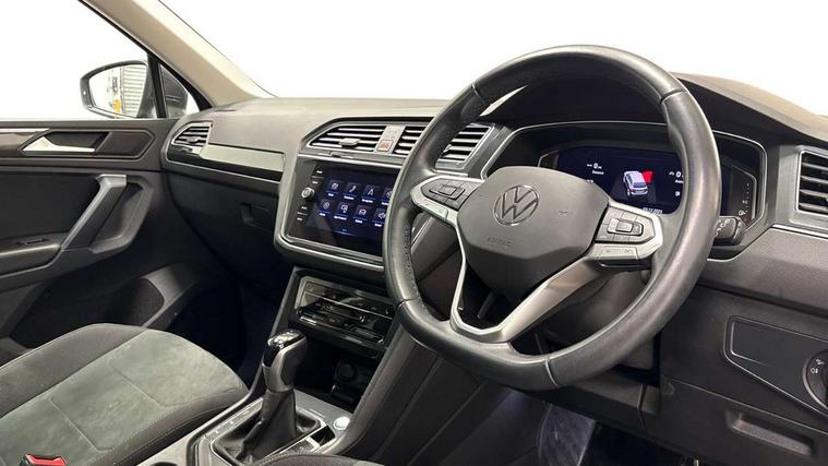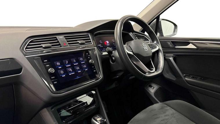 Adaptive cruise control ACC stop and go including speed limiter, App-Connect incl. App-Connect Wireless for Apple CarPlay and Android Auto, Bluetooth phone integration system, Distance control assist, Driver alert system, Driver profile selection, Dynamic road sign display, eCall emergency call system, Electromechanical speed sensitive power steering, Engine start/stop button, Lane keeping system Lane Assist, Lights on warning, Motorised electric tailgate operated via key fob, drivers door and foot movement under tailgate, Multifunction front facing camera, Outside temperature display, Premium multifunction display with multi colour display, Remote control boot opening, Rev counter, Revision / skills operating concept travel assistant, Service interval indicator, Speed limit display, Start/stop system with regenerative braking, Tailgate/trunk lid unlocking from outside, Trip computer, Warning sound and light for doors and tailgate open, Battery regeneration during braking, XDS electronic differential lock for improved traction and handling, 4 X 20 watt output, 8 Speakers, Diversity antenna for FM reception, Radio, SD card slot, Simultaneous pairing of 2 compatible mobile devices, SMS functionality - read, compose and send SMS messages using touch-screen display, Title and cover art display, USB C ports, Aluminium door sill protectors, Auto dimming interior rear view mirror, Automatic headlight control system, Body colour door handles, Body coloured bumpers, Body coloured door mirrors with integrated indicators, Coming/leaving home lighting function, Dynamic headlight range control, Front and rear electric windows, Heated rear window, High level 3rd brake light, IQ light-Adv high beam, Dynamic light assist for LED matrix headlamp+LED separate DRL+DCL, dark red rear LED tech, Poor weather light+ cornering light, Laminated safety glass windshield, heat and sound insulating, LED rear number plate lights, Poor weather light and cornering light, Privacy glass for rear side windows and rear window, Rain sensor windscreen wipers, Rear exhaust tailpipe, Rear fog lamp, Rear side wing doors, Rear windscreen washer and wiper with interval delay, Side and rear windows in heat insulating glass, Tilting and sliding panoramic sunroof with rear panoramic sunroof, Trailer Stability Programme, Windscreen wipers/ intermittent wipe + 4 position delay, 12V outlet in center console rear and in luggage compartment, 12V outlet in front and tray, 2 cup holders in front, 2 LED front reading lights, 2 LED rear reading lights, 3 bench rear seats in 2nd row, 3 rear headrests, 4 load lashing points, 40:20:40 split folding rear seats, Air Care Climatronic 3 zone automatic climate control with enhanced air filter and controls in the rear, Backrest release for left front seat, Climate control unit rear with touch function, Door and side trim panel in foam film and woven fabric, Front centre armrest, Front footwell illumination, Front seats head restraints (x-adjustment), Height adjustable front seats, Height/reach adjust steering wheel, Instrument lighting white adjustable panel illumination, Interior light with delay, Isofix Preparation 2 Rear child seats, Leather gear knob, Lockable cooled glovebox, Luggage compartment lighting, Luggage net, Rear bench seat asymetrically split folding, longitudinally movable and folding with load-through hatch and center armrest, Remote unlocking for rear seat backrest, Removable luggage cover, Removable rear headrests, Safety optimised front head restraints, Single front passenger seat, Sliding/reclining rear seats, Standard rear seat release, Storage compartment in driver's door, Storage compartment in passenger's door, Storage compartment in rear doors, Storage compartments in luggage area left and right, Storage tray on dashboard, Sun visors with illuminated vanity mirrors, Top front comfort seats, Variable boot floor, height adjustable and removable, Easy open and close pack with safelock - Tiguan, 3 point seat belt for centre rear seats, 3 point seat belts with seat belt pretensioners for the outer rear seats, Active bonnet, Curtain airbags for front and rear passengers, Driver/Front Passenger airbags, Drivers knee airbag, Electronic parking brake with auto hold, Electronic Stability Control with driver steering recommendation, ABS, ASR, EDL, EDTC and trailer stabilization, Front assist with autonomous emergency braking (for Adaptive Cruise Control ACC up to 130 mph), Front disc brakes, Front passenger airbag deactivation, Front side airbags, Height adjustable front 3 point seatbelts + pretensioners, Hill hold control, Manual child proof rear door locks, Pedestrian monitoring system, Power assisted brakes, Proactive passenger protection system in combination with front assist, Rear disc brakes, Rigid safety cell with front and rear crumple zones, Two tone horn, Warning sound and light for front seat belts if unfastened, Anti theft alarm system with interior monitoring, backup horn and towing protection, Anti theft wheel bolts, Central locking system with safelock radio remote control and 2 remote control folding keys, Electronic engine immobiliser, Tool kit,