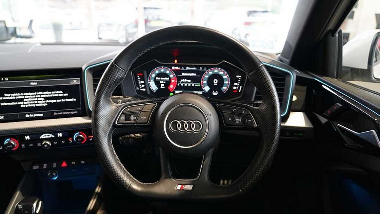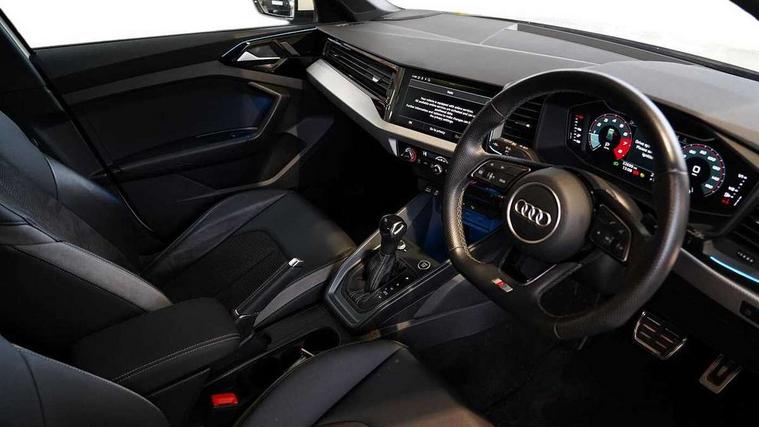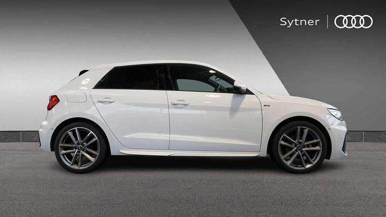 Adaptive speed assist, Audi connect safety emergency and service including E-call, Audi drive select - power steering assistance + engine + gear shift 3 preset modes (auto, dynamic, efficiency and an Individual mode), Automatic start/stop system, Bluetooth interface, Cruise control, Driver's information system, Electromechanical power steering, Emergency services call system, Lane departure warning system, Service interval indicator, Speed limiter, Voice control system, Washer fluid level indicator, Sports suspension, 1 x SDXC card reader, 2 x USB type C connection points, DAB Digital radio, MMI radio plus with 8.8" colour MMI display screen and MMI touch, Auto dimming rear view mirror, Black Audi rings and black badging (with model name in black, no engine badging), Body coloured door mirrors, Door sill trims with aluminium inlays and logo, Electric front and rear windows, Electrically adjustable, heated, folding door mirrors with integrated LED side indicator, Front side air inlets in grained matt black and C frame in titanium black, Front wing badges, Heat insulating glass windscreen and side windows, Heated rear windscreen, High level LED brake light, LED headlights with LED rear lights + dynamic rear indicators + headlight adjustment and high beam, turning light + LED daytime running lights, Radiator protective grille frame in matt aluminium silver, Rain and light sensors, Rear diffuser strip in matt titanium black, Rear fog lights, Rear side wing doors, Rear wing door, Rear wiper, Side front spoiler lips in grained matt black, 12V socket in centre console with two cup holders, 3 rear seats with headrests, 3 seat bench in 2nd row, 3 spoke flat bottomed multi-function plus leather steering wheel with S badging, grips in preforated leather, contrast stitching and paddle shift, 40:60 Split folding rear seat or folded fully, Black cloth headlining, Driver and passenger seat with manual height adjust with forward and backwards adjustment, Frequency alcantara/leatherette upholstery and S embossed logo + front sports seats, Front and rear black floor mats with contrast stitching in fine silver, Front head restraints, Front passenger seat, Height and reach adjustable steering wheel, ISOFIX child seat mounting for front passenger and outer rear seats including top tether attachment point of outer rear seats, Leather gear knob with aluminium trim, Luggage compartment light with front and rear reading lights, Manually adjustable lumbar support in front seats, Stainless steel pedals, Black exterior styling pack - A1 Sportback Vorsprung, Comfort and sound pack - A1 Sportback, Luggage compartment pack - A1, Multicoloured LED Ambient lighting pack - A1 Sportback, Plus pack - A1 Sportback, Technology pack - A1 Sportback, 3x3 point rear seatbelts, Audi pre-sense front with pedestrain and cyclist recognition, Brake assist function, Driver and front passenger airbag with front side and head airbags, Electronic Stability Control including ABS, EBD, ASR and EDL, Front passenger airbag deactivation switch, Hill hold assist, Manual rear child locks, Seatbelt height adjustment for front seats, Seatbelt monitoring, Tyre pressure warning light, Warning triangle and first aid kit, Advanced key, Anti theft alarm, Anti theft wheel bolts and loose wheel warning, Immobiliser, Remote central locking with 2 foldaway keys, Aluminium trim for control switches, air vents and digital instrument cluster, Silver grey inlays polygon structure in diamond paint finish, Structured grey accent areas including air vents, door handle recesses and centre console in quartz paint finish, 18" 5 double arm design alloy wheels in matt titanium look with diamond cut finish,