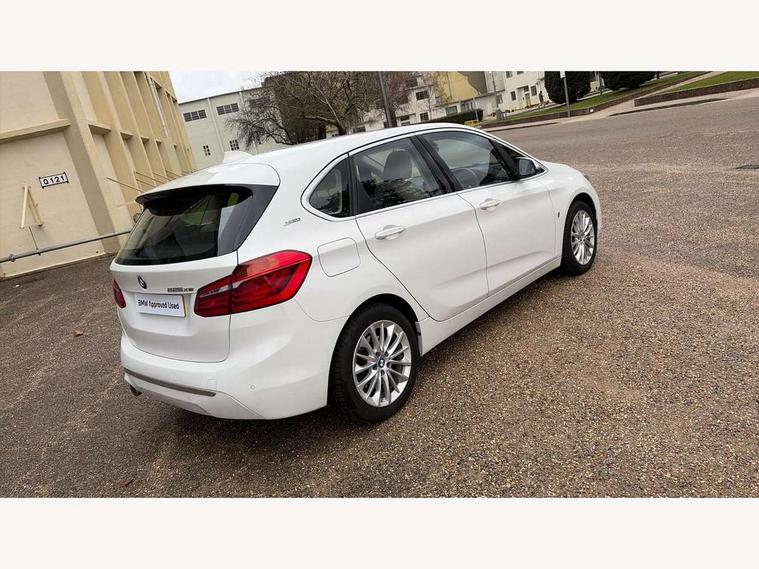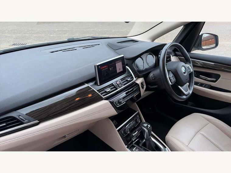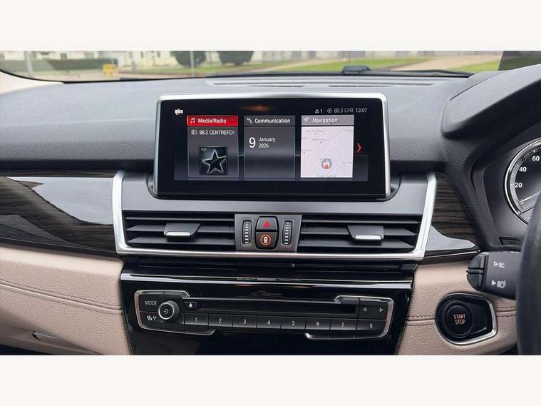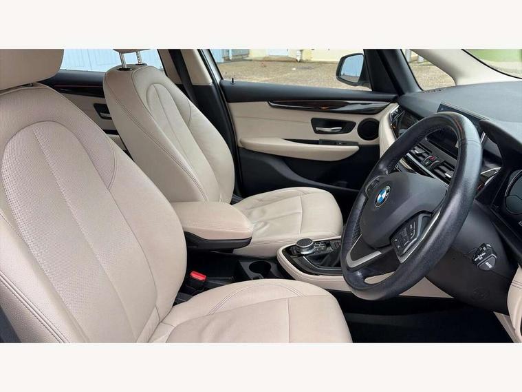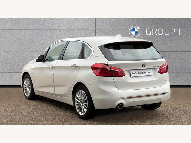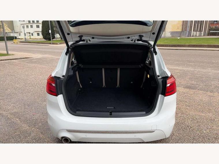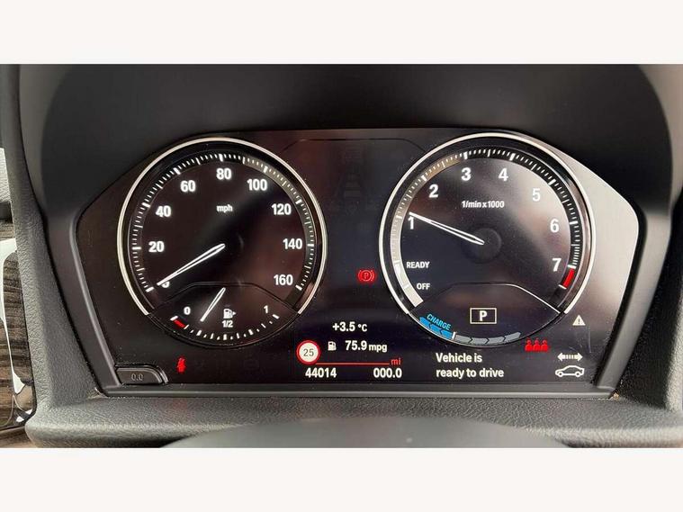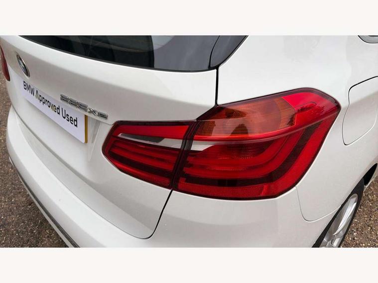 Active Guard incl speed limiting and lane departure functions with auto steering, and front collision warning with brake intervention, Attentiveness assist, Automatic tailgate operation, BMW Online services, BMW Teleservices, Brake pad wear indicator in front and rear, Check Control warning system for monitoring of lights and door/luggage compartment open warning, Connected eDrive Services, eDrive button activates auto eDrive, max eDrive and save battery modes, eDrive specific displays in instrument cluster and CID, Instrument cluster with speedometer with miles per hour read out, tachometer and fuel gauge, Lights on warning by audio warning signal when ignition is switched off, On board computer - average speed+fuel consumption, service interval, clock/date, odometer/trip meter, outside temperature display and ice warning, Personal Profile - automatic lock when driving away selectable, Service interval indicator, Servotronic variable electric power steering (EPS), Speed limiter, 2.4kW AC charging with 5m cable, Battery pre-conditioning, Drive performance control with ECO PRO comfort + sport mode, Electronic differential lock, Intervention on the front axle when DSC deactivated, Lithium-ion high voltage battery (7.7 kWh) fitted under rear seats, 2x USB sockets in front, BMW professional radio/CD/MP3, DAB Digital radio, BMW i badges on front wings, Body colour - front and rear bumpers, door handles, mirror caps, roof mouldings, Clear lenses direction indicator lights, Direction indicator side lights integrated exterior mirrors, Dynamic brake lights, eDrive designation on C Pillar, Electric windows - front and rear, with open/close fingertip control, anti-trap facility and comfort closing, Electrically adjustable door mirrors with aspheric on driver side, convex on passenger side with integrated indicators, Exclusive front door sill finishers with eDrive designation, Follow me home headlights, Front air inlet with chrome finish, Front and rear bumper system, Green tinted heat protection glazing, Halogen headlights, Headlight beam throw control, High level third brake light, Kidney grille with 12 Chrome fronted vertical slats, LED daytime running lights, Lightweight engineering, Rain sensor including auto headlights activation, Rear bumper with chrome finisher, Rear fog lights, Rear window aerial, Rear window wiper integrated under roof spoiler, Reversing light in rear light cluster, Shark fin antenna, Single chrome exhaust tailpipe, Visible VIN plate, Welcome lighting, Automatic two zone climate control air conditioning, Cabin pre-conditioning via iDrive or BMW i Remote App, Central locking switches for door, fuel filler cap and luggage compartment, Child seat ISOFIX attachment for two outer rear seats and front passenger seat with anchorage points, Dakota leather upholstery with perforation and contrast stitching, eDrive badging on engine cover and gear selector, Four grab handles integrated in roof lining, Front and rear side armrest integrated into door trim, Front armrest, Front head restraints, Glovebox with light, Illuminated charging socket with visual display of charge status, Interior lighting, front centre over interior mirror and rear centre automatic interior light activation when door is opened, LED ambient lighting in door trim, Luggage compartment access via BMW roundel, Luggage compartment lighting, Manual 40:20:40 split folding rear seat with removal of 60:40 sliding bench, Multi-function controls for steering wheel, Rear centre armrest, Steering wheel column manual adjustment, Sunvisors with vanity mirrors and ticket pocket, Three rear headrests, Three spoke sport leather steering wheel, Two cupholders, Velour floor mats, Extended storage pack - 2 Series Active/Gran Tourer, 3 point seatbelts on all seats, front pyrotechnic belt tensioners, stopper and belt force limiters, rear coded belt buckles, Airbag - Front driver and passenger, front and rear head, front side, curtain head protection, manual deactivation of front passenger airbag possible, Anti lock braking system (ABS) with brake assist, Battery safety cut-off, BMW emergency call, Brake drying, Brake energy regeneration, Braking lock, Braking readiness, Child proof locking system in rear door, Crash Sensor - activates hazard/interior lighting + unlocks doors, Dynamic stability control + (DSC+), Dynamic Traction Control - DTC, Electrically operated hand brake, Front ventilated disc brakes, Hill start assist, Rear disc brakes, Seat belt security check for driver and front passenger, Seatbelt warning, Side impact protection, Twin horns, Tyre pressure monitoring system, Warning triangle and first aid kit, Locking wheel bolts, Remote control with integrated key with silver highlight, Thatcham 1 alarm system with remote control and engine immobiliser, Contrast stitching on instrument panel, Reduced rolling resistance tyres,