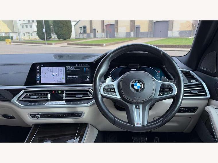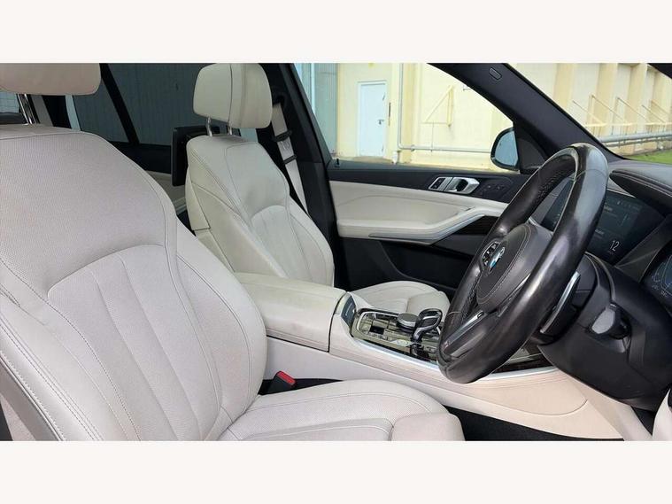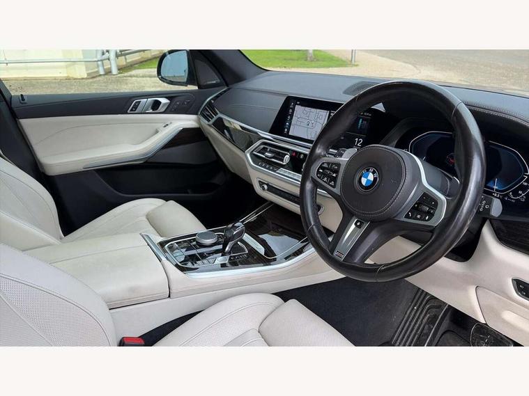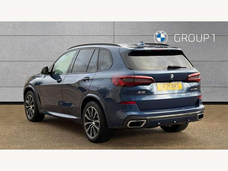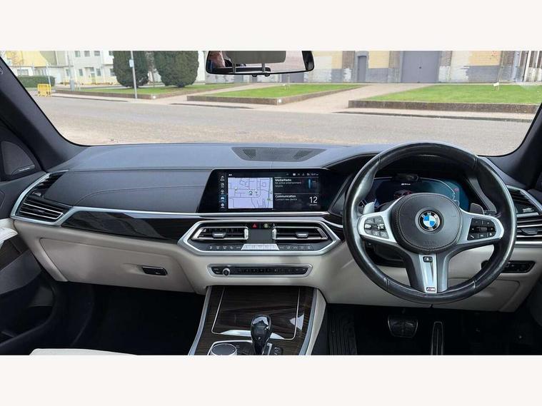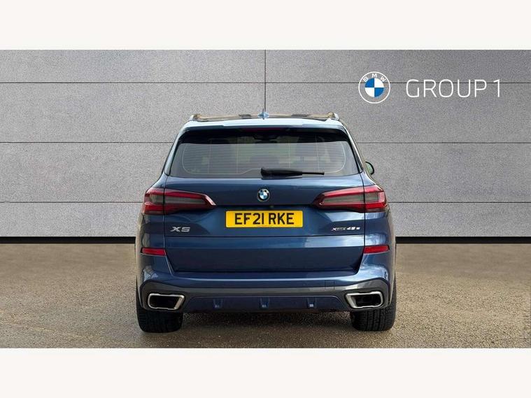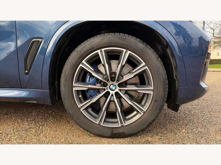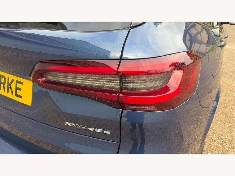20GB hard disc drive (HDD) memory, Active guard plus, Attentiveness assist, Automatic tailgate with top hinged section open and manual bottom hinged section, BMW ConnectedDrive online services, BMW digital live cockpit professional - 12.3" digital instrument panel and 12.3" CID, with touch/voice command, BMW legal emergency call, BMW Teleservices, Brake force display, Brake pad wear indicator warning light, Cruise control with brake assist, eDrive button to select between AUTO eDrive, MAX eDrive and SAVE Battery settings, Front/rear park distance control, Galvanised plastic keyfob, Infinity symbol with line graphic on reset of average consumption, Lights on warning, Oil sensor for level and grade, On board computer inc. average speed, fuel consumption, liquid crystal Info display, journey computer, outside temperature display, personal profile, Service interval indicator, Speed limit info display, Speed limiting function, 5 metre AC Fast charge cable, Adaptive 2-axle air suspension, Double VANOS, Double wishbone front axle, Drive performance control with ECO PRO comfort + sport mode, eDrive exterior sound, Eight speed steptronic sport automatic transmission and gearshift paddles on the steering wheel, High precision injection, Petrol Particulate Filter, Safety battery terminal clamp, Standard Charging cable (Mode 2) for home socket, Twin scroll turbocharger with Valvetronic, DAB Tuner enables digital radio reception, Favourite buttons, USB connection, USB type A 1.5A in cupholder, USB Type C 3A in centre armrest, Active Air Stream kidney grille with high-gloss chrome, Adaptive air flap control bar in high-gloss black, Automatically dimming rear view mirror, BMW Individual high gloss black shadow line roof rails, Body colour bumpers, Body colour door handles, Dynamic brake lights with LED technology, Exhaust tailpipes - single, left and right with Chrome finisher, Follow me home headlight function, Front and rear electric windows with open and close fingertip control, anti trap facility and comfort closing, Heated windscreen washer jets, High beam assistant, High gloss black outer and central air intakes on front bumper with pearlescent chrome finish, High gloss black Side elements, LED daytime running lights, LED rear lights, Left charging flap on the front side, M aerodynamic body styling, M designation on left and right front side panels, Pearlescent chrome front grille bars, Rain sensor with automatic headlight activation and windscreen wiper control, Satin aluminium side window graphic, Third brake light in rear spoiler, Variable intermittent rear wash/wipe, Welcome light carpet, X5 on left tailgate, xDrive designation on right tailgate, 12V - Power sockets with 2x centre console and 1x luggage compartment, 40:20:40 split folding rear seats, Ambient interior lighting with 6 pre-designed selectable lights including dynamic function, Centre and rear interior light, Child seat ISOFIX attachment with rear outer seats includes top tether, Compartment in front of cupholder, Electric front seat adjustment with driver and front passenger memory function, Electrical steering column with adjustable height and length with activation and control on the steering column, Foldable rear centre armrest with 2 cupholders and storage compartment, Front and rear cupholders x 2, Front and rear door pockets, Front and rear door sill inlays with illuminated BMW M designation, Front and rear side armrest integrated into door trim, Front footwell lights, Front reading lights, Light inside glove compartment, Lockable glove compartment, Luggage compartment floor panel with integral storage tray, Luggage compartment lighting, M leather steering wheel, M specific key, M specific pedals, M specific steering wheel, M specific velour floor mats, Make-up mirror lights, Multifunction controls for leather steering wheel, Multifunctional hooks, Rear head restraints, Seat back with flap pocket, Securing rings in luggage compartment, Storage bins on all doors, Storage tray and compartment with cover in centre console, Sunvisors with illuminated vanity mirrors, Toolkit located in luggage compartment, Connected Package Professional - X5 xDrive45e, Expanded exterior mirror pack - X5/X5 M, Non-smokers pack - X5, Acoustic protection for pedestrians, Airbags - driver/front passenger, rear and side, first and second row seats head airbags, front passenger seat airbag deactivation + knee airbag, Anti-lock braking system (ABS), Automatic Stability Control (ASC), Brake drying, Brake energy regeneration, Brake fade compensation, Braking pre-tensioning, Cornering brake control (CBC), Crash sensor activating central locking release, hazard warning lights, fuel cut off, interior lighting + activation of safety battery terminal clamp, Deformation zones - front and rear with door reinforcements and bumpers up to 2.5 mph, DSC - Dynamic Stability Control, Dynamic brake control, Dynamic Traction Control - DTC, Electromechanical parking brake with automatic drive away release and auto hold function, Electronic brake force distribution, Front and rear seatbelts with seatbelt stopper, seatbelt tensioner for front and outer rear seats and belt force limiter, Front head restraints with anti-whiplash, Height adjustable front seatbelts, Hill start assistant, Integrated brake system, M Sport braking system in blue high gloss + blue painted brake calipers with M designation, Mechanical child proof lock on rear doors, Passive protection for pedestrians, Seat occupancy detection for driver and passenger side, Side impact protection, Three 3 point inertia reel seatbelts, Two tone horn, Tyre pressure monitoring system, Ventilated front and rear disc brakes, Warning triangle and first aid kit, Closing system with central locking, Driver and front passenger door centre lock switch, Locking wheel bolts, Thatcham 1 alarm system with remote control and engine immobiliser, Start/stop toggle diamond shaped trim finisher in pearl chrome,