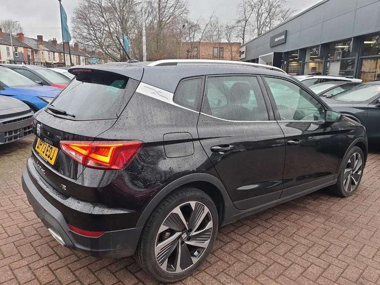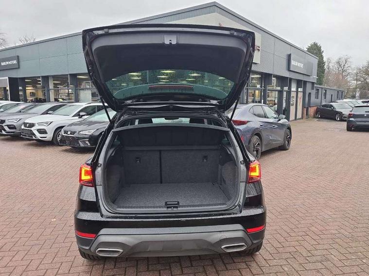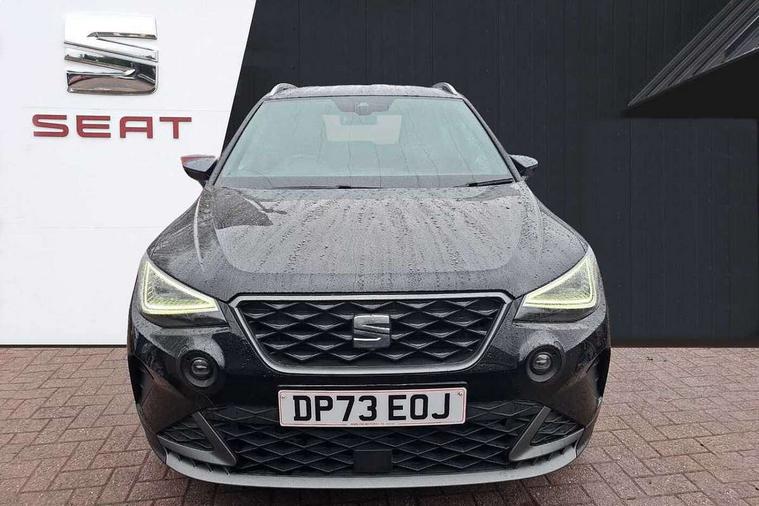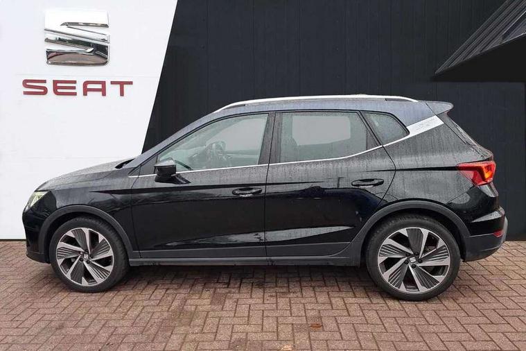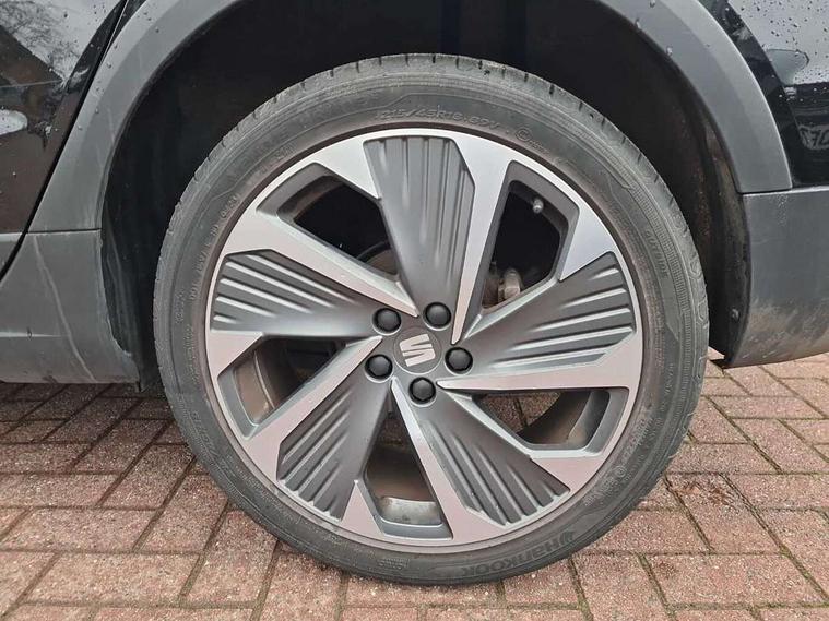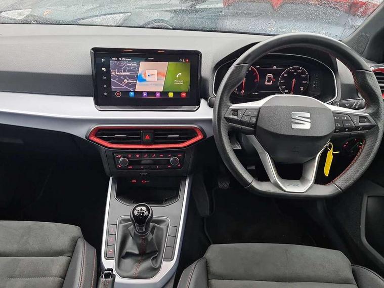 'Lights On' Reminder warning buzzer, 10" Digital cockpit, Digital clock, E-call, Electric speed sensitive power steering, Full Link Smartphone Integration with Mirror Link, Apple Car Play, Google Android Auto with USB Type C cable for Apple and Android compatibility, Low fuel warning light, Outside temperature display, Rear parking sensor, RPM counter, Seat connect with safety, service, remote and online, SEAT Drive profile - Four different models normal-sport-eco-individual, steering response, throttle response, Trip computer, Wireless phone charger, 9.2" colour touchscreen with navigation system, voice control and USB port (type c), Bluetooth interface for hands free and audio streaming, DAB digital radio and AM/FM radio, Steering wheel mounted audio controls, Anti theft roof antenna, Auto dimming interior rear view mirror, Automatic activation of hazard warning lights, Body coloured bumpers, Body coloured door handle inserts, Chrome roof rails and window surrounds, Dark tinted rear windows, Electric front/rear windows, Electrically adjustable, heated and folding door mirrors, Front fog lights with cornering function and rear fog light, FULL LED automatic headlights with dynamic headlight range control, coming and leaving home, LED daytime running lights, LED rear tail lights and licence plate lights, Protective side mouldings, Rain sensing wipers, Rear side wing doors, Rear spoiler, Rear window wash/wipe, Roof colour door mirrors, Third brake light, Twin exhaust pipe styling hidden exhaust pipe, Visible VIN plate, Windshield wiper with intermittent control and potentiometer, 2 cupholders, 3 seat bench in 2nd row, 60/40 split folding rear seat, Aircare filter, Black interior roof, Double boot floor, Driver sunvisor with covered mirror + card holder, Dual zone climate control, Front comfort seats, Front courtesy light with front reading lights, Front seat back storage pockets, Gear shift indicator, Heated front seats, Height adjustable front seats, Height/reach adjustable steering column, Illuminated boot, Instrument lighting with brightness control, Interior ambient lighting, Interior light in footwell, central console and door panel, ISOFIX points in outer rear seats with top tether anchorage points, Microsuede cloth upholstery, Passenger sunvisor with vanity mirror, Perforated flat bottomed leather steering wheel/gear knob/handbrake with red stitching and FR logo, Single front passenger seat, Two front and three rear height adjustable headrests, Interior chrome pack - Arona, 3 point seatbelts on all rear seats, ABS, Active front headrests, Child locks on rear doors, Driver and front passenger airbags with front passenger airbag de activation, front side and curtain airbags, Electronic stability control, Emergency Brake Assist (EBA) and front assist, Front and rear seatbelt reminder, Hill hold control, Multi-Collision braking, Tiredness recognition system, Traction control, Tyre pressure monitoring system, Alarm with back-up horn, Electronic engine immobiliser, Locking wheel bolts, Remote central locking + deadlocks, Tow away protection, Titan black dashboard, 18" Performance Cosmo grey matt alloy wheels,