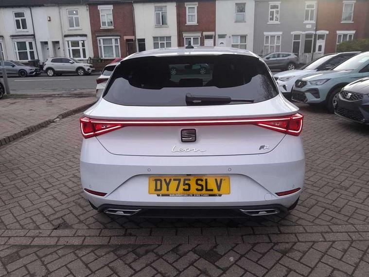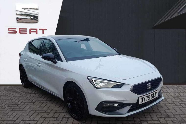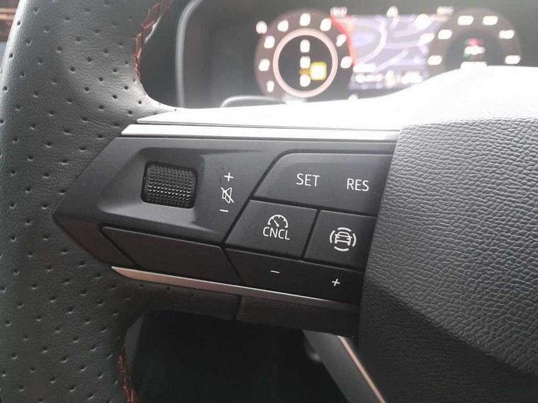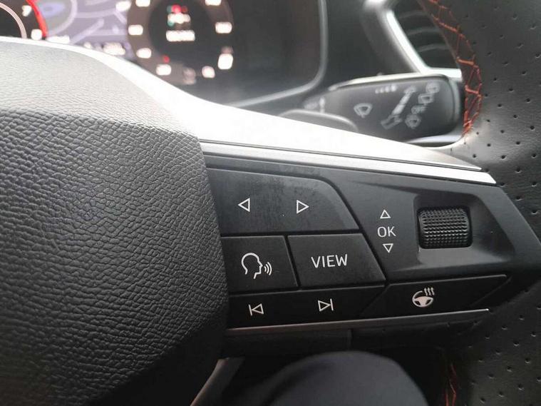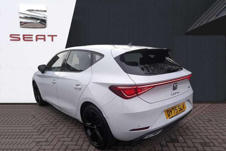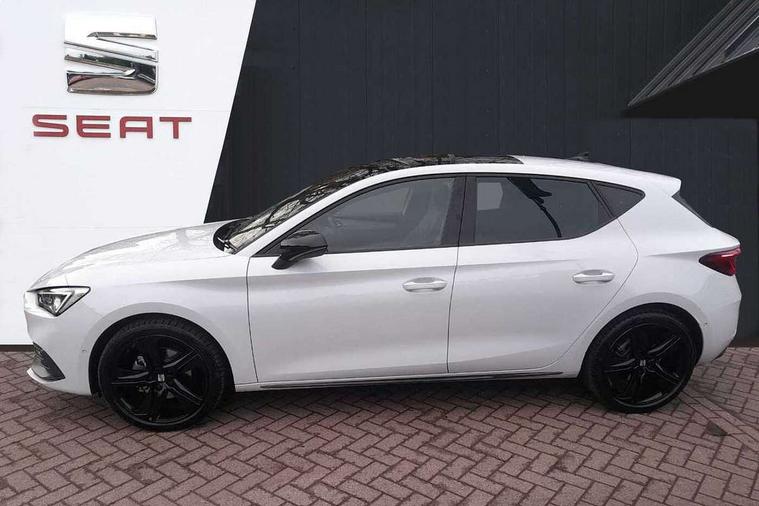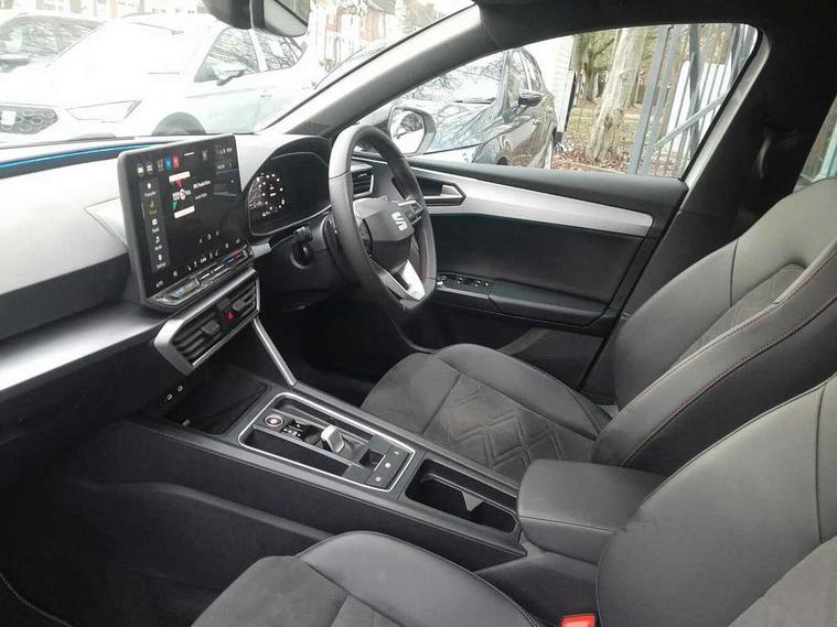 Digital cockpit with multifunction display, Driver attention alert with drowsiness warning, E-call, Front assist with forward collision warning braking reaction to vehicles, pedestrians and cyclists, Full link smartphone integration with Mirror Link, wireless Apple CarPlay and wired Google Android Auto, Intelligent speed assist, Lane assist, Lockable tailgate, Park assist (inc front/rear parking sensors), Power assisted speed sensitive electro-mechanical steering, Rear view camera, RPM, trip computer, outside temp gauge, instrument light brightness, low fuel warning light, lights on reminder, gearshift indicator, SEAT drive profile with 4 modes (Eco/Normal/Sport/Individual), throttle response and gearshift mode, Service interval indicator, Start/stop system with regenerative braking, Sports suspension, XDS electronic differential lock and dynamic traction support, 2 front and 2 rear USB-C ports, Auxiliary input socket, Auto dimming rear view mirror, Black door mirror housings, Black roof spoiler, Black side skirts, Body colour door handles, Body coloured bumpers, Dark tinted rear windows, Door mirror LED indicator lights, Dynamic headlight range control, Electric front/rear windows, Electrically adjustable, heated and folding door mirrors, FR sports bumper, Illuminated front door sill, LED front fog lamps, LED rear fog lamp with rear coast to coast light, Matrix LED headlights and beams with variable light distribution, LED rear light and dynamic turn signals, Panoramic sunroof, Rear side wing doors, Rear wash/wipe, Separate daytime running light with automatic headlight control and coming home feature, Third brake light, Welcome light silhouette from exterior mirrors, Windshield wiper intermittent control with light/rain sensor, 12v power point in centre console, 3 seat bench in 2nd row, 60/40 split rear bench seat with armrest, Ambient lighting with glovebox, footwell and single monocolour, Black headlining, Dust/pollen filter, Folding boot cover, Front and rear height adjustable headrests, Front and rear reading lights X 4, Front centre armrest, Front seatback storage pockets, Heated front seats, Height/reach adjust steering wheel, Interior wraparound lighting (FR), ISOFIX points in outer rear seats with top tether anchorage points, Luggage tie-down hooks, Lumbar adjustment for front seats, Manual driver seat with memory and height adjustable passenger seat, Microsuede cloth upholstery, Single front passenger seat, Sunvisors with covered illuminated mirror, Three zone climate control, Media system plus with navigation - Leon, 3 point seatbelts on all rear seats, ABS, Brake control system - ESC and brake booster, Child proof door locks, Driver and front passenger airbags with front passenger airbag de-activation, front side and curtain airbags, Electronic parking brake, Extended safety system - seat belt tensioner, window closure and hazard lights, Hill hold control, Rear disc brakes, Seat belt reminder for front and rear seats, Tyre pressure monitoring system, Anti theft alarm system with interior monitoring in cab, backup horn and towing protection, KESSY Advanced - Keyless start, keyless entry, Locking wheel bolts, Wireless phone charging, Chrome interior detailing, 18" Black alloy wheels, Tool kit without jack,